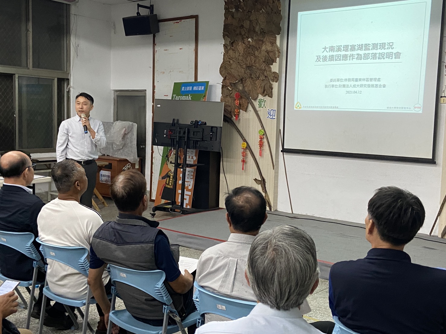 汛期將近,臺東林區管理處於4月12日晚間7時30分於東興村活動中心邀集部落居民及相關單位出席大南溪堰塞湖說明會,針對堰塞湖現況可能影響及未來颱風豪雨期間相關應變機制進行說明。當地達魯瑪克部落頭目、部落主席、東興村村長、社區發展協會理事長及村民們均踴躍出席,相關單位臺東縣政府、臺東縣警察局、臺東縣消防局、農田水利署臺東管理處、自來水公司第十區管理處、臺電東部發電廠、卑南鄉公所等單位也都派員前來參與,並對堰塞湖現況及後續處置作為提出詢問及建議,現場均由該處同仁及成大防災中心專家妥為回應說明。 針對2月5日形成之大南溪上游12公里處堰塞湖(臺東卑南鄉東興村),雖經評估對於下游並無直接危險,然臺東林管處除持續利用衛星影像、無人機空拍、水位監測設備及協請空中勤務總隊第三大隊第三隊進行空勘,追蹤堰塞湖變化情形外,也與達魯瑪克部落及社區巡守隊協力合作,持續掌握下游水位變化動態。相關監測結果亦即時提供各河防單位如臺東縣政府、卑南鄉公所等啟動相關應變作業之參考,鑑於大南溪堰塞湖仍屬不穩定狀態,臺東林管處也於堰塞湖下游沿線必要地點設置敬告牌誌,提醒下游及鄰近社區居民,應避免進入該行水區域活動,以維護生命財產安全。 根據臺東林管處與成功大學防災研究中心之研判結果,堰塞湖形成後於2月11日發生溢流並形成溢流水道,蓄水量有明顯降低,然該處受到不穩定坡面之影響,堆積土石仍持續略增,由4月7日衛星影像判釋結果,目前堰塞湖蓄水面積約8.5公頃,蓄水量約170萬立方公尺,且壩體持續有溢流現象,水流並未阻斷,另為追蹤下游水位變化,該處並於下游大南電廠與利嘉圳裝設水位計以直接掌握水位變化,進而評估上游堆積壩體之變化情形。 臺東林管處亦委請成功大學防災研究中心利用壩體蓄水量進行潰壩演算,研判堰塞湖一次性潰決的機率低,除非是遇到颱風豪雨或長時間之連續降雨,累積大量降雨才會發生,且經模擬潰壩流量水位對於大南溪出口段(距離堰塞湖12公里處、河寬60公尺)及利嘉溪段(距離堰塞湖14公里處、河寬200公尺)水位抬升情形尚低於行水區域可容許通洪量,雖不致對河防安全造成直接影響,但對河道行水區將有直接衝擊,因此建議持續維持河道範圍之管制,避免於行水區之活動,亦請相關河防安全權責單位透過其官方臉書粉專協助轉載、宣導相關資訊,勸導民眾及遊客進入河川行水區域。 臺東林管處吳昌祐處長表示,5月份即將進入汛期,該處將持續掌握天候變化及堰塞湖動態,與當地社區巡守隊合作加強該行水區域沿線巡視工作,同時透過發布新聞稿及臉書等社群媒體露出相關資訊,並依堰塞湖相關應變措施及流程,當有劇烈天氣發生或是堰塞湖出現明顯變化時,儘速通報臺東縣政府、卑南鄉公所及鄰近社區或部落等相關單位,以利啟動應變作為,確保下游及鄰近社區之安全。