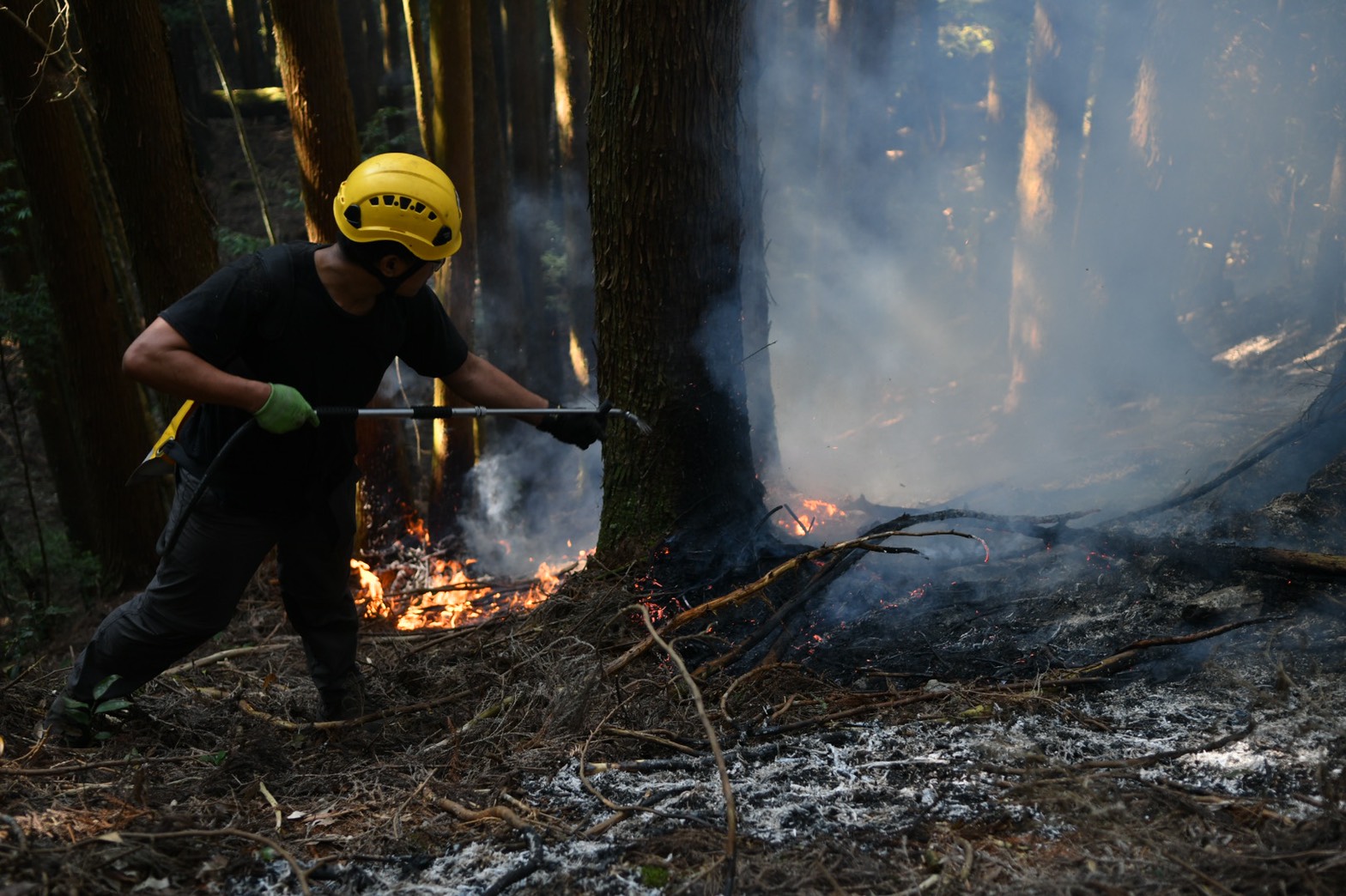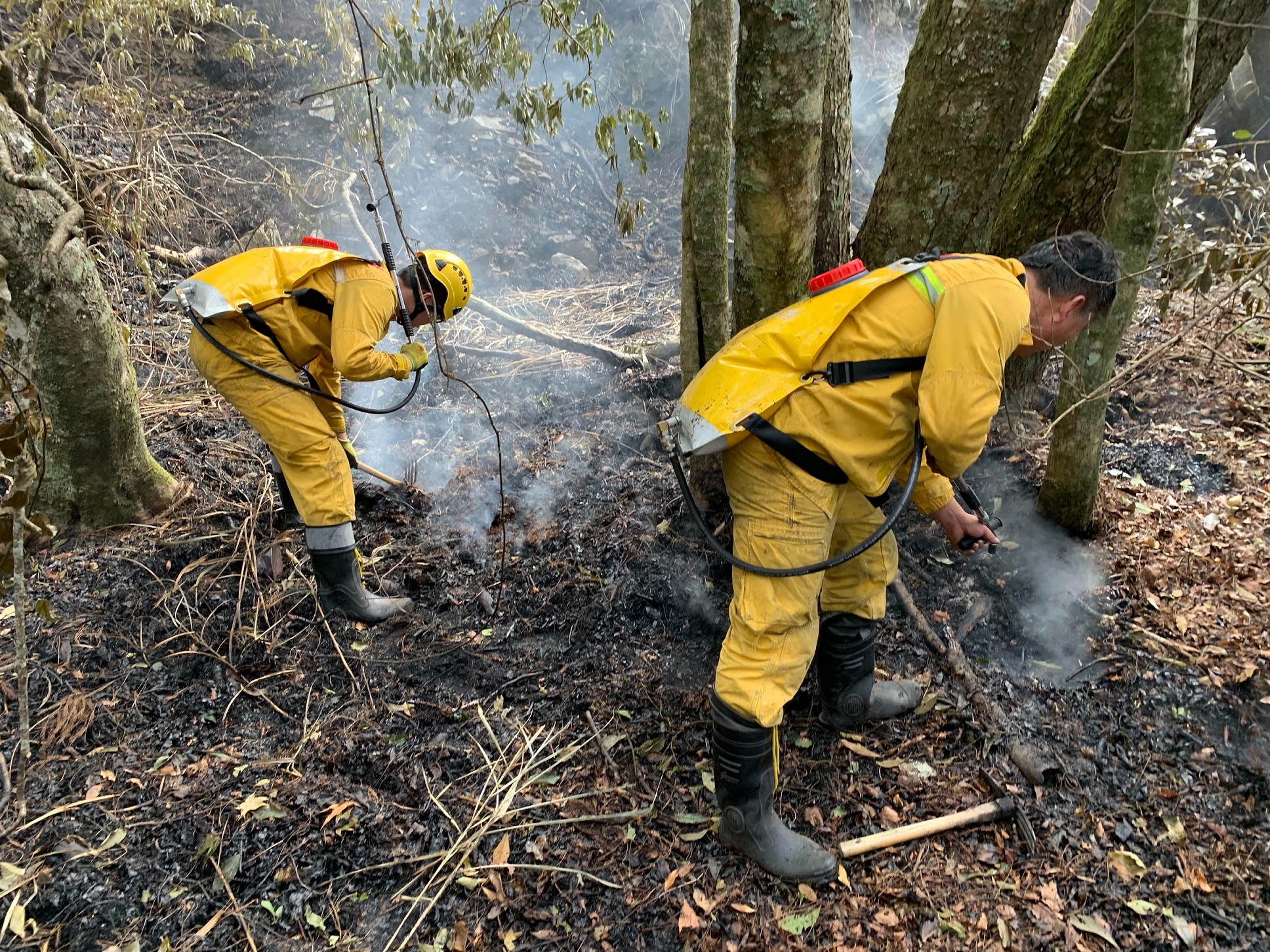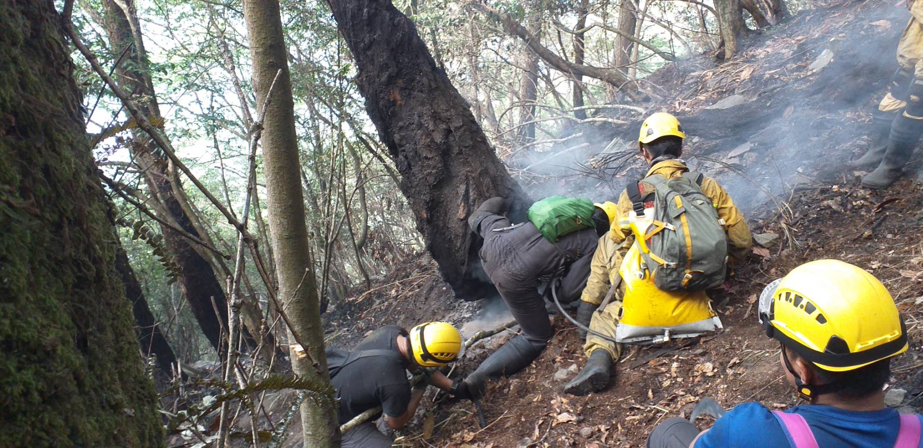 八仙山事業區102林班(馬崙山自然步道) 自5月19日傳出森林火災,東勢林區管理處持續與空中勤務總隊合作,陸空聯合搶救,至今歷時4天3夜,已投入森林護管員等人力約280人次,日夜進行滅火工作,並於火場東西南側均開闢防火線共420公尺,惟因現場堆積落葉腐質層,燃料充足,加上風勢助長火勢,目前延燒面積擴大為4.1公頃。 東勢林區管理處表示,火場位置地處偏遠,部分地區坡度陡峭且土質鬆軟,森林護管員頂著炎熱高溫及濃煙持續穿梭山林火場,開闢防火線、移除燃料,隔絕地表火蔓延,並處理多處立木樹幹火,即使手起水泡、灰頭土臉也不喊苦。截至今(5/22)日空勤直升機已支援3架次,投水14噸,惟現場水源缺乏,為提升救火能量,於昨(5/21)日協請台中市政府消防局支援水車灌注至閉口式水囊,由空勤直升機吊掛至火場,提供現場救火人員,以背負式水袋取水,進行滅火工作,期能有效控制火勢;另吊掛所需糧食物資600公斤,讓救火人員無後顧之憂。 目前火災發生原因尚未釐清,待火勢撲滅後將交由警消單位蒐證確認起火原因,東勢林區管理處呼籲,新冠肺炎疫情已升級至三級警戒,所轄森林育樂場域及步道暫停開放,請民眾勿前往山區,東勢林管處將持續全力搶救,期能早日撲滅火勢。