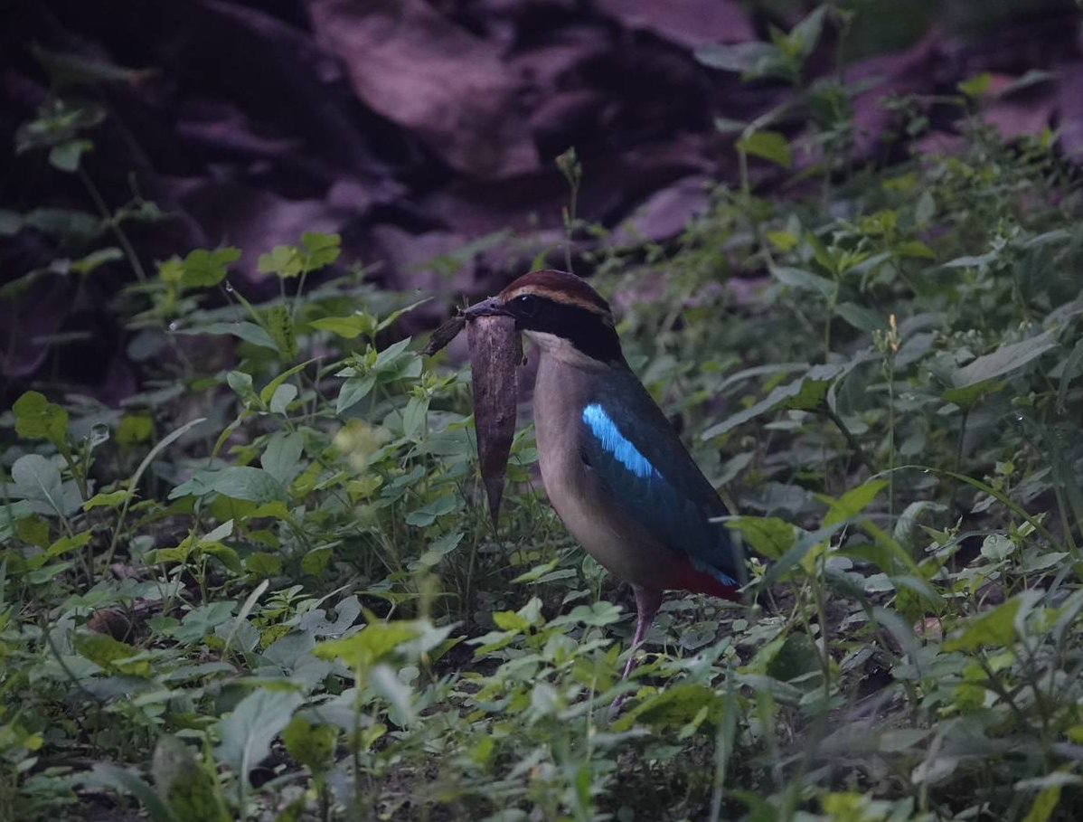 林務局嘉義林區管理處轄管之臺南市六甲區第2007號區外保安林,自108年起發現八色鳥築巢繁殖,吸引民眾趨之若鶩前往賞鳥拍攝。為避免人為干擾並有效保育八色鳥,嘉義林管處110年發起「八色鳥棲地保育行動」,積極於棲地現場設置宣導告示牌、固定式隔離網及架設自動照相機監測等多種棲地管制措施,並召集國家森林志工成立「八色鳥棲地志工巡守隊」,從110年5-7月每日排班進行棲地巡護、環境教育解說與生態監測,監測成果顯示第2007號區外保安林為生物多樣性熱區,值得深入探索研究及積極採取保育行動。 國家森林志工成立「八色鳥棲地志工巡守隊」 有效減輕繁殖干擾 八色鳥屬於行政院農業委員會公告第二級珍貴稀有保育類野生動物,是臺灣不普遍的夏候鳥,每年4-5月遠從東南亞來到臺灣繁殖至同年7-8月返回,主要棲息於低海拔山區的原始闊葉林或次生林,喜於森林底層覓食與築巢。嘉義林管處今年為積極保育八色鳥,減輕繁殖期間的人為干擾,召集國家森林志工成立「八色鳥棲地志工巡守隊」,從今年5-7月每日安排兩位志工排班巡守,總共動員18位志工參與,進行棲地巡護與生態監測,記錄八色鳥數量及行為,並進行棲地鳥類調查與遊客人數統計,國家森林志工亦適時宣導棲地管制措施,提供環境教育與生態解說服務,另請當地大丘派出所與內政部警政署保安警察第七總隊第七大隊於繁殖期間加強巡視,有效減少攝影者群聚干擾八色鳥繁殖,營造友善的觀鳥環境。 觀察結果發現六甲區水流東、九重橋、北勢坑皆有八色鳥穩定出沒,九重橋棲地穩定出現2至4隻個體,北勢坑棲地觀察到成鳥撫育3隻幼鳥,監測成果顯示第2007號區外保安林為八色鳥重要棲息環境,積極的棲地經營管理有助於提升棲地環境品質,創造人鳥共存的和諧棲息環境。 志工生態監測成果斐然 區外保安林蘊藏豐富生物多樣性 國家森林志工巡守期間亦進行生態監測調查,調查記錄到45種鳥類,其中8種為保育類,包含八色鳥、藍腹鷴、朱鸝、臺灣畫眉等珍稀鳥種,還觀察到黑枕藍鶲精彩的育雛過程。其他記錄到的淺山特殊物種有臺灣野兔、食蛇龜、中華鱉、黃綠澤蟹、臺灣鍬形蟲等。森林底層植被同樣精彩可觀,雨季後臺灣魔芋、吊鐘鬼蘭萌發茁壯,大量真菌於腐木與落葉堆滋長,調查成果顯示第2007號區外保安林的生物多樣性極高,供養繽紛多樣的淺山物種棲息繁衍。110年度嘉義林管處透過志工巡守發揮公民參與及公民科學精神,維護棲地環境品質與營造友善的賞鳥環境,使八色鳥順利繁衍,並累積豐富的棲地監測資料供後續改善調整棲地經營管理策略,期待本次八色鳥棲地保育行動能作為物種保育的實踐案例,未來有更多民眾關注淺山生態系物種保育議題。