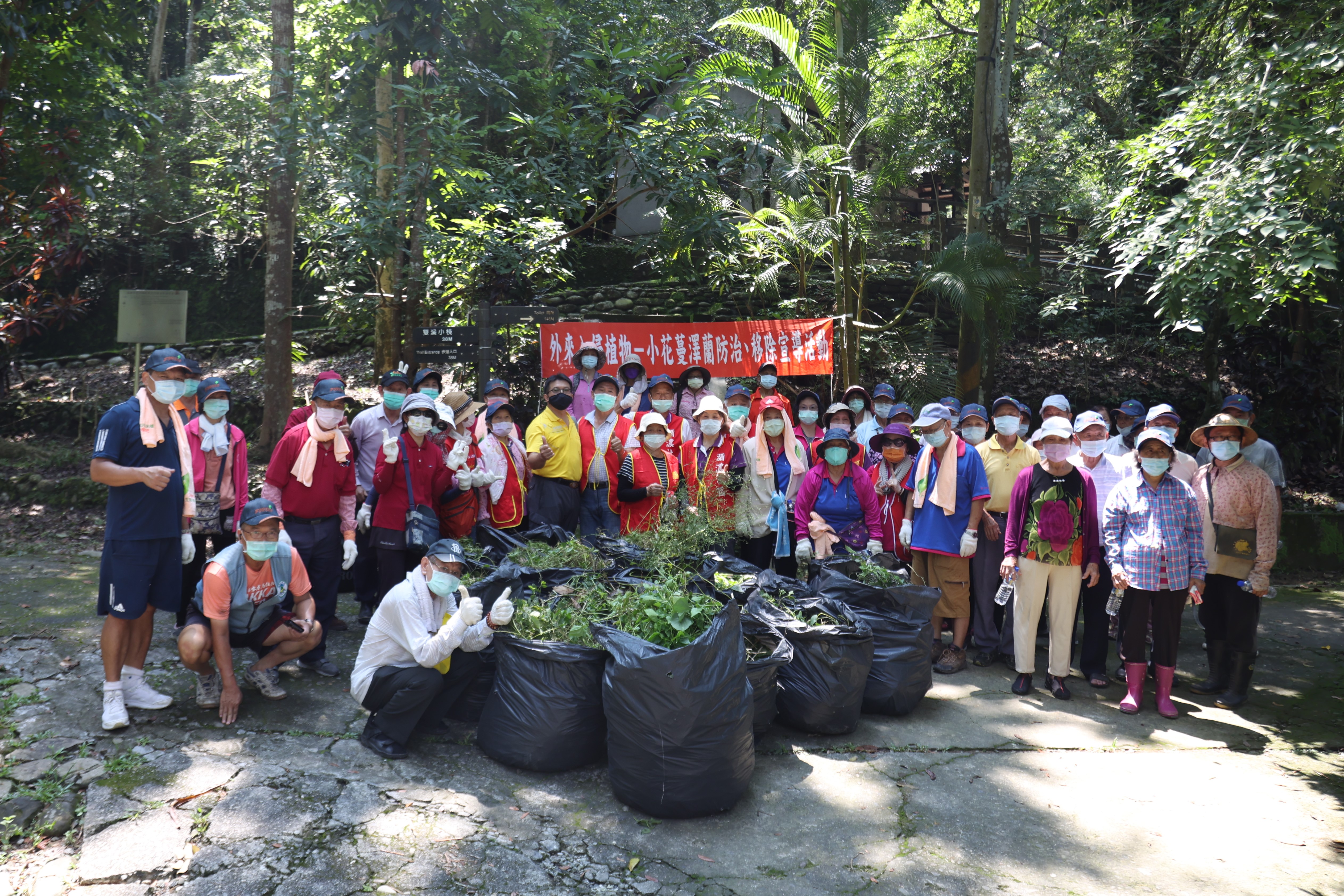 屏東林區管理處8月25日在高雄市美濃區雙溪樹木園辦理「外來入侵植物─小花蔓澤蘭防治移除宣導活動」,邀請周邊社區及美濃區廣林社區發展展協會、中圳社區發展協會、瀰濃社區發展協會、精功社區發展協會及八色鳥協會等團體共同參與,大家齊心移除外來入侵植物共250公斤。 活動首先由屏東林管處旗山工作站林弘基主任介紹小花蔓澤蘭、香澤蘭、銀膠菊、銀合歡、美洲含羞草及刺軸含羞木等外來入侵植物的形態及防治方法,並帶領社區民眾至雙溪樹木園內找出小花蔓澤蘭、香澤蘭、銀膠菊等外來入侵植物,藉大家之力共同移除了250公斤,讓園區整體環境更清爽,同時也讓林木更健康。另外,也利用解說摺頁介紹其他外來入侵動、植物,希望民眾日常生活中,若有看到這些外來入侵種,能立即移除,以免擴散而造成更大危害。 屏東林區管理處表示,每年8月15日至9月15日為「小花蔓澤蘭防治月」,9月2日在高雄六龜區苗圃後方還有一場活動,民眾可以就近參與,並請遵守防疫準則。為鼓勵大家一起剷除「綠癌」之稱的小花蔓澤蘭,每週二、四上午9時到12時,下午1時到4時,在轄屬的潮州、恆春、旗山、六龜工作站,都有辦理小花蔓澤蘭及香澤蘭收購,請民眾以塑膠袋裝妥植物體後,至收購地點現場檢查秤重計價,收購金額每公斤5元,請大家把握小花蔓澤蘭開花前的黃金移除期,一起移除外來入侵種。