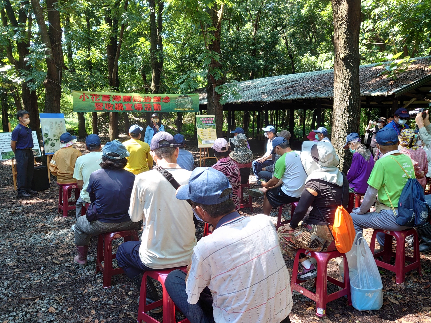 今天(9月4日)是小花蔓澤蘭全國防治日,林務局屏東林區管理處邀請新埤鄉建功社區、台灣藍色東港溪保育協會,於新埤鄉建功森林親水公園舉辦小花蔓澤蘭移除活動。活動地點也是2409號國有保安林,藍色東港溪保育協會周克任理事,也在活動中講解此保安林與客庄歷史的關連後,也讓村民爲保安林命名,更進一步認知保安林之涵養水源與森林生態系服務功能,讓保安林是大家的保安林。 有「綠癌」之稱的小花蔓澤蘭,為一強勢外來入侵植物,具有世界百大入侵種惡名,嚴重威脅台灣本土環境生態。每年10月至隔年2月為其開花結果期,種子會於此時傳播飛散,因此需在其開花結果大量繁殖之前將剷除,所以林務局每年自8月15到9月15日訂為防治月,以期達防治功效。另為擴大宣傳也訂每年9月的第一個週六為全國防治日。 屏東林管處處長楊瑞芬致詞表示,小花蔓澤蘭影響生態環境,需要大家一起移除,這裡也不只是林務局的保安林,期待居民能夠共同參與命名活動,今天只是開始,希望今天起我們可以一起守護保安林,也讓保安林功能讓大家分享,如環境教育、休閒活動、生態旅遊等。 新埤鄉建功村孔村長說,小花蔓澤蘭也會入侵果園,像是酪梨園裡就有,村民都可以一起來移除。東港溪保育協會理事周克任,則說明了建功這塊土地的緣由,如何從樹山變成禁山,如何與跨社區合作,保育沙崙河等,讓居民備感榮譽。 接著大家發揮實際行動,開始拔除小花蔓澤蘭,可以發現它最喜歡開闊有陽光的地方,已經森林鬱閉的地方就不會被它入侵,大家都非常專業,馬上就找到它的蹤跡,今天參與的總人數超過100人,半小時共拔除214公斤的小花蔓澤蘭,大家都非常開心能參與行動;小朋友們更是發揮學習精神,主動來認識入侵植物還有野生動物。活動後,民眾也領回原生樹苗,樹苗是以可分解的玻璃紙包裝,讓大家都為減碳盡一份心力。 另為鼓勵民眾投入除蔓行列,今年度起林務局全年辦理收購小花蔓澤蘭,民眾可於每週二、四上午9時到12時,下午1時至4時至屏東林區管理處各工作站(六龜、旗山、潮州、恆春)洽辦,收購價格為每公斤5元,收購數量無上限。潮州工作站電話 08-7882647。