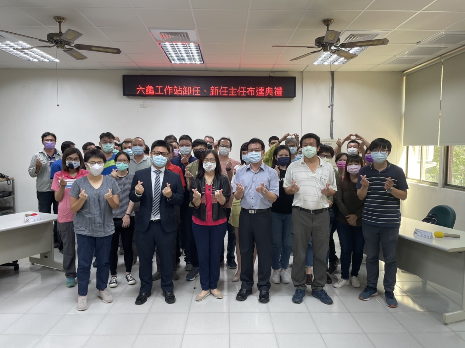 屏東林區管理處配合秘書吳金章退休進行人事調整,由六龜工作站主任張智強陞任秘書,六龜工作站主任由育樂課技正洪國棟陞任,交接布達典禮於9月6日在六龜工作站舉行,並由處長楊瑞芬親自監交。 屏東林區管理處楊處長致詞時表示,張秘書擔任六龜工作站主任僅1年餘,即積極完成睽違12年藤枝國家森林遊樂區重新開園任務,另也憑其專業,帶領同仁在六龜苗圃及疏伐作業等工作,都有亮眼的成績;新任洪主任,積極主動負責任,曾辦理林政、保育、育樂等業務,歷練豐富,且能協助同仁一起面對挑戰,此次賦予洪主任重任,希望在張秘書與同仁扎下的基礎上,繼續讓六龜工作站業務有新的進展,尤其是0806西南氣流造成藤枝聯外道路及林道等災害復建工作,屏東林區管理處也會發揮團隊力量,完備相關災害復建工作,讓同仁在山區安全無虞下,積極推動各項業務。 新任洪主任表示,六龜工作站除藤枝聯外道路及林道等災害復建工作外,藤枝復園、森林認證、多元輔導公私有林推動林下經濟及國土綠網計畫等業務推動為重點,另與周邊社區關係的維持亦是重點工作,期許自己能延續六龜工作站良好的傳統及氣氛,帶領同仁如期如質圓滿完成各項業務,一起守護台灣山林。