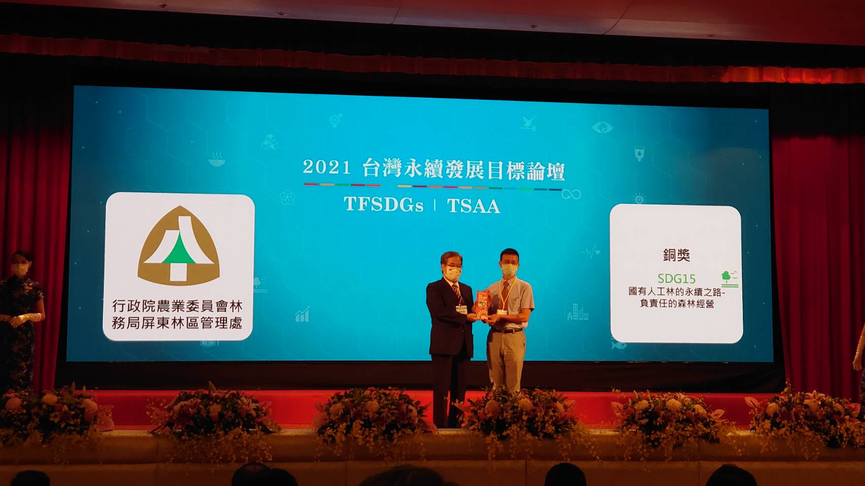 林務局屏東林區管理處以「國有人工林的永續之路—負責任的森林經營」行動方案,參與第十四屆TCSA臺灣永續行動獎,獲選政府機關類銅牌獎,13日由財團法人臺灣永續能源研究基金會正式頒獎。 為對應聯合國永續發展目標(SDGs)及提升國內木材自給率的重要政策,屏東林管處自107年起盤點轄區內可用的森林資源,以屏東縣獅子鄉枋山溪流域內面積8,695公頃的國有林,依照國際森林驗證標準,以經濟可行、社會公平及環境永續為目標,建立一套負責任的森林經營模式並持續操作,而獲得此次獎項肯定。 此負責的森林經營模式,依據5年為一期的經營計畫書,於作業前進行詳實調查及評估,確認經營範圍之現況,規劃符合容許年伐採量之收穫材積,並與權益相關方溝通,制定木材生產及減輕環境衝擊之作業規範;作業中,提供當地居民就業機會,分享營林經驗與技術,以提升周邊社區經濟,及保障作業人員的安全與權益;作業後,進行監測,確認作業產生的影響,並依監測成果調整經營計畫,以永續經營森林。 109年枋山溪人工林經營作業,於作業前依照周邊社區之建議,調整縮減作業面積,及新增對社區具有意思的造林樹種;作業期間,僱用之作業人員,43%為周邊社區居民,共提供13個工作機會;生產木材材積4,553立方公尺(約為109年臺灣林木生產量之14%)。提升木材自給率的同時,亦增加在地工作機會,並與周邊社區共同營造出符合在地居民期待之森林,為兼顧環境、社會與經濟面向的森林經營模式。 屏東林管處承諾,將依循此負責任經營模式,永續經營國有人工林,並持續盤點國有人工林,擴大永續森林經營之範圍,為永續地球盡一份心力。