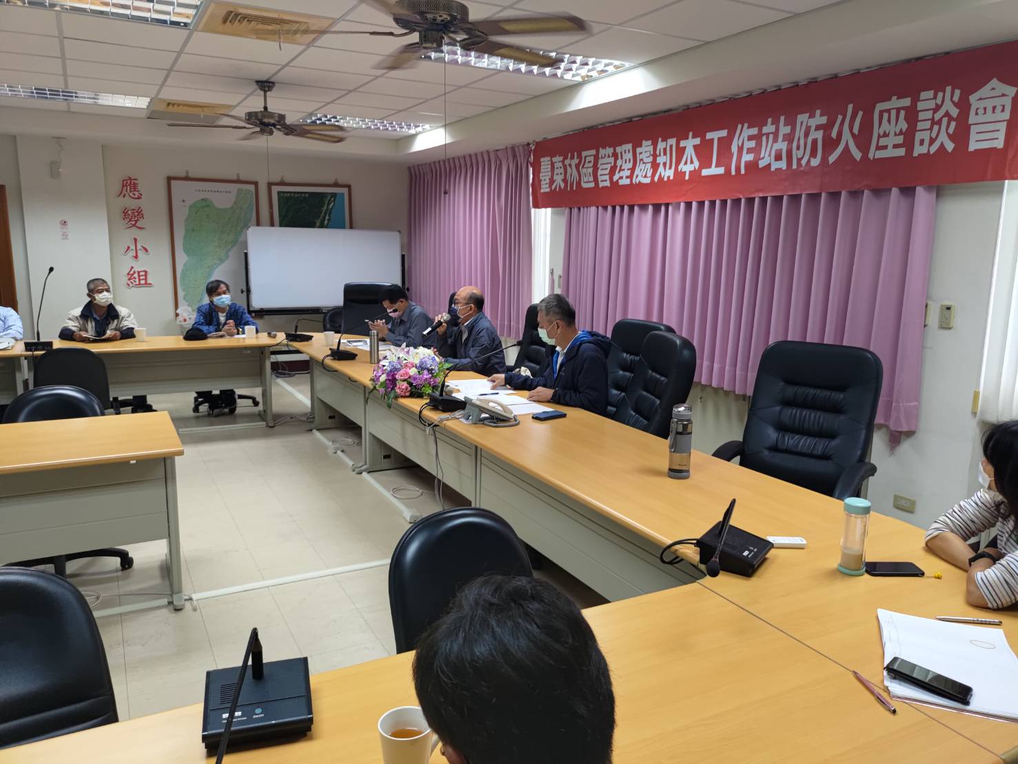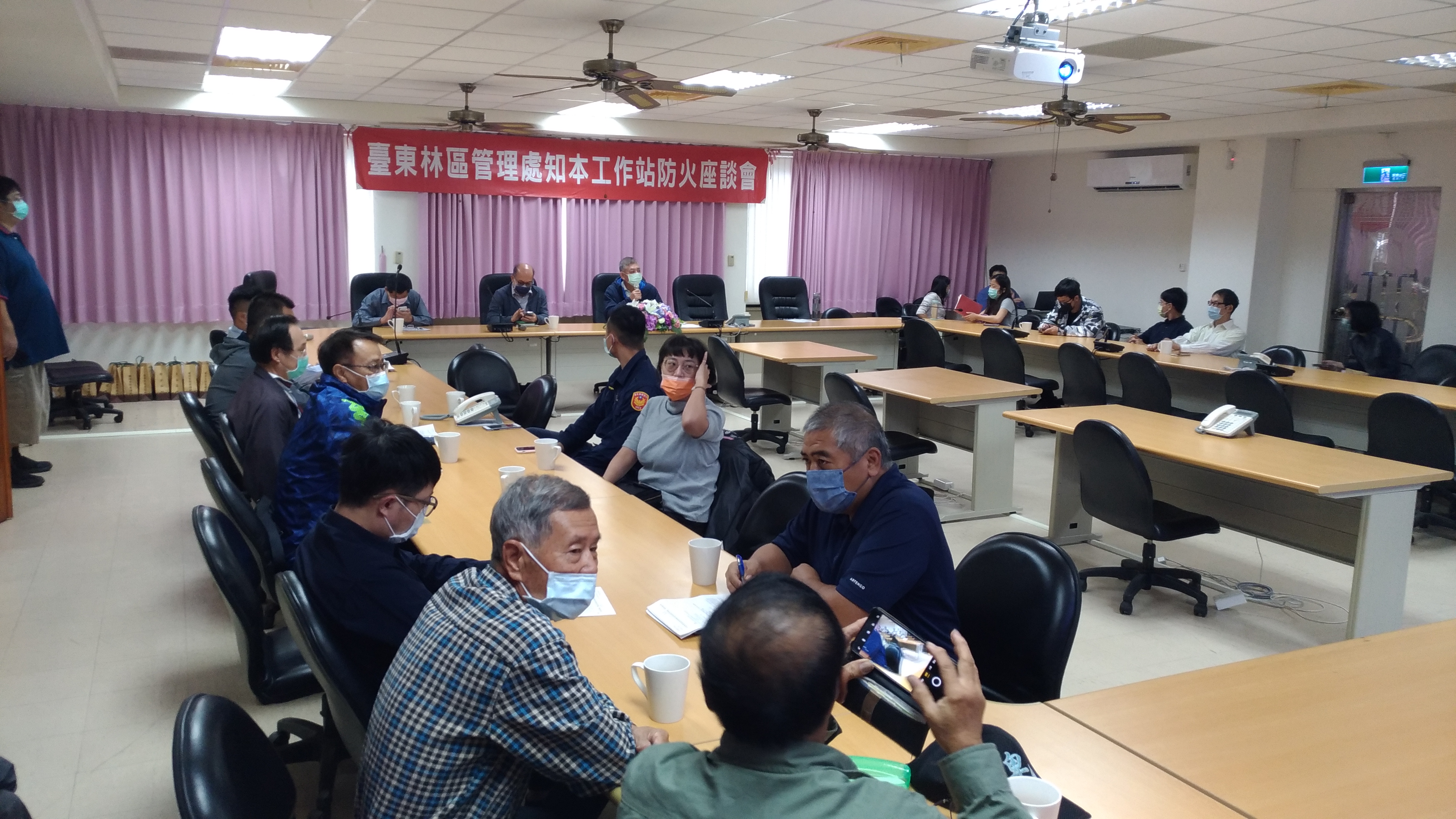 臺東林區管理處為宣達防火資訊及各項新知,鼓勵社區居民攜手合作宣導及投入森林防火工作,於11月9日上午9時在知本工作站2樓會議室辦理本(110)年度防火座談會,邀集在地相關警消單位、業務相關業商及社區、部落居民出席,透過座談會方式,說明及介紹知本站防救整備資訊及更新橫向聯絡管道,期能藉此凝聚防災共識及暢通聯繫管道。
