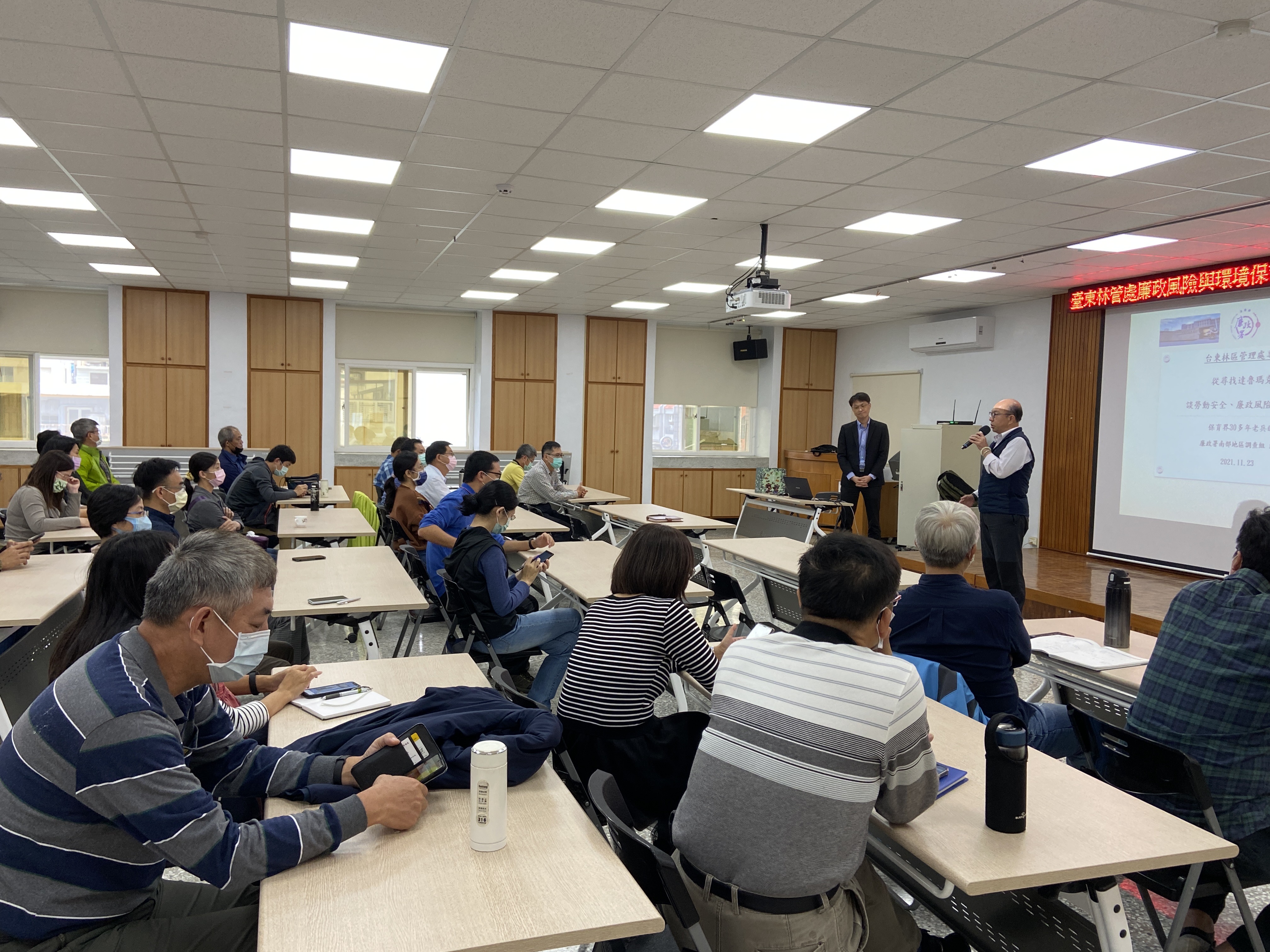 為增進同仁法律知識與法紀觀念,有效提昇機關業務風險控管意識,本月23日臺東林區管理處特別邀請法務部廉政署南部地區調查組黃元冠組長前來處裡向同仁們進行「廉政風險與環境保育的規範與現實」專題演講,吳昌祐處長及各課室、工作站主管及技正等人員近50人踴躍參與。