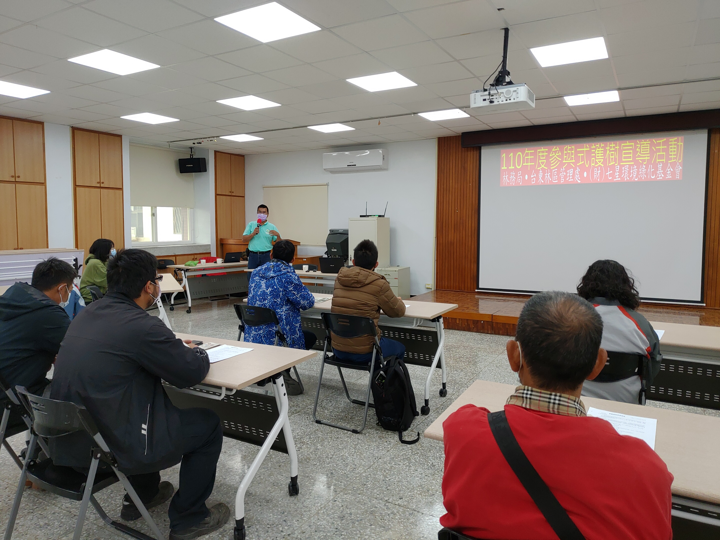 臺東林管處為宣導樹木養護工作之重要性,學習國內外專業技術與科技儀器並提升轄區內機關學校相關業務同仁之相關職能,於11月23日辦理「參與式樹木保護宣導活動」,邀請臺東縣政府與臺東市區各級學校共同參與,並由財團法人七星環境綠化基金會技術組游象君組長帶領專業團隊為學員們講解及示範,最後藉由實際操作,使參與學員們能夠熟悉並掌握護樹要訣,相互印證與加深課程所學,以提昇相關場域之維護專業度,進而促進樹木健康與景觀優化、環境安全等目標。