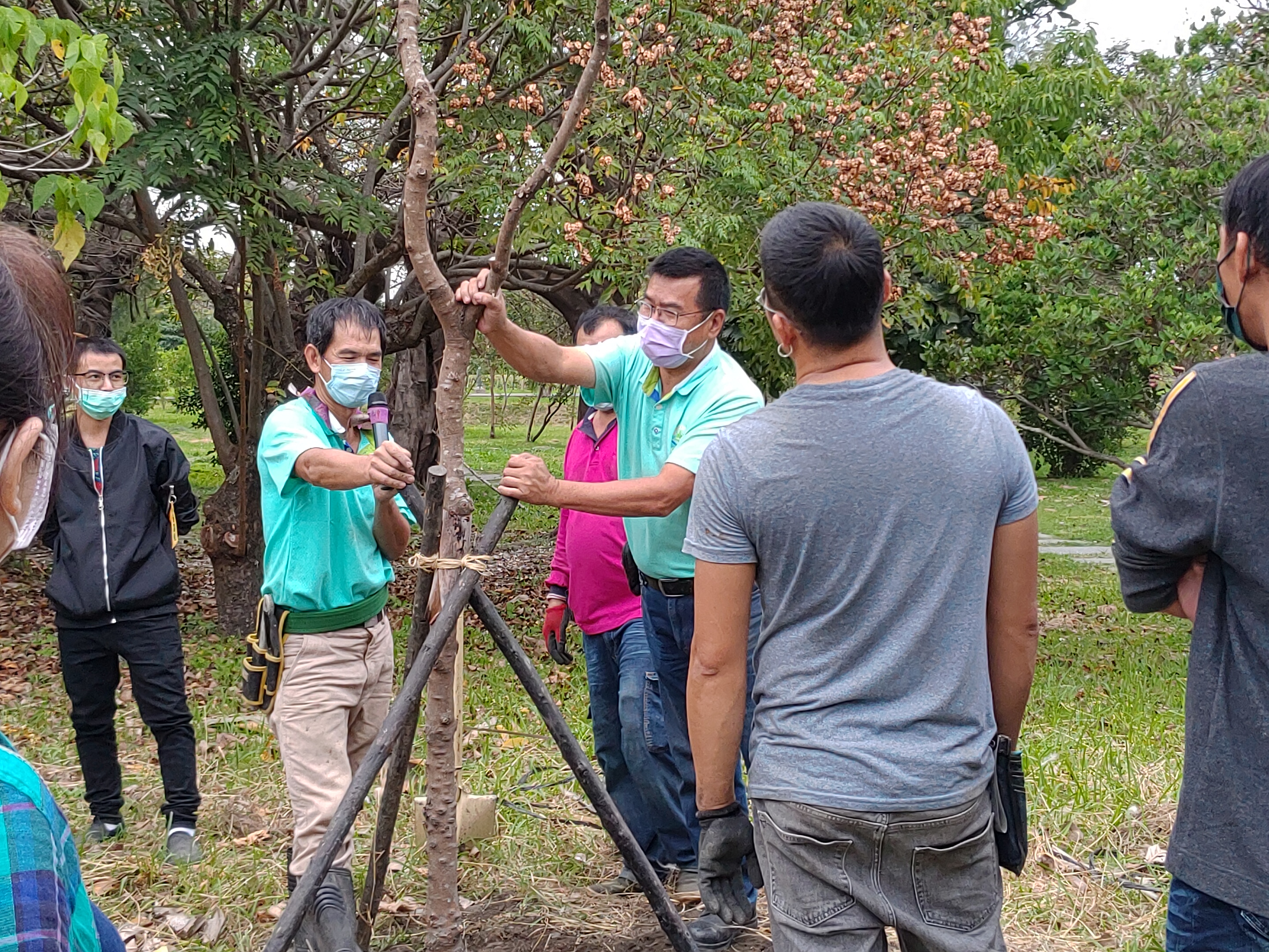 本次活動包含適地適種、栽植撫育、基地改良及案例分享等靜態課程,並實地前往臺東森林公園為樹木進行診斷,演示樹木視覺診斷(Visual Tree Assessment, VTA)與應力波檢測作業,了解樹體內部狀況及風險評估。接者針對不良基地進行改善及樹木移植,以調配適當之植栽位置。最後由學員親自操作樹木修剪維護工作,以印證所學。