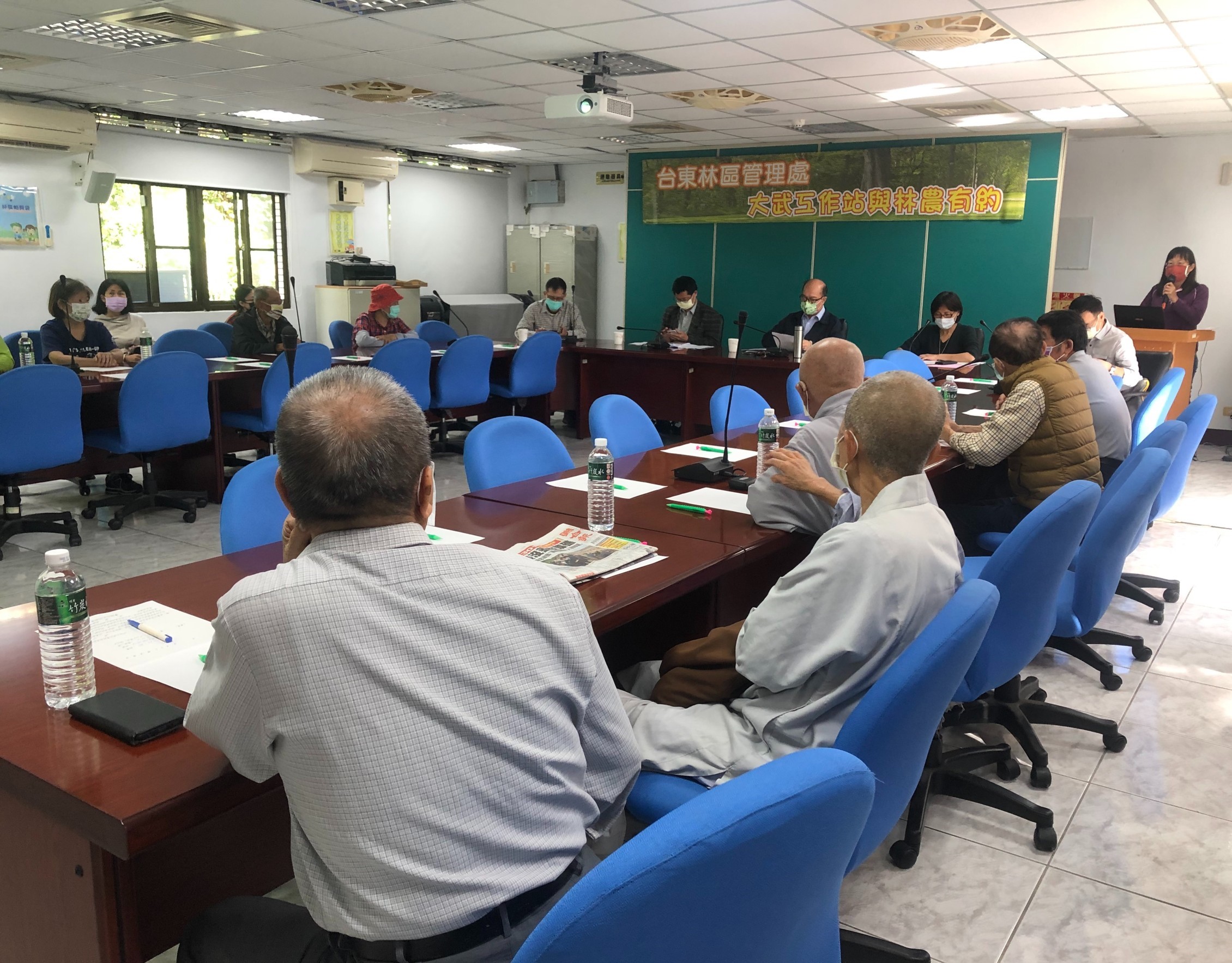 11月26日上午10時30分,臺東林區管理處大武工作站在該站2樓會議室,召開「與林農有約」座談會,配合新冠肺炎中央疫情指揮中心政策,邀請在地臺東縣大武、達仁、金峰、太麻里地區、對林業經營意願高及租約將到期之林農參加,宣導現行政策規定,傾聽林農需求,適時提供明確作法與便民之多元化服務,藉由林業永續多元輔導建立友善的伙伴關係。 臺東林管處吳處長昌祐率領林政課、作業課、政風室及大武工作站全體同仁均全程與會,聆聽民眾意見。座談會於上午10點30分召開,由大武站租地業務承辦人員說明林政業務,包含林地管理相關規定及租地逾期未續約處理原則、國有林出租造林地工寮興建注意事項與用電申請、租金電子化收款作業,及林下經濟相關規範等林業永續多元方案,也宣導外來物種防治生態保育作業,多位承租人也提問租地伐採流程、換約辦法、申請苗木及林地內產業道路修繕等問題,吳處長均逐一答覆或同意協調相關單位處理,更加強說明林農成立林業合作社,適地發展林下經濟,藉由林業永續多元輔導方案,以振興山村經濟,提升林農營林意願,顧及承租人權益。 臺東林管處吳處長昌祐表示,藉由座談會與承租人面對面,傾聽第一手心聲、直接感受承租人的需求或困境,有助於同仁更迅速解決或反應租地的問題,更能加強公務單位與民眾間的溝通,達成雙贏局面。同時鼓勵租地承租人經營人工林,以提高國內的木材自給率,取得國產材認驗證,也做好種源保育工作,以保存物種的多樣性。