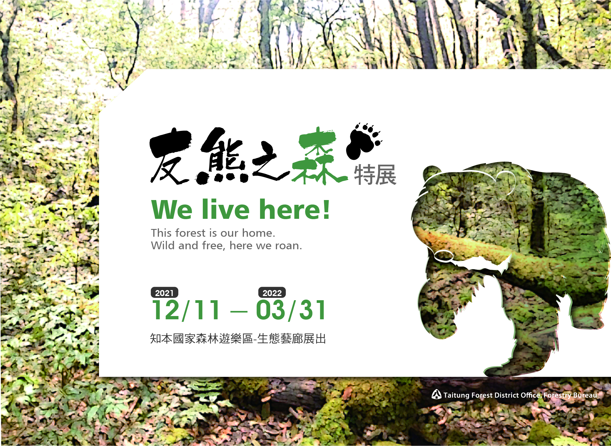 知本地區擁有氤氳的溫泉及豐富的森林生態,行政院農委會林務局臺東林管處將於12月11-12日(星期六、日)辦理「知森物語-冬遊趣」,活動結合了森林職人闖關活動、多元性的音樂展演、園區寫生和導覽、森林瑜珈、森林市集(含括特色美食、農特產及文創手作DIY系列活動)及友熊之森特展,邀請民眾來園區徜徉在森林的氛圍當中,逛市集、野餐、聽音樂,打開五感體驗尋找走讀知本森林的趣味。 同時,知本國家森林遊樂區與統一超商臺東區6家門市合作,自12月1日起邀請民眾持園區門票一起(7)來Café活動,只要持園區門票至統一超商指定店面消費滿額即可獲手繪風明信片、筆記本(書)等好禮與咖啡。此外,為了讓民眾體驗國產材與生活接軌的多變應用,臺東林管處今年與3家策略聯盟飯店─東台溫泉飯店、知本老爺酒店與金聯世紀酒店合作,依各飯店大廳空間、運用國產材分別設計了「閱森」、「品森」、「遊森」三個國產材商品專區與疊疊樂遊具等,讓遊客體驗國產材的多元應用與融入生活的趣味及結合生活美學的展現。 12月11日(週六)開幕音樂會特別邀請北原山貓、發熱帶等表演團體為活動開場;閉幕演唱則有卑南青春歌隊、太陽下山等精彩演出;開幕當日設置森林茶席讓民眾在群山環繞中體驗品茗的逸趣。二天活動安排了展現在地特色產業的多元「森饗市集」,同時也邀請了45個含括了美食、工藝、文創與旅遊的各類達人現場設攤,在森林中吃喝玩樂一次滿足。「不插電演出」則是別出心裁在園區多處安排二胡、三味線、弦樂、吉他、歌唱及舞蹈等呼應自然生態的演出,民眾循著優美旋律走讀園區。跟著瑜珈老師在大自然中忘憂靜心,隨蟲鳴鳥叫恣意伸展身體、釋放壓力。「森林畢卡索寫生活動」讓小朋友用彩筆自由創作,記錄對森林的印象,並舉辦作品網路人氣票選,獲獎者有機會獲得知本3家策略聯盟溫泉飯店提供的住宿/溫泉/餐券等好禮。 臺東林管處處長吳昌祐表示,知本國家森林遊樂區擁有一片海拔125-550公尺的熱帶季風林,孕育了相當多元的動植物生態,有臺東龍眼、臺東火剌木、白榕、桃花心木等組成熱帶植被及林相,以及水鹿、山羌、穿山甲、黃喉貂、朱鸝、烏頭翁等哺乳動物、鳥類等。本次活動營造園區成為一座兼具知性、感性與趣味的森林藝文育樂場域,邀請大家一起走入園區感受森林的療癒力。同時也特別發行限量的「一日套票」,讓民眾深度體驗園區的魅力,一票玩過癮。 「知森物語-冬遊趣」活動一日套票定價$600包含園區入場券、環保餐具組、野餐墊及200元森林市集抵用券,套票市值超過$1000元,早鳥價只要$500元,相當物超所值,可上網預購或到臺東故事館購買,活動當天也能在園區入口買到。 #購票資訊: ▇實體販售點:臺東故事館(臺東縣臺東市博愛路478號)、知本國家森林遊樂區售票口 ▇線上販售:請鎖定粉絲專頁公告訊息 林務局臺東林管處粉絲專頁: https://www.facebook.com/TaitungForestGov/