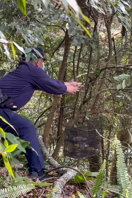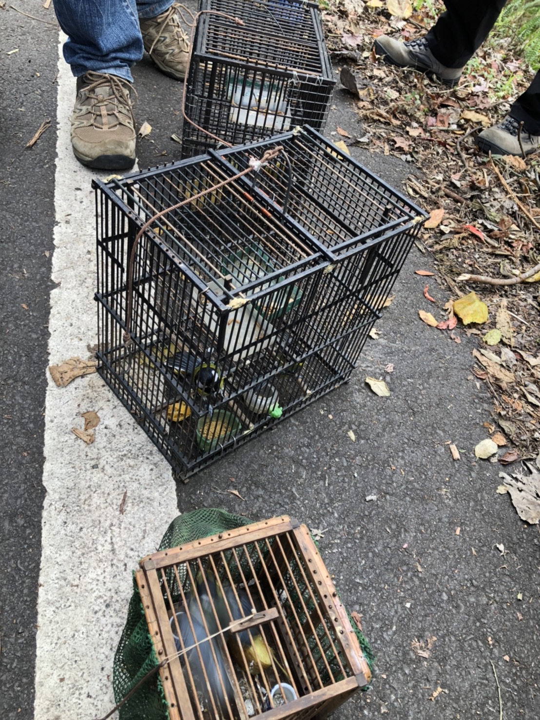東勢林區管理處於12月29日上午接獲通報,有熱心賞鳥人士於大雪山林道22.5K邊坡處發現鳥類陷阱誘捕籠,向台中市政府警察局和平分局大棟派出所報案,經該處鞍馬山工作站護管員會同派出所員警至現場巡查,未發現相關嫌疑人,誘捕籠內共發現計青背山雀4隻及黃山雀1隻,檢視鳥況良好後,已於當日就地野放,並將查獲之誘捕籠銷毀。 東勢林區管理處指出,大雪山林道為重要國際賞鳥勝地,該處長期進行賞鳥活動及保育教育宣導,並推廣「不驚嚇」、「不引誘」、「不追逐」、「不破壞」及「不捕捉」的賞鳥倫理五「不」曲,本案為該區首次發現有民眾違法放置陷阱誘捕保育類鳥類案件,依據野生動物保育法第18條及第19條規定,未經許可不得騷擾、虐待、獵捕、宰殺保育類野生動物,及使用陷阱獵捕野生動物,違者將依同法第41條處6個月以上5年以下有期徒刑,得併科新臺幣20萬元以上100萬元以下罰金,請民眾切勿以身試法。 東勢林區管理處表示,即日起將會同臺中市政府農業局、保七總隊第五大隊東勢分隊、臺中市政府警察局和平分局大棟派出所,已加強大雪山林道沿線之巡視及取締工作,並呼籲民眾於若發現保育類野生動物受到騷擾、虐待或獵捕情形或有具體事證,請向東勢林區管理處(04-25150855)或1999專線舉報,共同維護寶貴的野生動物資源。