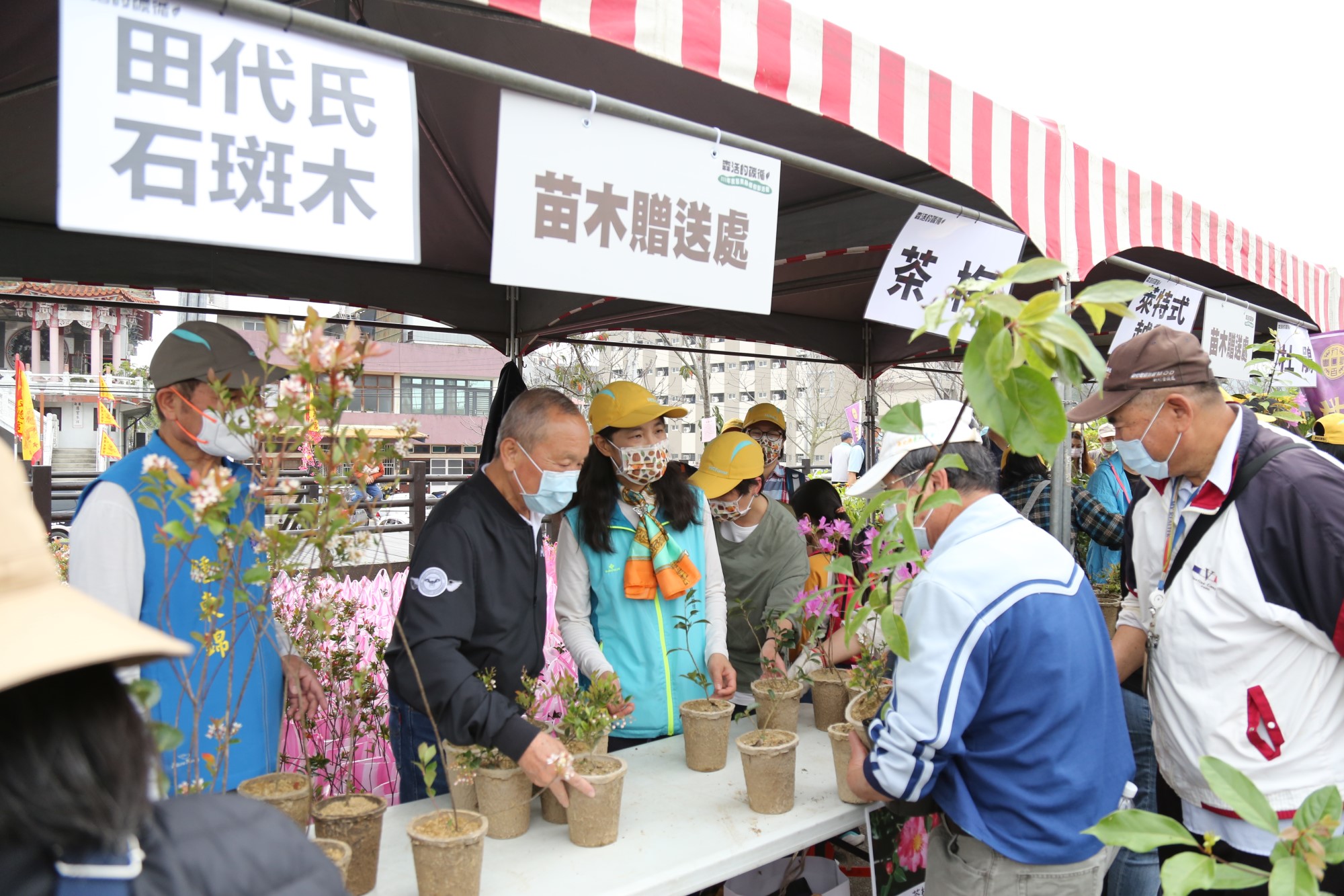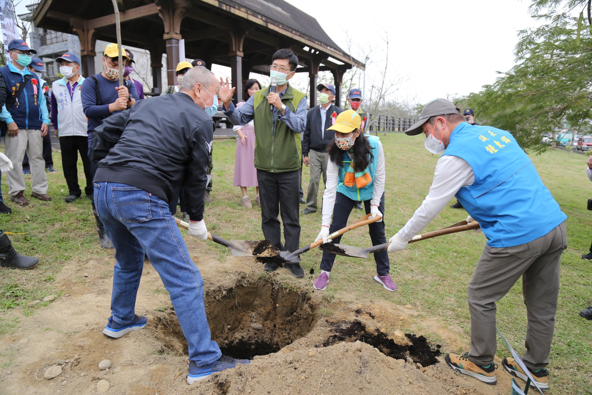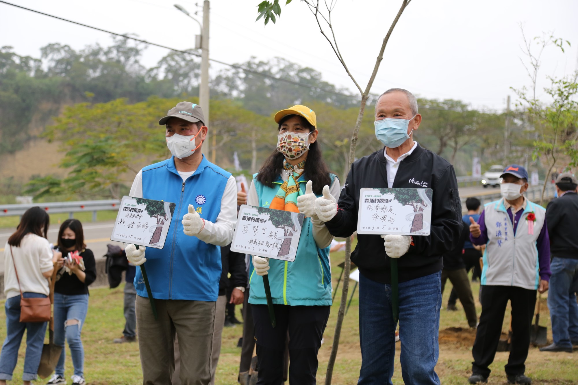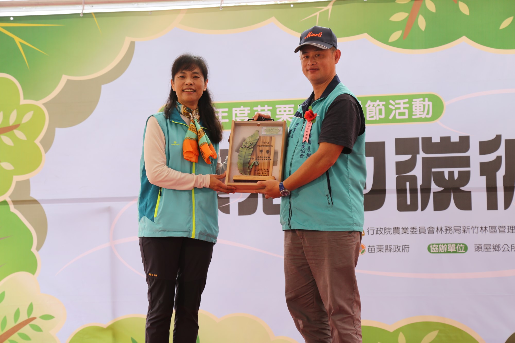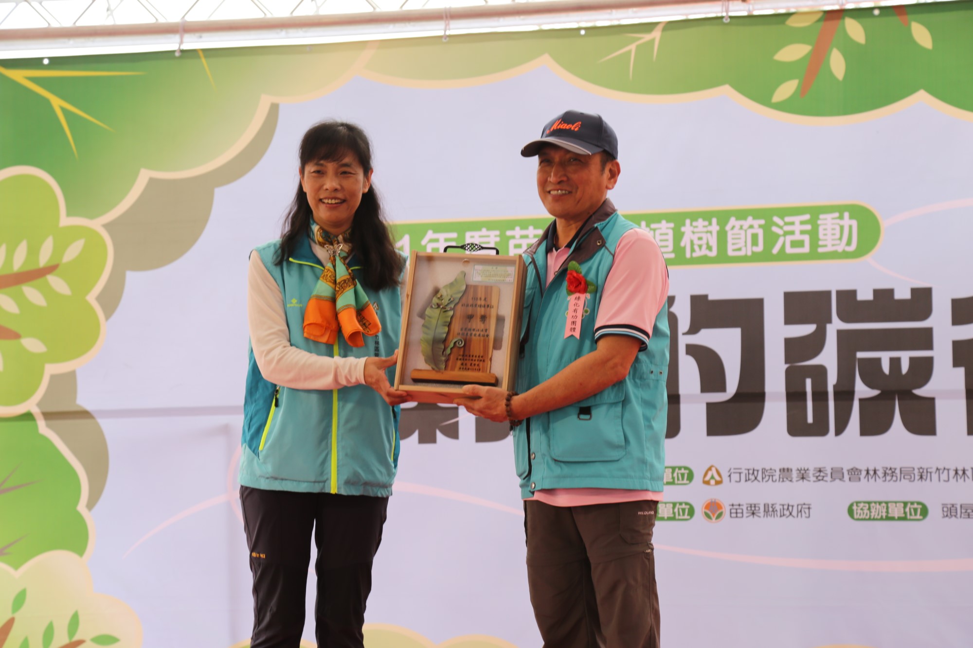 林務局新竹林區管理處和苗栗縣政府5日於苗栗縣頭屋鄉頭屋木棧道旁綠地共同辦理「森活的碳循」植樹節活動,由苗栗縣徐耀昌縣長及新竹林區管理處夏榮生處長共同種下青剛櫟、光臘樹等原生喬木,未來長成為林蔭大道,將可提供民眾休閒遊憩的綠帶空間。另新竹林區管理處現場準備了田代氏石斑木、茶梅、烏來杜鵑及萊特氏越橘等,合計2,000株原生苗木免費贈送予民眾帶回家在家園綠地栽植,共同美化環境。 新竹林區管理處處長夏榮生表示今年植樹月標語為「森活的碳循」,意涵源自於COP26聯合國氣候變遷大會所協議的全球「減碳」目標,期望藉由植樹造林增加「碳吸存」,而多種樹多吸收溫室氣體,幫助地球降溫,大家透過實際行動共同守護苗栗的青山綠水好風光! 今日活動,由徐縣長頒發苗栗縣綠化有功的團體與個人,竹林區管理處也頒發參與林務局110年度「社區林業」計畫成果優異的苗栗地區績優社區,獲獎社區為「苗栗縣頭屋鄉明德社區發展協會」以及「苗栗縣樂活通霄休閒農業發展協會」,明德社區發展協會致力於野蜂復育,復育有成後透過社區全民養蜂推動林下經濟,讓更多青年回鄉提升社區產業發展;樂活通霄休閒農業發展協會則透過古步道資源盤點、調查及植物、蝴蝶辨識,推動里山生態旅遊,帶動當地觀光產業。獲獎社區透過瞭解在地的自然資源並投注心力進行環境營造,與新竹林管處一同發揚環境永續發展的精神。 此外,本次活動現場由新竹林區管理處針對石虎保育、國有林治山防災、保林愛林及廉政宣導等相關林業業務設置宣導攤位,以淺顯易懂的方式介紹讓民眾了解林業的多元面向,尤其苗栗是石虎重要的棲息地,以小遊戲讓民眾認識淺山生態系,在了解自己的家鄉同時也提升環境保護意識,並與家鄉的生態環境共存共榮。