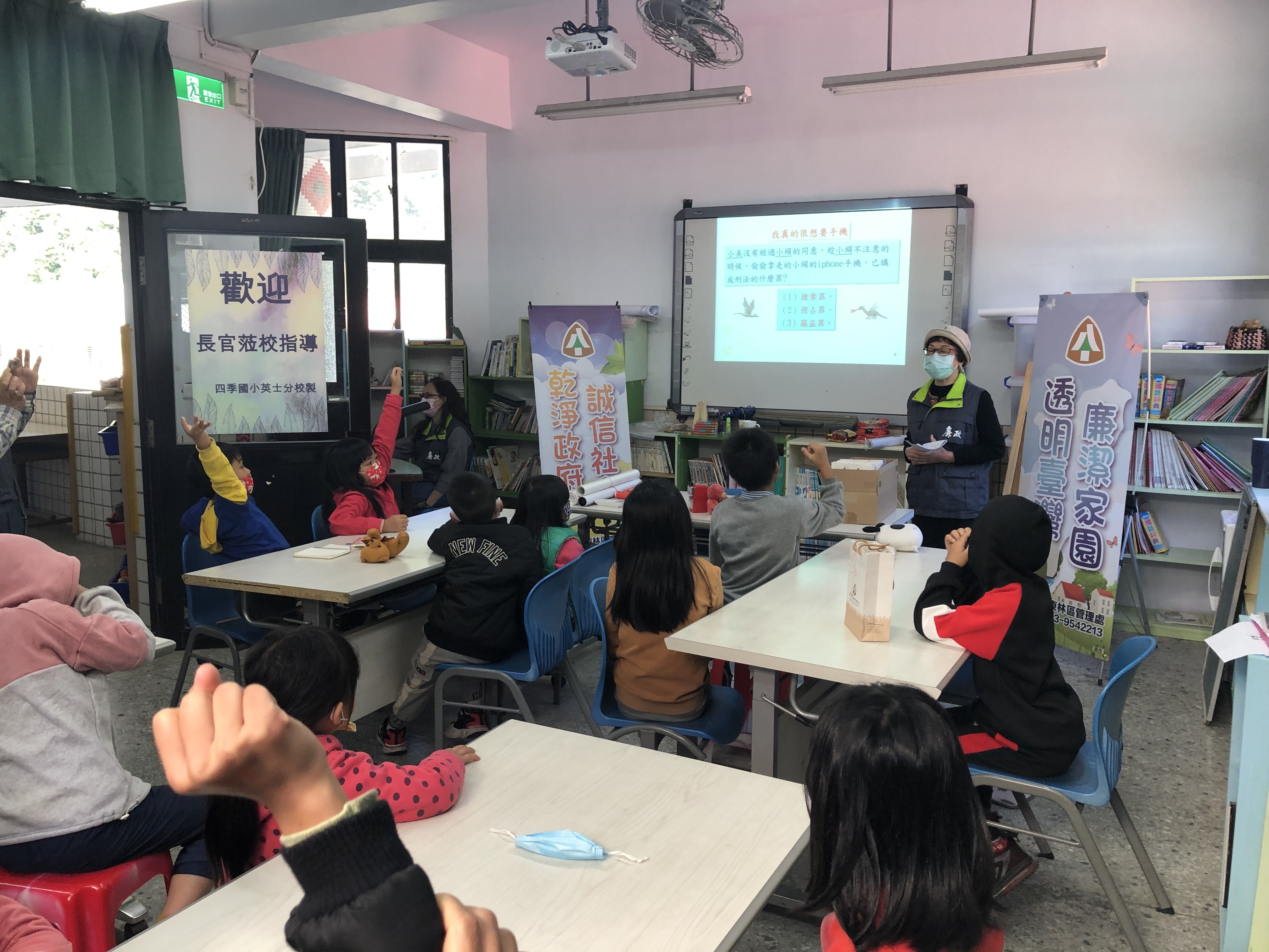為深化偏鄉學童廉潔觀念及品格教育,期廉能意識向下紮根,羅東林區管理處於轄内偏鄉原民小學辦理校園廉潔誠信保育宣導活動,首站來到大同鄉「四季國小英士分校」,活動內容除了結合「愛林護林保林」業務,並編撰富有教育意義的「我真的很想要手機」廉潔小故事,以說故事方式將廉潔誠信觀念,羅東林區管理處安排擅長說故事的廉政志工,以生動的肢體語言,加上自行製作亮眼的手機模型,來吸引小朋友目光,借由手機故事告訴學童,雖然我真的很想要手機,但是要取之有道,不是自己的東西不能有非分之想,活動在愉悅的互動氛圍下,達到廉潔誠信宣導的效益;另外,為了增加與鼓勵小朋友互動,現場準備精美宣導品進行有獎徵答,透過活潑生動、寓教於樂的互動學習,讓學童們體會廉潔誠信的真諦。 此次校園廉潔宣導活動,同時播放廉潔寶寶動畫「閻小妹-法治教育」3D卡通影片,廉潔寶寶參加兒童節跳舞比賽故事,融入評審送禮、利益迴避、商業誠信等,故事情節有趣,將抽象的廉政概念轉為生動的影像展現。會場外並提供桃金孃、田代氏石斑木、土肉桂等共200株苗木,讓民眾以111年度發票3張兌換1株苗木,廉潔保林愛護地球。 宣導活動宗旨希望在孩童學習能力及人格養成的重要階段,一同陪伴孩童學習正確價值觀,並且將廉潔誠信的種子,從偏鄉原民學童傳遞給家人,再傳達到社區,散播到社會各角落。