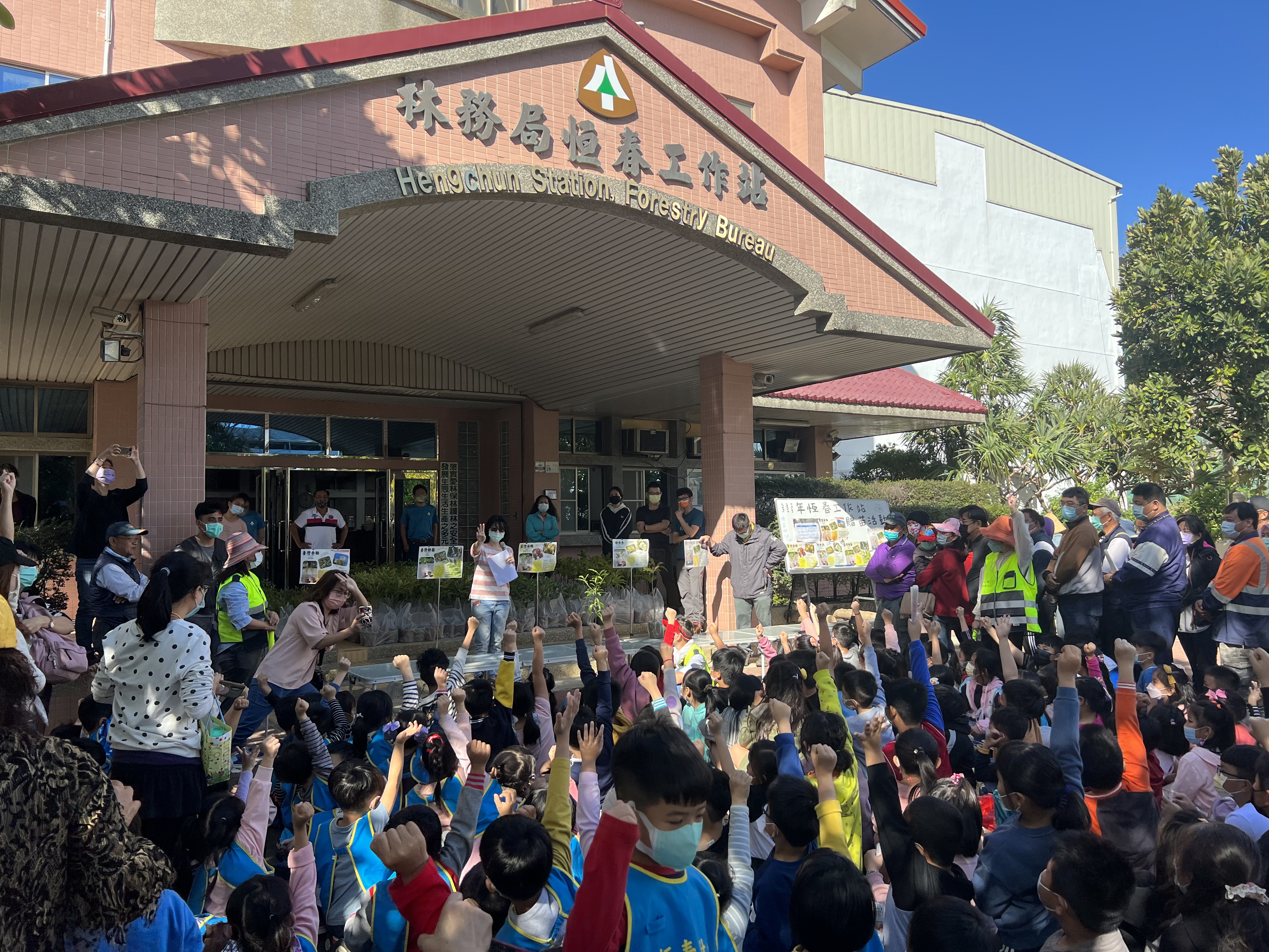 屏東林區管理處恆春工作站辦公室前廣場辦理111年植樹月贈苗活動,這次所發放的樹苗,都是台灣原生也是適合恆春地區的樹種,有台灣樹蘭、台灣海桐、台灣赤楠、白水木和穗花棋盤腳等5種共800株,民眾參與活動非常踴躍!現場的大朋友小朋友們人數更是超過200人!,所發放的800株樹苗,不到20分鐘內就索取一空,更是展現了大家對樹苗的喜愛。 早上9點還不到,就有民眾陸續在工作站辦公室前排隊等待且都帶著塑膠袋、發票及廢電池,該處希望以2張發票或2顆廢電池換取1棵樹苗的方式,不僅讓民眾能為社會公益盡一份心力,同時達到植樹護樹守護綠家園,此外現場還有宣導有關環境綠美化重要性、外來入侵種對生態環境破壞的嚴重性以及守護森林從小地方開始做起的重要,讓大家都能一起守護山林,成為維護生態的力量。這次的贈送苗木用環保材質為穴盆,有由木材纖維素製成的玻璃紙和由回收的廢紙經過重新打漿、散漿、脫墨等過程後,重新抄紙塑形的紙漿盆,兩個都是可以直接種入土裡,民眾也十分環保的自備提袋前來領苗,讓不塑、減塑成為我們的日常,由公到私都能為台灣環境盡一份力。 這次沒領到樹苗的民眾也別難過,林務局在3月27日(日)車城海口港另辦理植樹節活動,當日不僅有植樹還有贈苗及宣導活動,歡迎大家一起來參加活動。另外提醒參加活動時請配戴口罩,做好防疫相關措施。
