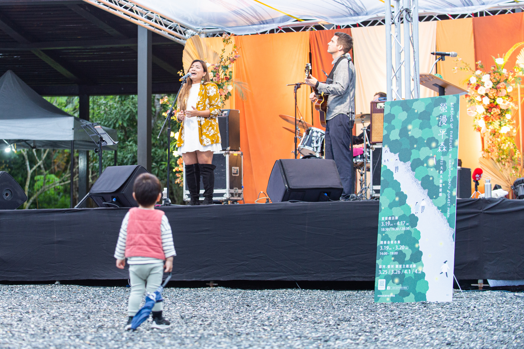2022「螢漫平森」大農大富賞螢趣19日正式啟動,花蓮林區管理處於3月19、20兩日下午規劃「賞螢開幕特別慶典」,慶典內容有草地音樂會、螢光點點市集及自然療癒手作體驗,讓民眾從白天玩到晚上,享受音樂饗宴、逛市集到參加螢火蟲的世紀婚禮,今日開幕參與單位包括台糖公司花東區處、花蓮縣政府、光復及瑞穗鄉公所與周邊社區共襄盛舉。 大農大富賞螢趣開幕活動首日,民眾白天在園區騎腳踏車,感受春日森林新生的美好,下午體驗由太巴塱伊那歌謠隊開場,花蓮在地樂團莫言、海小姐及那就醬樂團等創作歌手串聯演出草地音樂會,還可逛逛由大農大富平地森林周邊社區、友善小農、手作藝術家與特色小店組成的「螢光點點市集」,帶上野餐墊就是最舒適的森林下午茶,當日湧入約2000名遊客一同享受美聲美食。 為了讓民眾透過五感來感受森林的療癒力量,規劃3項主題自然療癒手作,有森林種子繽紛串、芳療手作,以及靜心植物槌染,大、小朋友皆可一起參與,成為最獨特的親子交流時光。現場還有展示「林下經濟─段木香菇」主題攤位,讓民眾了解森林保育、生活與經濟發展十分緊密扣合。 林管處長黃群策表示,大農大富多年與周邊社區居民共同守護園區鄰近農田及森林,經過長期監測使具環境指標的螢火蟲得以定居在大農大富園區,感謝台糖公司、在地社區與縣府各單位多年支持,讓賞螢活動逐年具規模」。 「大農大富賞螢趣」活動自3月19日至4月17日,每日活動皆有人數上限,採線上購票預約制。賞螢季期間,為了降低對螢火蟲的干擾與維護民眾安全,規劃由導覽人員引導賞螢體驗,活動期間皆有人車管制,及防疫工作規劃,請民眾配合現場工作人員指引。活動相關訊息可上「大農大富平地森林」臉書粉絲專頁,與花蓮林區管理處官方網站洽詢,特殊團體、購票諮詢可來電至活動客服0900-782458洽詢。 備註:今日參與貴賓包括台糖公司花東區處副經理歐竹南、花蓮縣政府農業處處長陳淑雯、行研處處長吳昆儒、觀光處課長黃繻寬及原住民行政處周雁翎、中區服務中心副主任孫春玉及林榮祿、光復鄉公所鄉長林清水、瑞穗鄉公所鄉長陳進光、花東縱谷國家風景區管理處秘書伍哲宏、水保局花蓮分局副分局長宋文彬、農糧署東區分署分署長徐煇妃、傅崐萁立法委員服務處主任葉佳興、陳瑩立法委員服務處助理杜仁義、蔡依靜議員服務處助理陳言安等。