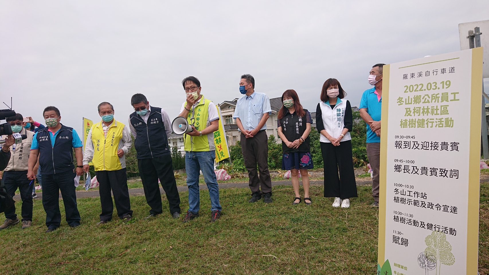 林務局羅東林區管理處與冬山鄉公所於今(19)日於鄰近柯林社區的羅東溪堤岸步道旁辦理「2022年冬山鄉公所員工及柯林社區植樹健行活動」,現場由冬山鄉鄉長林峻輔率領公所各同仁、立委陳歐柏夫人、宜蘭市市長江聰淵服務團隊代表江惠珠、冬山鄉民代表主席黃強呈偕各代表4人、羅東林管處秘書周真坪、柯林社區熱情鄉民們共約150人,一同種下臺灣原生樹苗「春不老」1200株,綠美化在地特色環境,打造台灣永續環境的新景點。 羅東林管處表示,與冬山鄉公所於每年植樹月期間共同在鄉內進行植樹、健行、綠美化的活動已持續3年,本次更邀請在地柯林社區民眾一起加入實踐植樹減碳護地球的目標,透過今年植樹月主題「森活的碳循」推廣,並帶入臺灣原生種的美,在種下樹苗的同時,營造屬於臺灣的優化生態、美化景觀,營造更舒適生活環境,也呼應森活碳循愛地球的目標。