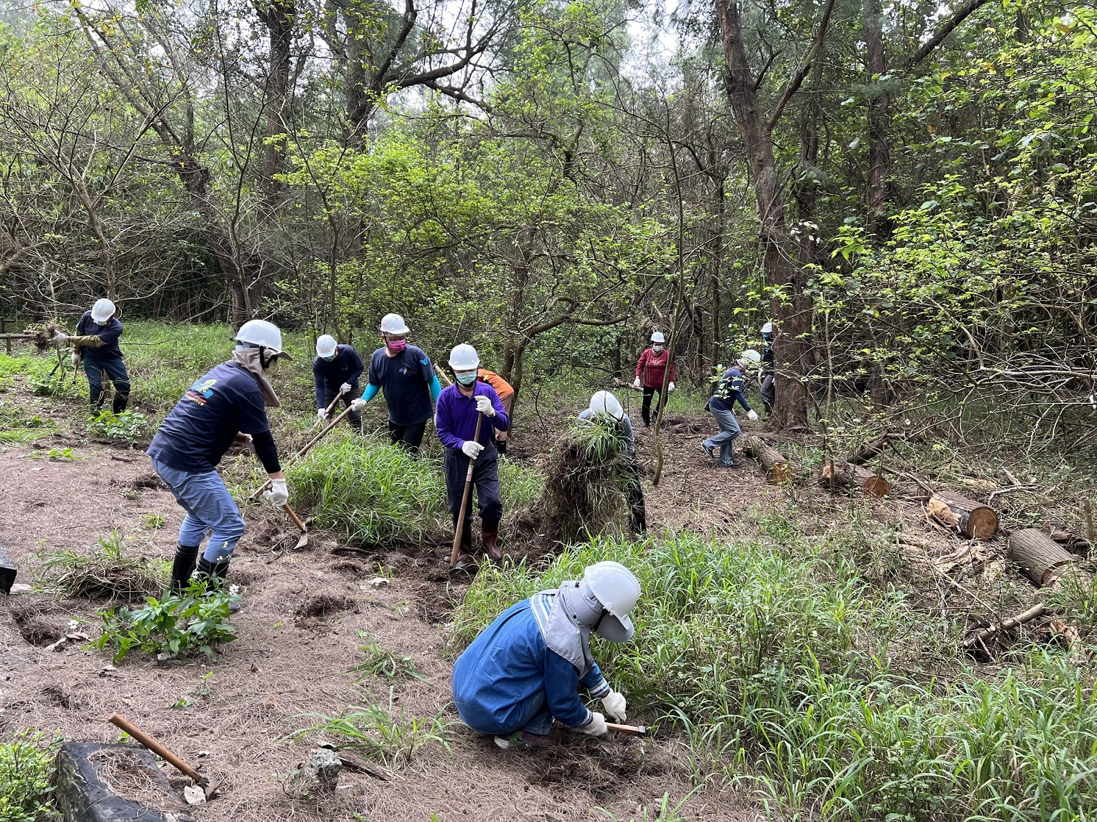 為營造友善紫斑蝶的生態環境,新竹林管處與台灣紫斑生態保育協會合作,結合在地竹南鎮塭內社區發展協會及多位保育志工於3月19、20日在竹南濱海編號第1311保安林下的「三森步道」沿線種下近千棵的蜜源植物,為遷徙北返竹南繁殖的紫斑蝶及其他蝶種營造一個更友善的棲地環境。 新竹林管處處長夏榮生表示,竹南濱海編號第1311保安林是國內已知斯氏紫斑蝶最大的繁殖地,去(110)年開始與台灣紫斑生態保育協會合作並結合在地社區,在長青之森、親子之森及假日之森沿自行車道兩側各15公尺的13公頃保安林地內進行除蔓、外來種植物移除及自然資源盤點調查工作,共記錄到3,685株斯氏紫斑蝶幼蟲的食草-羊角藤。夏榮生說,調查的結果比我們預期的數量還多,既然食草充足為什麼蝴蝶生態不如從前?這個問題在與專家學者會勘討論後,推測蜜源不足可能是其一主因。因此,今年延續去年的調查範圍,在不影響保安林既有防風功能下,利用林下孔隙地進行移除外來種植物大黍,將底層枯枝落葉層鬆整等微棲地整理後,種植白水木、厚葉石斑木、橢圓葉赤楠、山黃梔、台灣香檬等近千株蜜源植物,提供來此繁衍的紫斑蝶有豐富蜜源。 台灣紫斑蝶生態保育協會表示,如果沒有公部門的投入,光是民間力量很難推動此具體且階段性的計畫,感謝新竹林管處的大力支持,除了去年的除蔓讓羊角藤有更好的生長空間外,也協調苗栗縣竹南鎮公園路燈管理所在紫斑蝶遷徙繁殖期間4至6月不除草,留下更多蜜源供紫斑蝶使用。今年更延續去年棲地營造工作,擇定約20處孔隙地栽植原生蜜源植物,提供蝴蝶一個友善空間。 新竹林區管理處表示,今年再度與台灣紫斑蝶生態保育協會合作,也邀請保安林周邊的社區發展協會、苗栗縣垃圾焚化廠共同參與棲地營造及協助植栽養護澆水工作,並號召對蝴蝶生態有興趣的民眾一起加入除蔓、種樹的行列,透過實地參與了解蝴蝶對自然生態的重要、蝴蝶食草與蜜源植物辨識以及原生植物種植、照顧等實務技術,引領在地社區與社會大眾認知森林生態的多樣性,維護紫斑蝶重要生態棲地。