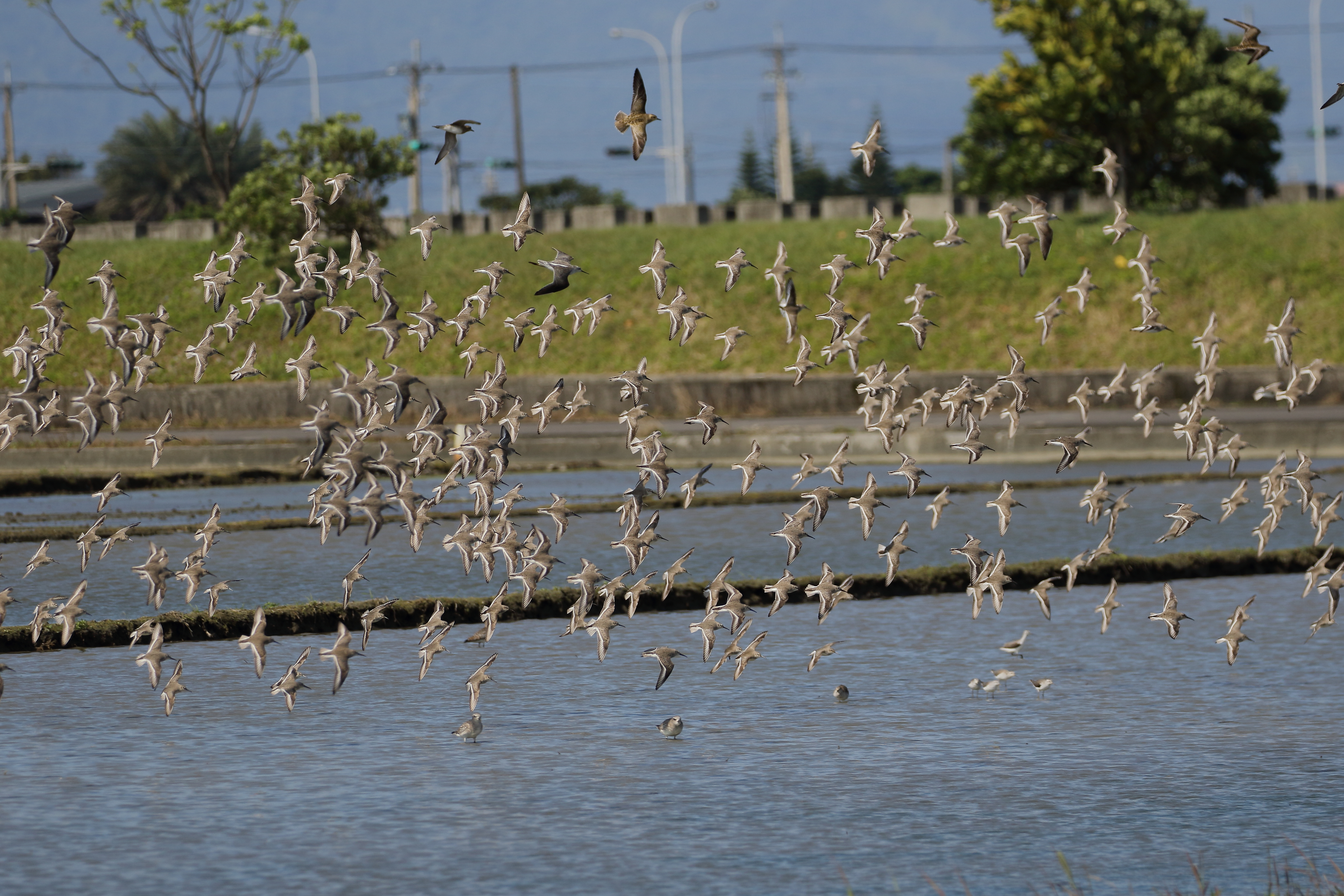 水鳥回來了! 宜蘭壯圍新南國土生態綠色網絡執行田區,是水稻田?還是養雞場?讓鳥鄉民調查時傻傻分不清,驚呼超壯觀爆大量! 林務局羅東林區管理處推動「國土生態保育綠色網絡計畫」,委託宜蘭縣生態農業發展協會並與在地品牌「新南田董米」合作,進行水田鳥類保育行動,自2018年起4年深耕期間,棲地營造面積擴張至10甲以上、調查記錄10種以上野鳥數量增加,亦有因棲地營造而吸引來的新南社區新紀錄鳥種,成果豐碩! 行政院農委會林務局推動國土生態保育綠色網絡建置計畫,期望在地狹人稠的臺灣,編織起健全的生物保育網絡。羅東林區管理處盤點位於臺灣東北宜蘭縣之生物資源,考量蘭陽平原地處東北季風直接吹拂的區域,水稻田一年一穫、可終年蓄水,形成環境良好的濕地,再加上臺灣正位於東亞澳遷徙線(East Asian-Australasian Flyways, EAAF)的必經位置,每年吸引大量水鳥前來蘭陽平原的水稻田棲息。故,著眼具生態價值之水田濕地環境,推動友善環境耕種,導入生態系服務給付(Payments for Ecosystem Services)之理念,提供「生態薪水」作為執行友善環境行動的報酬,進行休耕期田區再生稻保留、田埂加寬與植被經營、水位管理、米糠施撒等四大項棲地營造,期望增加鳥類的食源與棲息空間,同時也為每年來台灣度冬、過境的候鳥們,營造能安身立命的棲地環境,並將理念推廣至五十二甲、內城、季新錦眾等其他水鳥重要棲地,點、線、面逐步擴張,共組水鳥保育的「網」,守護在地生態,讓珍貴自然資源在蘭陽平原永續,期望實踐人與自然共存共榮的精神、維護生物多樣性。 新南位於蘭陽溪口重要野鳥棲地(IBA)範圍,是宜蘭縣內知名的鳥類熱點暨保育優先關注區。由於近年蘭陽平原土地開發壓力、水田溼地環境嚴重流失,加上慣行農業農藥使用、東亞澳遷徙(EAA)整體棲地品質下降,水鳥數量大不如前。林務局羅東林區管理處期望守護蘭陽平原珍貴水鳥資源,陸續與新南、季新、五十二甲、內城等地區合作,針對2018-2022年、4年度之10至2月(冬季休耕期)調查資料進行分析,超過十種野鳥於綠網田區的單位面積數量優於非綠網田區。在數量成長方面,長趾濱鷸、田鷸、紅冠水雞及麻雀等4種野鳥最為明顯,鷹斑鷸及黑腹濱鷸小幅增加。上述野鳥除紅冠水雞外,皆為近年來全臺或宜蘭縣內數量減少的種類,亟需關注。在生態綠網的實踐下,受惠於綠網田區的鳥種亦有在鄰田數量增加的趨勢,以鳥類大尺度棲地而言無疑是個另人振奮的好消息。 除了讓野鳥「回來了」,國土生態綠網計畫也成功「變出新朋友」,如小秧雞、雙眉葦鶯、赤胸鵐,皆為原本未曾記錄、在進行棲地營造後才首次現身的新紀錄鳥種,令人振奮。同時,綠網田區也有維持或增加鳥類忠誠度的效果,如東亞秧雞、褐頭鷦鶯,雖現階段於社區之整體數量未增加,但明顯偏好生態綠網棲地營造的田區,因此執行團隊大膽推測,綠網田區如能持續擴張,上述野鳥也可望增加。國土生態綠網計畫強化棲地營造4年,加上在地社區多位農民全力支持,成功守護水田鳥類,然而並不是所有鳥種的保育都如此順利,如東方環頸鴴及小環頸鴴,數量先增後減,小環境鴴數量甚至比綠網推動第1年少;新南地區的明星物種—太平洋金斑鴴、小辮鴴,也因其集體移動能力及對大尺度棲地的需求,難以評估成效及方向。林務局羅東林區管理處期盼在現階段東亞澳遷徙線生存危機未解,宜蘭縣整體棲地面積面臨開發壓力持續減少下,能持續守護關注區整體棲地,並期望有相同理念的共同加入,讓國土生態綠網累積的行動經驗與成果就能持續為臺灣保育寫下新篇章、打造人類與水鳥共生的應許之地。