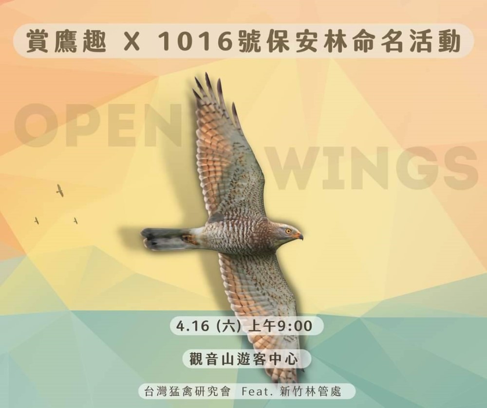 位處新北市五股區、八里區交界的觀音山,視野開闊、環境優美,而在其海拔350~620公尺左右的範圍內有個編號第1016號土砂捍止保安林要徵選新名字,為拉近保安林與民眾的距離,新竹林區管理處訂於111年4月16日上午9點~12點於觀音山遊客中心辦理賞鷹暨現場命名投票活動,參與民眾將贈送限定小禮物,最後將以網路及現場總和得票率最高者,作為1016號保安林的新名字。 新竹林區管理處轄管觀音山,山勢由淡水河北岸眺望似觀音躺像而得名,觀音山的視野極佳,可俯瞰臺灣海峽、淡水河、關渡平原、臺北港,每年3至5月赤腹鷹過境時,更是賞鳥聖地,吸引許多賞鳥人士前往觀鷹;另外,在步道的沿線,有許多名剎古寺,讓民眾在享受自然視野之餘,也能體驗在地人文的奧妙。 新竹林管處說明,臺灣森林面積廣大,其中保安林在國土保安上有其重要的地位,其經營目的是以保護特定之公益功能為主而有別於著重木材生產的傳統林業經營。目前臺灣已編入保安林之種類計有 11種,以水源涵養保安林及土砂捍止保安林為主。新竹處轄內,北從新北市烏來區一路向南延伸至苗栗縣苑裡鎮,淡水河以南至大安溪以北,共有94號保安林,面積達6萬多公頃,本次要新命名的「1016號土砂捍止保安林」即是借助森林涵養水源、鞏固砂土的能力,防止地表沖蝕、減低砂土流出淤積河川、水庫,並積極貯留水資源、淨化水質,達到維護國土安全目的。 新竹林管處為了深化保安林的經營管理工作,透過融入里山里海精神推動社區與企業參與或認養,歡迎各界企業與社區夥伴與我們聯絡,公私協力共同守護保安林,成為全民的保安林。
