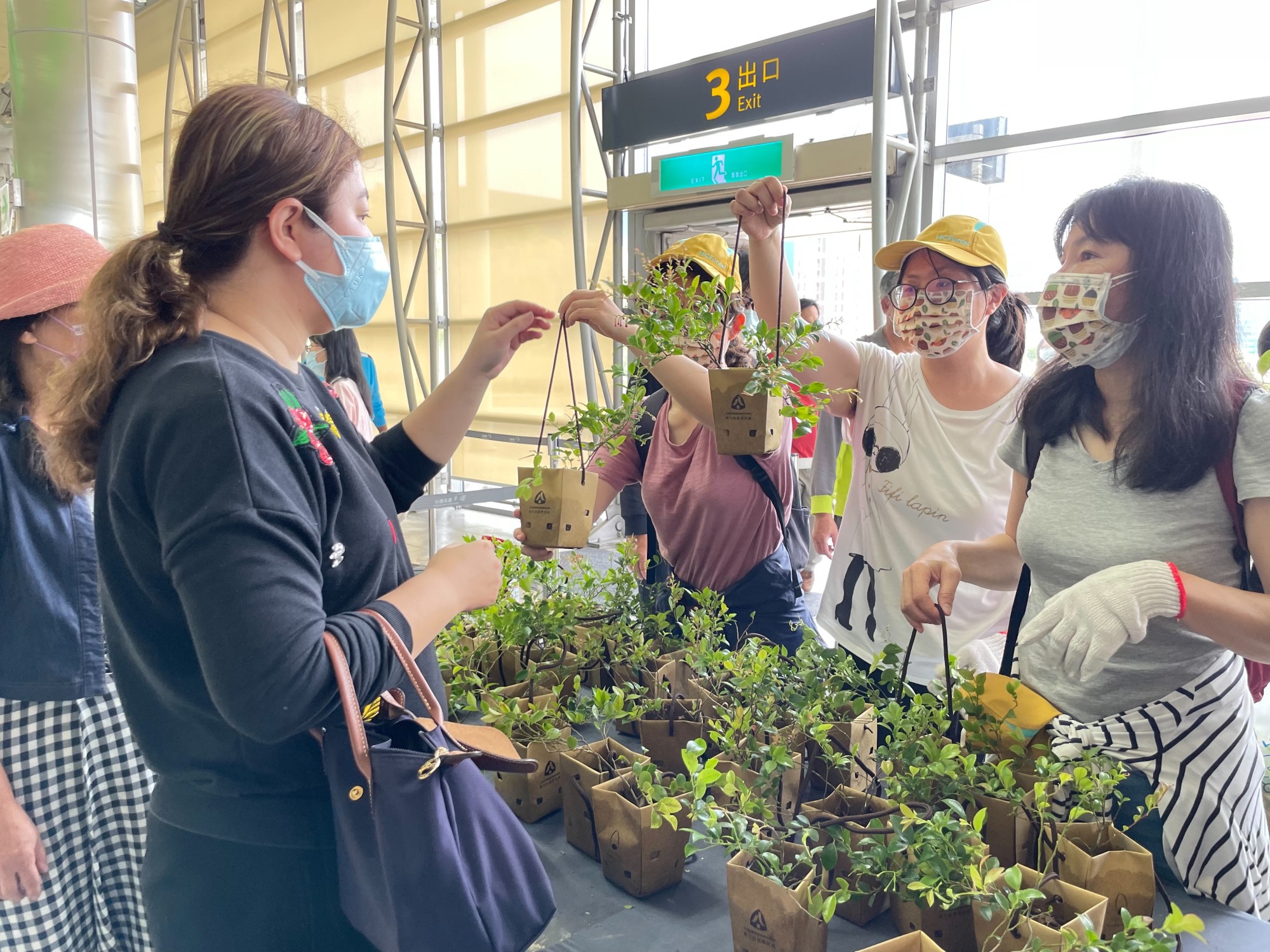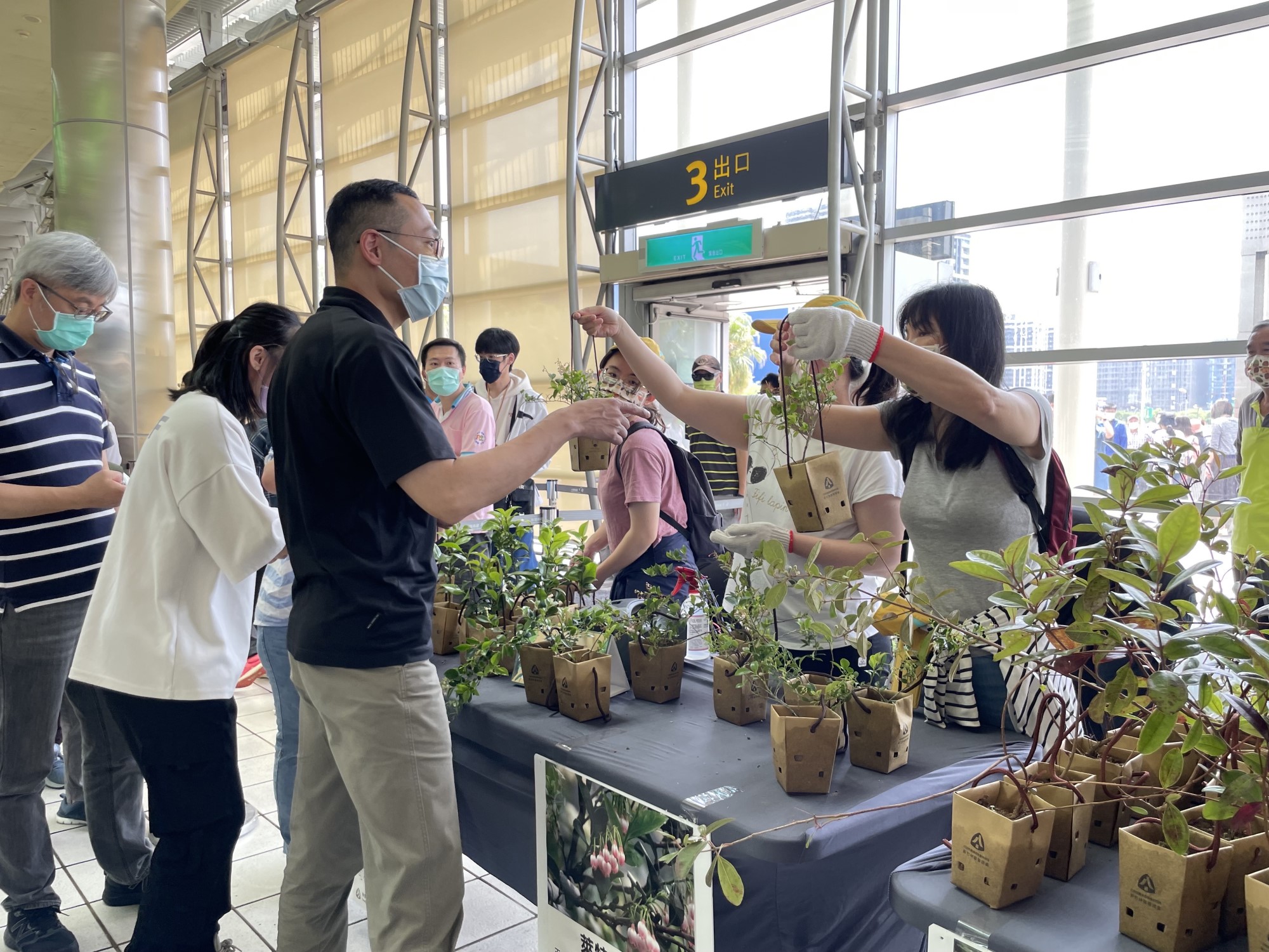 新竹林管處為響應世界地球日,於今(4/22)日攜手台灣高鐵公司在桃園高鐵站辦理臺灣原生植物贈苗活動,透過贈苗、植樹,引領民眾、企業共同採取行動,維護並累積地球的綠色資產。 新竹林管處表示, 2022年是422世界地球日的第52週年,今年地球日總部以「投資我們的星球」為主題,呼籲各界應加快腳步採取氣候行動,以落實綠色經濟及永續經營。為踐行全球增綠計畫,今年新竹林管處首度與致力落實社會企業責任的台灣高鐵公司合作,特別在桃園高鐵車站發送萊特氏越橘、鳳凰山茶、桃金孃、鐵冬青等共計1,200株台灣原生苗木,除了使用回收紙漿纖維製成、可自然分解的育苗盆盛裝,並加附穿繩設計,讓行進中的旅客更便於攜帶提取。 為了鼓勵民眾、旅客拿出具體行動力,並遠離植物黑手指的擔憂,新竹林管處除了挑選適地適生的臺灣原生植物贈送外,更特地邀請甘霖植物診所的楊淳婷樹醫師團隊親臨現場,為民眾解答樹木種植與後續照養相關疑難雜症,讓民眾輕鬆掌握種樹技巧與照養知識,活動現場響應熱烈,苗木不到1小時就全數發完。本次活動藉由政府、企業的合作贈苗,並鼓勵民眾透過手植來共同體會植物帶來的美好,除了讓民眾參與守護我們的土地環境、投資地球的行動外,並同時發揮1+1>2的永續影響力。