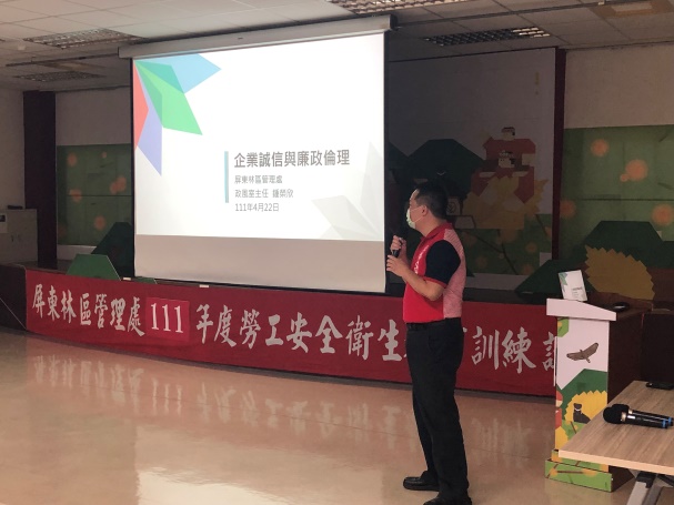 屏東林區管理處22日舉辦「111年度職業安全衛生管理,防災橫向聯繫暨工程生態友善措施實務研習」,參與人員除了林管處同仁,同時邀集了施工廠商及委託設計監造單位、交通部公路總局第三工程處、農田水利署、河川局、水保局台南分局、高雄市區公所與屏東縣鄉公所相關政府機關單位,共60人參加訓練,反應熱烈。 研習邀請勞動部職業安全衛生署(南區職業安全衛生中心) 孫技正德和進行職業安全衛生宣導,並建立相關機關橫向聯繫方式,藉由職業災害實際案例分析探討相關法規及補(賠)償責任,瞭解辦理工程所需要注意事項及安全性,降低職業災害的發生,同時邀請逢甲大學水利發展中心許裕雄博士、陳宣安博士講習水庫排砂及防淤操作對下游河道衝擊及環境影響,對底棲生物及河川魚類影響討論,讓所有參訓學員收穫良多。 課程另結合屏東林管處政風室辦理「企業誠信廉政宣導」,除提醒廠商履約應落實誠實信用之精神,更透過播放廉政署最新企業誠信微電影「幸福.勻勻仔行」及公視戲劇「茶金」以詮釋出廉潔之價值。 透過教育訓練課程讓學員能夠吸收活用,達到工程品質零工安零災害,進而維護公共設施及保全對象之生命財產安全,也了解工程對河川生態友善方法,唯有安全經營才能永續成長,為國土保安及環境永續發展貢獻所長。 全球氣候變化導致各地氣候變異,極端降雨事件有增加趨勢、強降雨或降雨型態改變等。林務局屏東林區管理處轄管國有林地,經歷颱風及地震等侵襲後,使得原本脆弱的地質條件更受嚴重衝擊,將有可能導致複合型災害的產生,各機關無法再單獨處理災情,透過建立橫向聯繫機制,共同分工合作並加強防災應變能力,以減少災害所帶來的生命財產損失。
