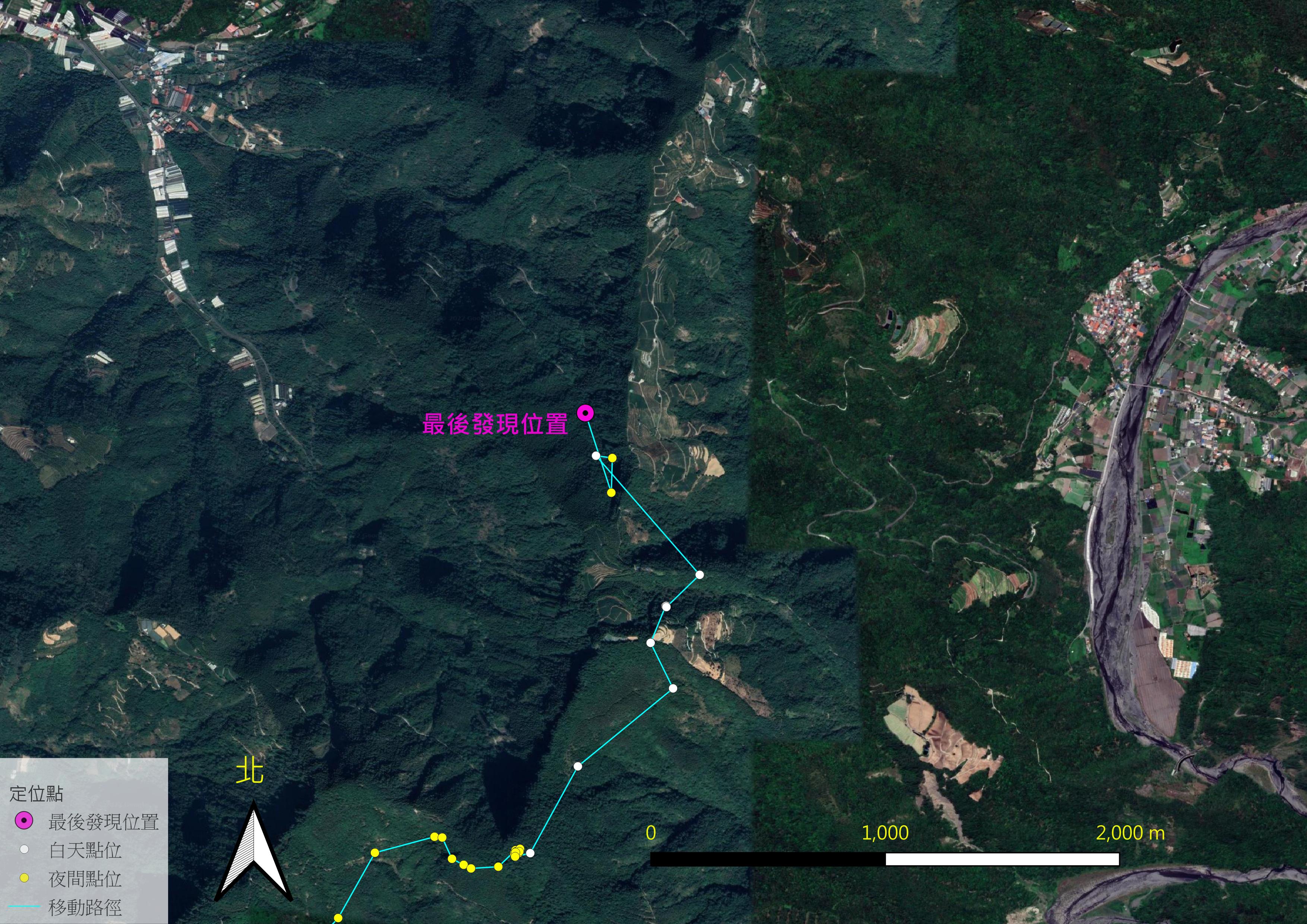 去年曾於臺中東卯山果園誤中套索,傷癒野放後又下山於麻必浩、桃山部落一帶滋擾農舍並再次誤入陷阱的編號711大公熊,於今(111)年4月12日帶著新編號「568」由農委會林務局東勢林區管理處再次野放後,5月6日起失去衛星接收訊號,工作團隊隔日啟動搜索,因地形崎嶇,5月9日始於衛星訊號最後出現地點附近,距南投仁愛鄉武界產業道路不到100公尺處發現黑熊遺體遭到掩埋,今(10)日開挖取出後,發現屍體雖完整,但未見原本所配戴之發報器頸圈,初步檢視外觀發現頭部及胸部有明顯外傷,林務局已將黑熊遺體後送農委會家畜衛生試驗所進行解剖以確定死因,亦已報請警政署保七總隊偵辦。 首次異地野放 出現疑似返家行為 林務局表示,東卯山黑熊是全臺首例與人類活動區域產生「人熊高度接觸」的黑熊個體。去年因已經歷第二度救傷,林務局數度召開專家會議,除評估個體健康狀況是否符合野放標準外,亦考量東卯山黑熊於原活動區域恐再度衍生滋擾事件,經與專家學者研商後擇定於南投縣信義鄉的丹大野生動物重要棲息環境進行異地野放。野放地點為海拔1,380公尺的原始闊葉林,林相完整、食物充足且鄰近水源,更與聚落、農地距離尚遠,並有數處天然屏障。 為防止東卯山黑熊野放後再度進入部落範圍,東勢林管處除了為黑熊繫掛衛星發報器及VHF無線電追蹤器,也針對丹大周邊部落設定電子圍籬,密切追蹤黑熊移動路徑,一旦黑熊進入電子圍籬預警戒範圍,林管處就會啟動預警性警戒任務,提醒沿線居民留意防範人熊衝突。 根據每小時更新的衛星追蹤定位資料,東卯山黑熊野放後活動範圍極大,自野放日起至5月6日清晨為止,24天內移動了上下落差極大的54.75公里,共翻越14道陡峻稜線,海拔範圍橫跨432到2,050公尺;從移動路徑的海拔變化也發現,其爬升與下降的移動累積高達27公里,攀爬坡度更曾達65度坡,並大致呈現白天活動、夜晚休息的模式,時而在溪谷滯留,時而快速移動,且主動避開聚落、農田等人為活動的區域,仍以天然林區域為主要活動範圍。但從移動路徑也可發現,除因經過聚落或受地形影響修正路線外,東卯山黑熊明顯逐漸往北移動。 而東卯山黑熊呈現「北返」的現象,與文獻指出美洲黑熊的成年公熊在野放後常有的「返家行為」或許有相似性。 遠離野放地點 穿越警戒區北上 近路旁森林中尋獲 林務局說明,東卯山黑熊於4月29日出乎意料地穿越原設定警戒區後持續北上,經過沿線聚落並未發生逗留滋擾情形,而是趁夜間快速通過道路,再進入原始林地,往水社大山方向移動。4月30日翻過水社大山山頂後,在山頂下方崩壁過夜,推測因連續天候不佳,以及鄰近地點周邊人為活動頻繁,需找尋合適路線前進,因而活動距離較先前短,至5月4日上午於卓社林道附近停留過夜,原推測會持續尋找原始林路線、移動較緩,卻突然於5月5日上午9點轉向鄰近聚落的武界農地區域,東勢林管處接獲訊號後,為兼顧人熊安全,立即會同南投林管處派員前往現場警戒,並委請當地村長及社區發展協會理事長等與山村居民溝通,將農園工寮內外食物收妥,避免吸引黑熊靠近;並請居民暫時收起因農害防治或原住民傳統狩獵所設置的陷阱,避免誤傷黑熊。 然而5月6日凌晨5點收到最後一筆衛星訊號,此後便再無回傳。東勢林管處隨即搜尋,5月6日整日於現場搜尋頸圈及另外的VHF無線電發報訊號未果,5月7日緊急運送3支方向性更強、更靈敏的VHF天線至現場擴大搜尋,工作人員由北至武界山稜線,南至卓社林道 6 公里處,東至武界部落展開地毯式搜索,5月8日上午切入森林,因地勢陡峭一度受阻,直到5月9日搜尋過程中,始發現一處可疑掩埋地點,挖開後確認為東卯山黑熊遺體。 林務局表示,原先大家仍抱持一絲希望,認為黑熊可能身處訊號無法抵達的隱密山溝中,仍於訊號消失位置附近放置誘引劑及紅外線自動相機,期待黑熊出現,沒想到仍遭遇憾事。對此結果,林務局極為遺憾,所有相關工作同仁也極為難過。 因遺體遭掩埋且有明顯外傷,除後送家衛所進行解剖與死因鑑定外,並已報請保七總隊調查,保七總隊第一時間前往事發地點蒐證,也呼籲民眾如有任何線索,請撥打保安警察第七總隊第六大隊(049-2775110)通報,或撥打林務局24小時通報專線(0800-000-930)提供線索,因而破獲者將依「取締或舉發違反野生動物保育法案件獎勵辦法」核發獎勵金,最高20萬元。