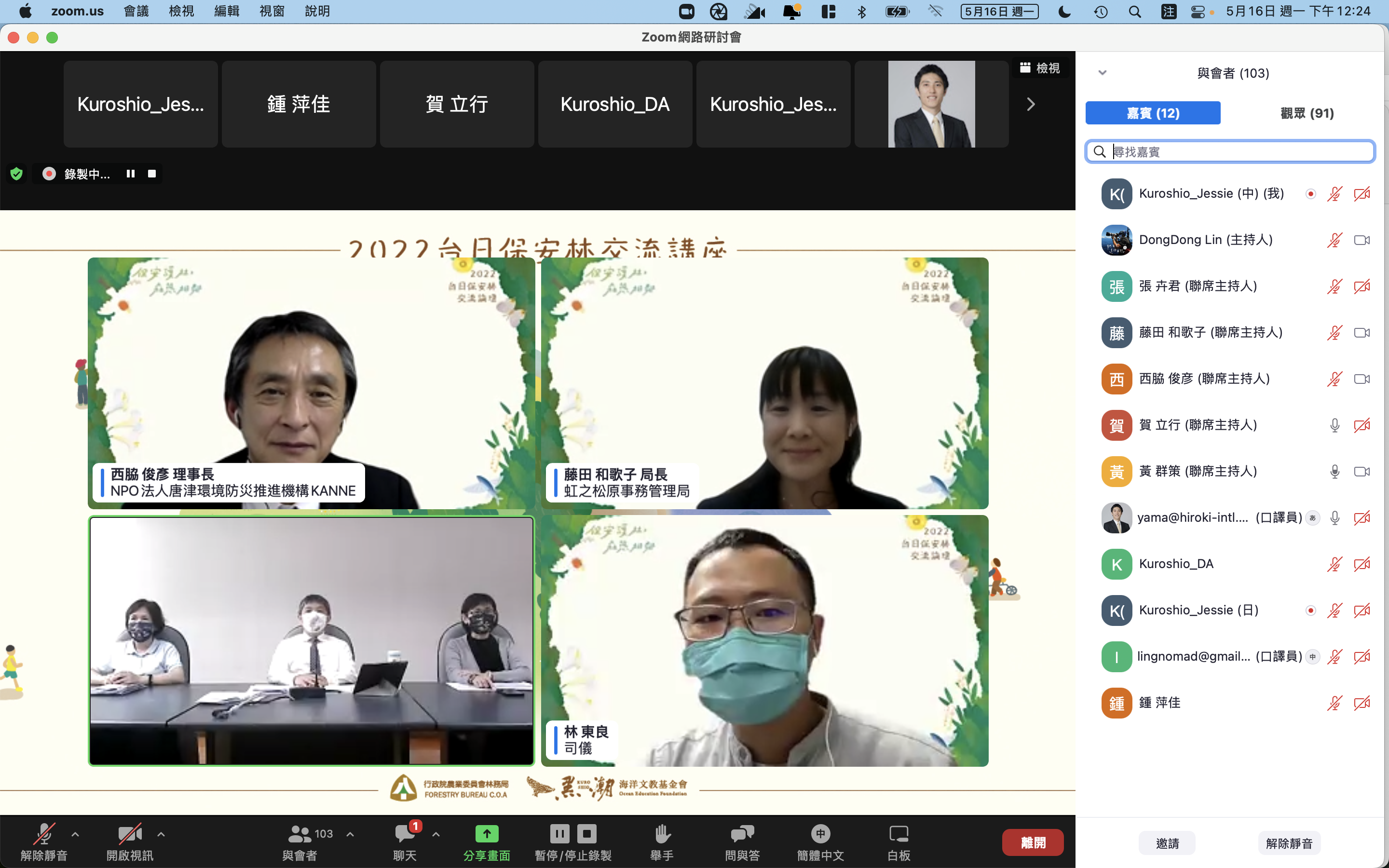 為打造「具有溫度的全民保安林」,花蓮林區管理處委託黑潮海洋文教基金會於5月16日上午舉行「2022台日保安林交流講座」,以名列日本三大松原之一、位於日本九洲唐津縣的虹之松原為主要案例分享,透過線上講座互相交流經營管理保安林的經驗,參與人員有公部門、企業界、NGO及NPO將近130人。 講座邀請日本虹之松原事務管理局局長藤田和歌子分享「虹之松原周邊社區的參與」和理事長西脇俊彦分享「虹之松原企業認養經驗」,最後由花蓮林管處林政課長賀立行分享花蓮地區保安林經營管理策略與經驗,線上參與者透過熱烈的問答交流,吸取日本成功案例,為保安林經營注入新模式。 林管處長黃群策表示,2018年舉辦首次「台日保安林交流論壇」,今年係屬第二年辦理,借鏡虹之松原的經營管理型態,增進公民參與保安林活動,並邀請企業認養。同時呼應生物多樣性主流化意識,期待未來能與虹之松原締結台日姊妹保安林,共同擘劃保安林的經營管理。 黑潮海洋文教金會執行長林東良表示,原本規劃兩日的保安林交流論壇雖因疫情調整為線上講座,卻可以不限名額讓全國關心保安林民眾都能共同參與的契機,從日本在企業責任和政府相對應政策、民間組織經營執行面與規劃面的寶貴經驗,都是值得參考的,社區及企業參與的公私協力模式,將是保安林經營管理不可或缺的一塊。