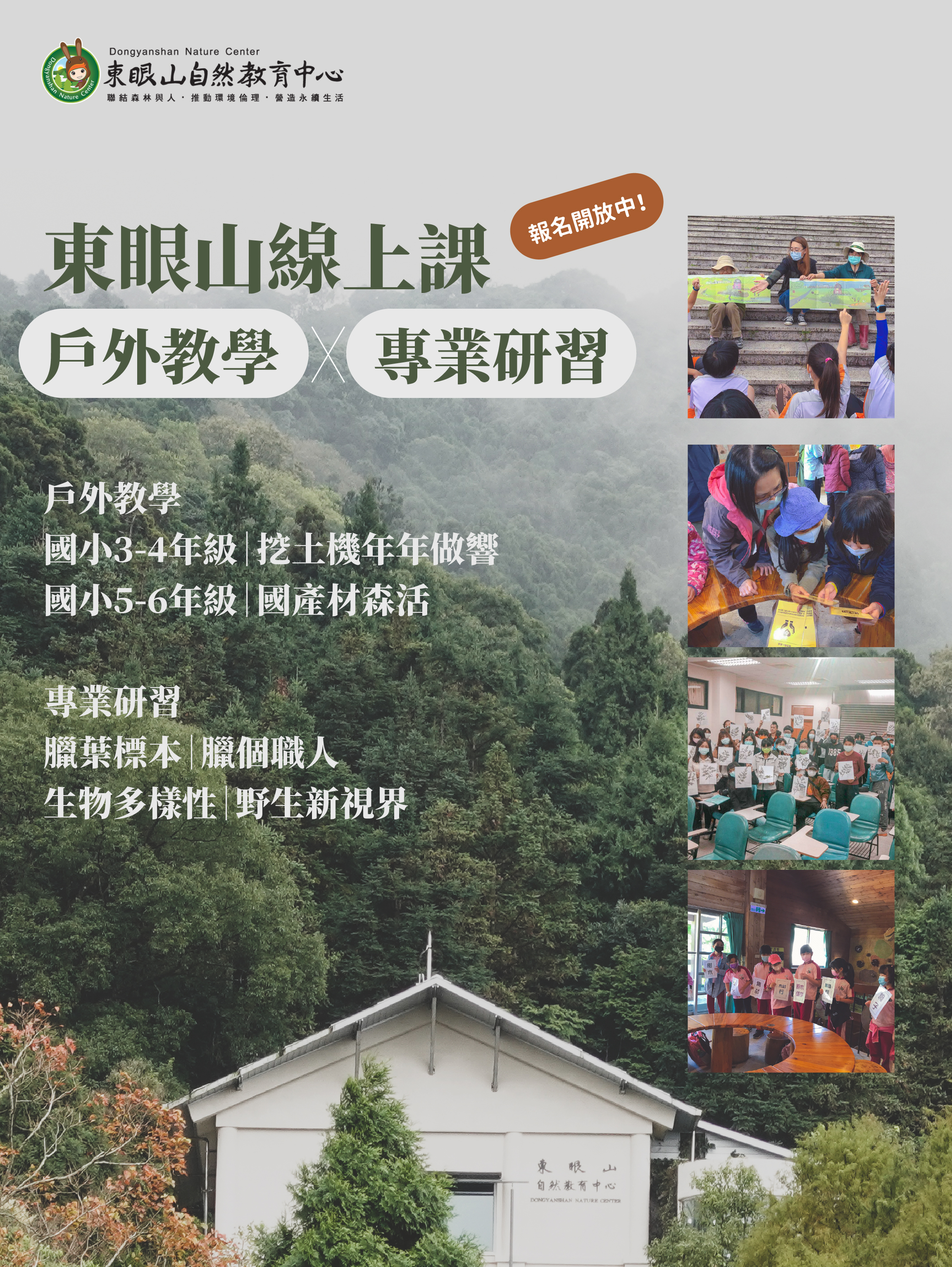 隨著疫情升溫,各縣市學校陸續停課,機關團體的增能計畫也受影響。為提供民眾與學生不間斷的學習體驗,新竹林區管理處東眼山自然教育中心規劃四堂與國產材、生物多樣性、臘葉標本相關的線上課程,供學校教師及機關團體遠端居家學習不中斷。課程自即日起開放團體申請,歡迎至東眼山自然教育中心粉絲專頁預約報名。(連結網址:https://reurl.cc/DyKyg5)。 東眼山自然教育中心長期推廣環境教育,期望民眾在認識環境議題後,將所學帶回生活。本次提供的線上戶外教學包含適合國小三至四年級的〈挖土機年年作響〉,藉由繪本故事演繹,引導學生認識環境變遷議題,一同討論日常選擇對環境的影響;〈國產材森活〉是適合國小五至六年級參加,課程會介紹木製品、森林與國產材的關係,讓學員更加珍惜土地上的林業資源。另外,針對機關團體的線上專業課程,中心也提供了兩套課程:以臘葉標本製作為題的〈臘個植人〉,介紹科學研究中如何使用,並發送材料包,指導學員製作符合植物研究的臘葉標本;以生物多樣性為題的〈野生新視界〉,從東眼山的物種切入介紹台灣豐富的生物多樣性,並透過互動遊戲,讓學員們更加體認台灣多樣且珍貴自然資源。 林務局新竹林區管理處管轄的東眼山國家森林遊樂區,於2007年6月正式啟動「東眼山自然教育中心」,為臺灣第一座由公部門推動的環境教育場域。自然教育中心除了提供多元的解說服務和主題活動,亦針對目前疫況調整親近與接觸自然的機會,更發展線上學習課程及暑假線上營隊。期望能透過不同的學習媒材,讓民眾對環境教育的學習不間斷。歡迎有興趣的學校教師及團體致電東眼山自然教育中心預約洽詢(電話:03-382-1533 分機302)。