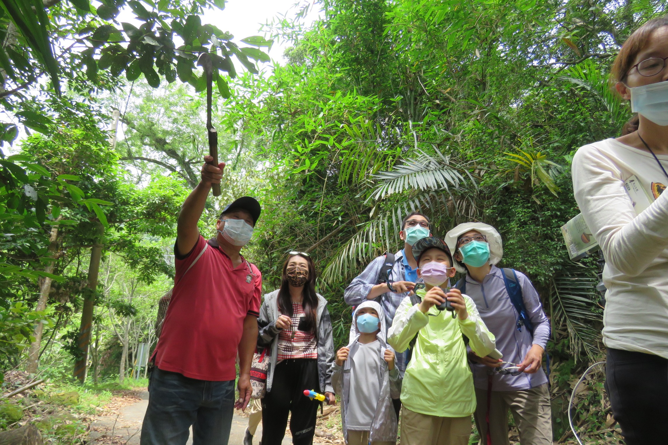 觸口自然教育中心5月7日辦理「悠遊草山生態行」活動,共有15位親子大小朋友參加。大家先在隙頂國小草山分校認識臺灣爺蟬生態瞭解無痕山林,學習用不傷害環境的方式走入自然中。接著由草山社區發展協會帶領大家漫步爺蟬林,實際觀察找尋爺蟬的身影。活動除了尋找爺蟬外,還進行環境教育活動「動物在哪裡」,藉由遊戲的方式認識生物留下的活動痕跡,讓大家自行探索發現可能出沒的動物。活動當天共發現5隻爺蟬的蹤跡,小朋友親眼看到爺蟬紛紛驚呼牠的外型驚艷。學員心得分享「原本以為爺蟬身上的藍綠色在森林裡會很突兀,結果實際用望遠鏡找還真不容易找到」、「看不出來爺蟬小小一隻叫聲好大聲」,表達對爺蟬的驚奇。