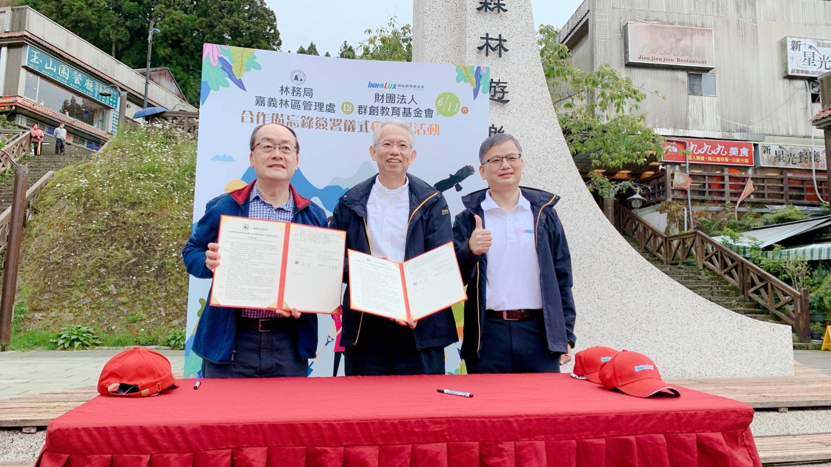 群創教育基金會董事長王志超表示,該基金會於2008年成立,秉持「取之於社會,用之於社會」的情懷,以「環境教育」及「文化藝術」兩大核心理念與各界互動。本次在群創集團眾多員工的見證下,與嘉義林管處簽署合作備忘錄,期待透過不同形式活動結合政府機關、企業與員工的力量,一同推廣環境保護觀念,也希望發揮企業影響力,以綠色消費鼓勵環境友善產業發展,讓人人把環境永續當成自身的責任,將臺灣美好生態留給下一代。