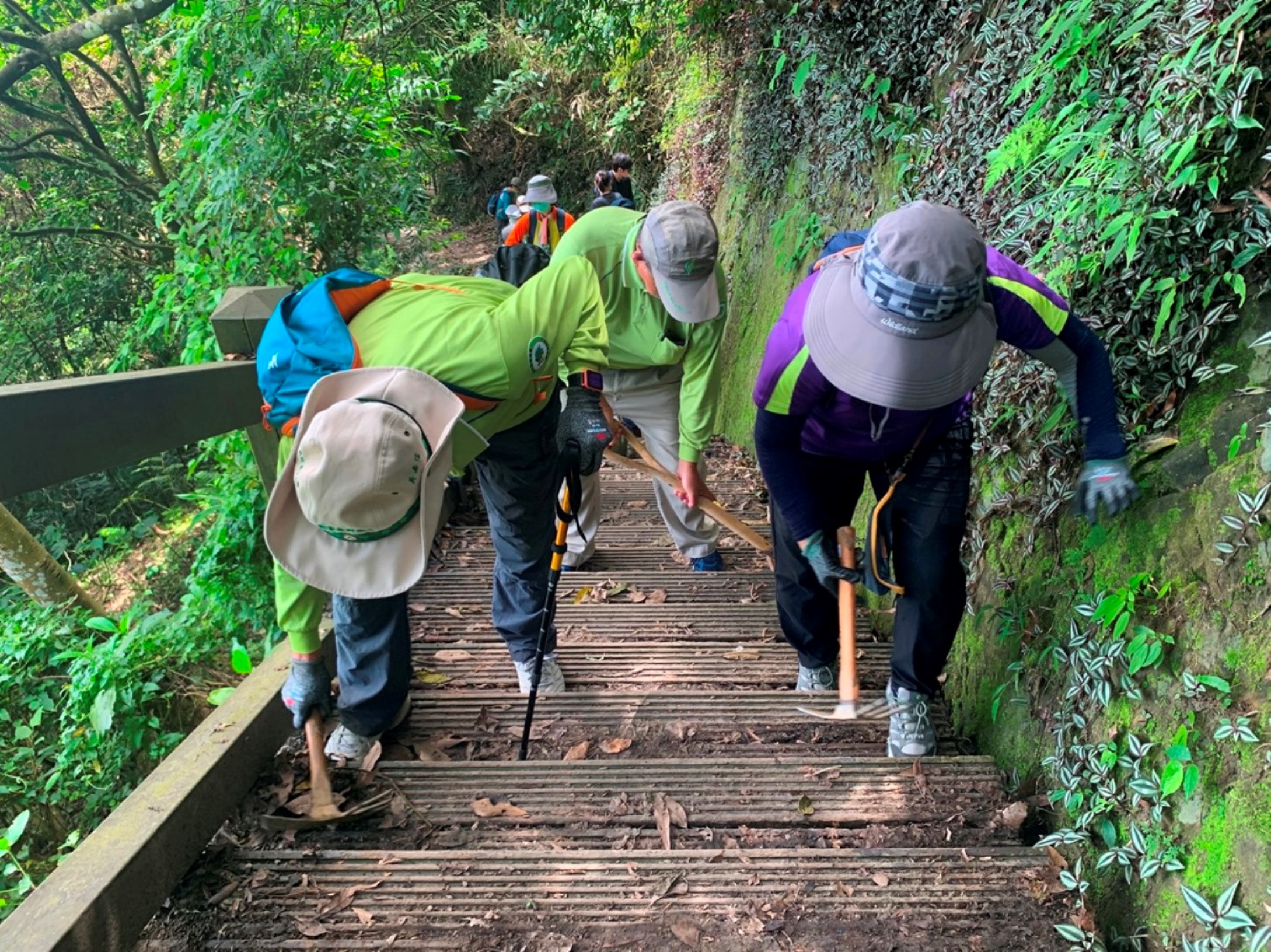 林務局嘉義林區管理處於今年6月17日辦理崁頭山步道環境維護活動,邀集國家森林志工進行步道環境清潔、橫向排水溝清理、簡易步道維護等作業,志工們同心協力共同維護步道環境,齊心為民眾提升步道舒適度與安全性,打造舒適的步道環境。