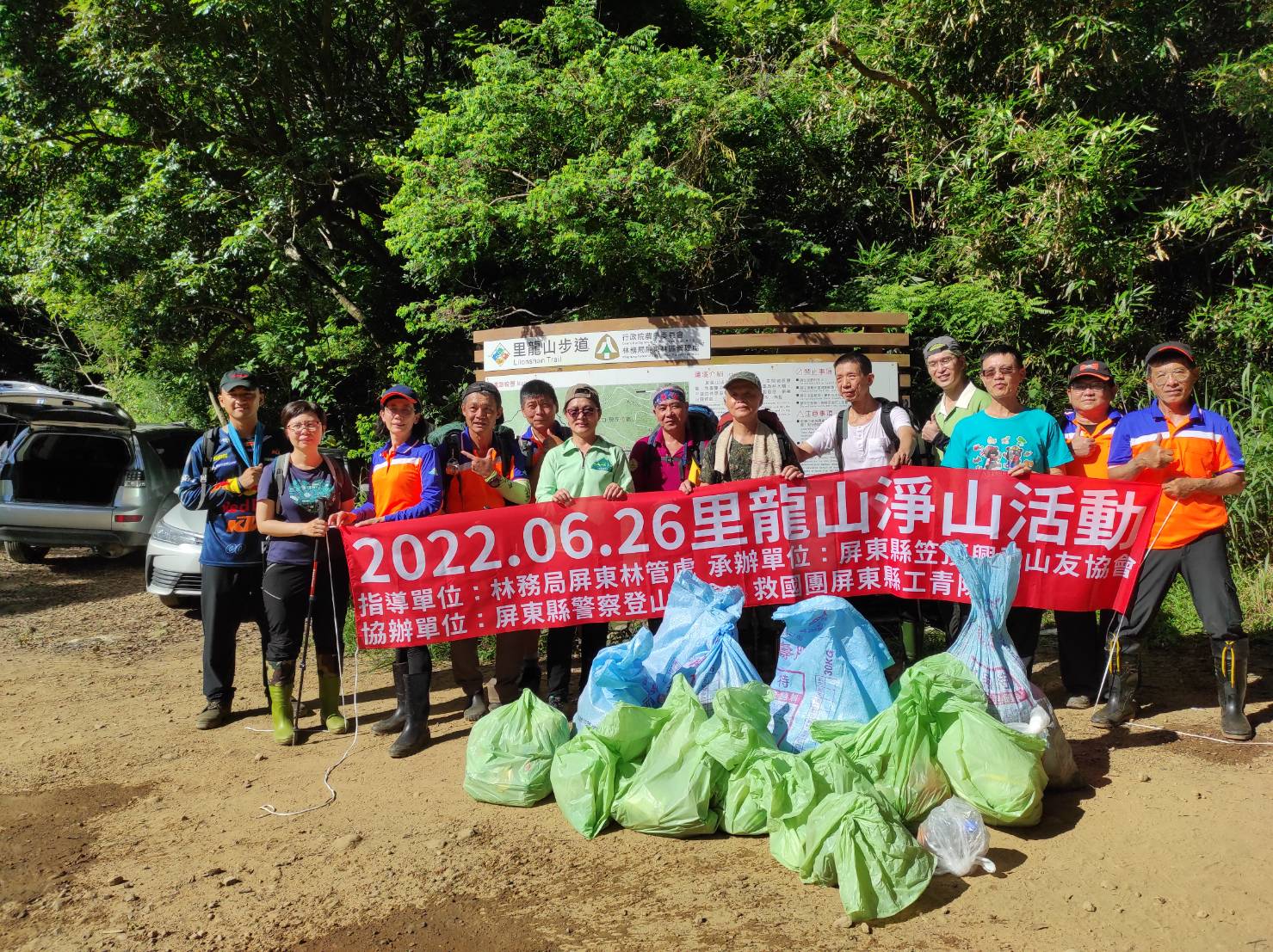 屏東縣笠頂興平山友協會長期認養屏東林區管理處轄管里龍山與尾寮山步道,今(26)日發動號召超過250位協會成員參與里龍山步道的淨山暨無痕山林宣導活動,為愛護山林環境付出實際行動! 里龍山位在屏東縣獅子鄉與牡丹鄉的交界,為恆春半島最高峰及恆春半島唯一海拔超過1千公尺的山,也是台灣小百岳之一,里龍山步道全長約4.07公里,步道前段平緩易行,中、後段則具挑戰性,因此里龍山為南部山友攀登百岳前的訓練場所之一,一般往返約需8小時。 里龍山步道為熱門的大眾化登山步道之一,登山的民眾雖然很多,但沿途發現的垃圾卻不多,大概只有清理出10公斤,由此可知民眾已漸漸的了解到無痕山林與愛護山林的重要性,透過此次活動讓參與的民眾身體力行及起帶頭作用,進而影響其他民眾。里龍山步道曾於109年發生2件山域事故,分別為1民眾因不明原因於近三角點處心肌梗塞死亡,另1民眾因身體疾病協助後送就醫,因此「無痕山林」的真正意涵,不僅是將垃圾帶下山而已,上山前充分的規劃與準備更為重要,例如體能及裝備上(包含行動糧、個人簡便藥包、雨衣等)的充足準備、研究路況、了解天氣等,以加強登山安全的知識與技能的提升,因此落實「無痕山林」理念,除可降低山域活動風險機率,亦可愛護我們的山林環境及強健我們的體魄,可謂一舉多得。 屏東林區管理處歡迎社會大眾一起走向陽光、走向山林,及要落實「無痕山林」理念,以達安全、教育、環保及休閒健身等目的。