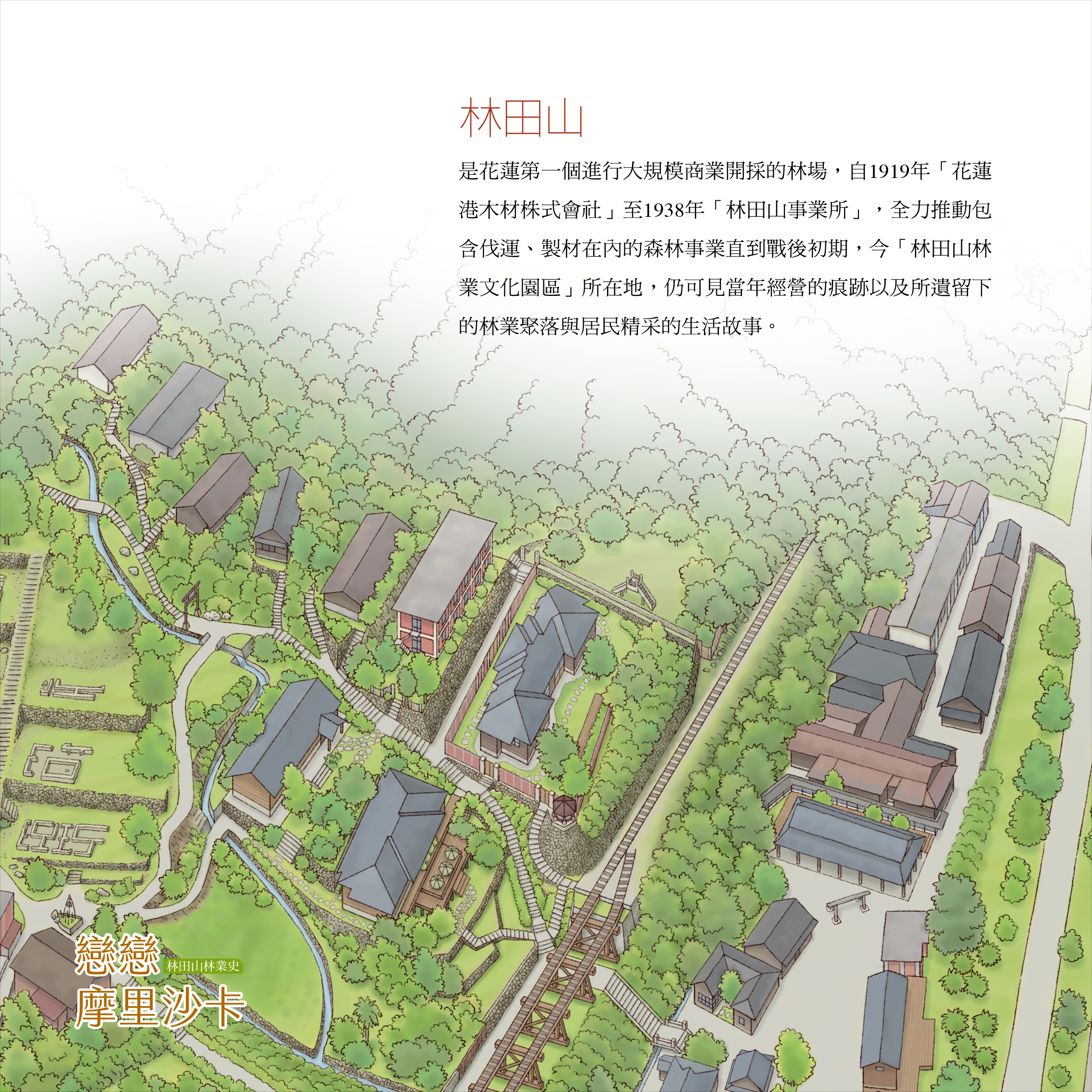 歷經7年等待,東臺灣花蓮的林業史三部曲最終章終於完成!嵐山工作站、哈崙工作站及林田山林場是東臺灣林業發展重要場域,為完整保留東臺灣林業史紀錄,花蓮林區管理處著手針對轄下木瓜山、太魯閣、林田山等花蓮三大林場執行調查研究,2016年發行首部曲《1922無盡藏的大發現:哈崙百年林業史》一書,深受好評,民眾敲碗期待、三部曲的最後一塊拼圖也終於完成。7月23日(六)下午3時在誠品生活花蓮遠百店舉辦新書《戀戀摩里沙卡——林田山林業史》、紀錄片《戀戀林田山》發表會,誠摯歡迎林業前輩、後進及關心臺灣林業發展的民眾蒞臨,一同翻開書頁,聆賞紀錄片,走進戀想不忘的林田山。 西元1895年起,日本殖民政府以臺灣山林未曾經歷的科學調查、砍伐與運輸,開啟了臺灣的近代林業史。相較於阿里山、八仙山、太平山等馳名日治時期的三大林場,東臺灣林業開發稍晚,但比起採伐中的三大林場,花蓮林木資源豐裕毫不遜色,從南到北「林田山林場(林田山/萬榮工作站)」、「木瓜山林場(哈崙工作站)」、「太魯閣林場(嵐山工作站)」號稱花蓮三大林場,實際上亦是東臺灣三大林場,在阿里山、八仙山林場後,發揮“無盡藏”本色,為戰後臺灣的經濟命脈挹注豐碩成果。 許多林場故事隨著「林田山人」傳承和聚落保存,被珍藏在「林田山林業文化園區」中,儘管山區的生產現場、運輸路線已不復見,但大面積原樣保存、修復的聚落建築群,在林業前輩、子弟、社區協會、林管處和眾多機關單位的支持下,結合在地故事和多元族群特色,正以活歷史、活文化的姿態,成為東臺灣最耀眼的林業文化寶庫。相對於回歸山岳林野多年的「哈崙」和「嵐山」,「林田山」已是親近東部林業史時親民可及的唯一存在,也是林業舊友們能回訪聚首的故鄉。 林管處致力於森林經營與保育,對於轄下的林業史與林業史蹟恪盡保存之職,於2016年、2018年出版《1922無盡藏的大發現——哈崙百年林業史》、《森林.部落.人——太魯閣林業史》、影像集及紀錄片《無盡藏。哈崙時代》、《在森林中。嵐山工作站》,獲得各界好評,國內外獲獎不斷。2019年花蓮林業史三部曲的終章~《戀戀摩里沙卡——林田山林業史》和紀錄片《戀戀林田山》正式啟動,由林管處、國立東華大學王鴻濬教授團隊、道綺全球傳播有限公司集結彼此專業,登山前往林田山林場山區現場探勘、測繪、記錄軌道、索道、房舍等各種史跡現況,同時蒐集文獻、老照片,進行深度人物訪談,梳理林場的沿革始末,試圖從實際參與者的角度建立林場昔日樣貌,從文獻和數據之外發掘「有溫度」的林田山故事。 從上山踏查到結集成書,前後耗時3年,終於將花蓮百年林業史最後一塊拼圖完整拼上,書籍即將公開出版,紀錄片《戀戀林田山》首映前亦傳回好消息,榮獲「2021年新加坡世界電影節最佳紀錄片」、「2021年美國最佳電影短片競賽 最佳紀錄片獎」和「2022年美國影響力影展最佳紀錄片獎」,這是臺灣土地故事的榮耀,林田山林業史上永恆的驕傲。 參加發表會可獲得「洄瀾林業史——紀錄片三碟收藏版一套」,新書限量8折優惠。因應疫情影響,請遵照中央流行疫情指揮中心相關規定落實防疫措施,入場前進行體溫量測、全程配戴口罩、場內禁止飲食,維持社交安全距離;為免群聚,活動同步於臉書直播,歡迎上臉書粉絲專頁「花蓮林業三部曲《嵐山、哈崙、林田山》」掌握最新訊息: https://www.facebook.com/HualienForestryHistory