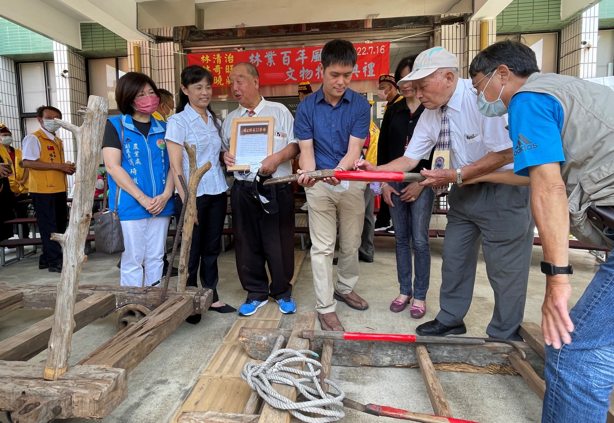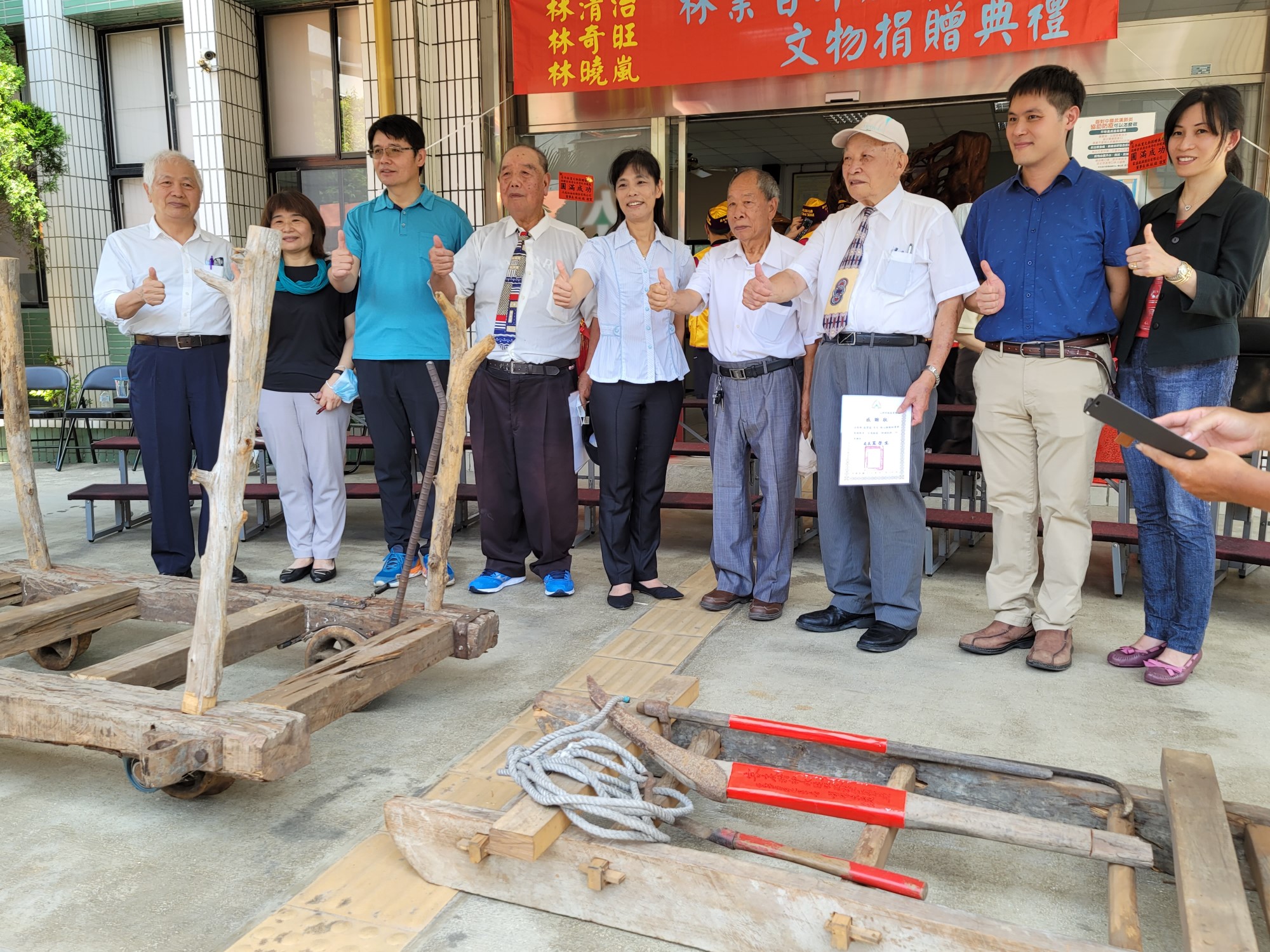 林務局宣告106年為「國產材元年」重啟林業的行動,目前正積極推動國產材的永續及全方位運用,並啟動林業人才技術增能的培訓。與林務局新竹林區管理處淵源甚深的林清治先生、黃佳雄先生等人緬懷早期輕便車百年風華之際,將收藏的木馬、輕便車重新整理後,在今(16)日贈與林務局新竹林區管理處供作林業展示及教育推廣使用,讓擁有昔日林業歷史風華的文物傳承給新一代林業人,與林務局永續林業及提升國產材的政策接軌。 木馬、輕便車是台灣早期木材運輸的載具之一。木馬狀如雪橇,由木馬工人在前搭背帶及利用地面每隔2尺許橫鋪一枕木的軌道而行,以控制木馬前進方向,後方有時還要隨一人推行相助。輕便車則像一張翻倒過來的木桌加上四個輪子,在狹窄的輕便軌道上以人力推送,也稱為「台車」,用途從軍事、貨運到客運都有,其中以「糖鐵」最多,又往日如烏來這樣的山區,主要需求則多是運木材、煤礦等資源下山。 本次致贈木馬、輕便車等林業文物,由新竹林區管理處夏處長榮生代表接受,地方耆老高齡90多歲彭學堯先生於文物上題字,另林先生亦利用台灣杉製作六彩花瓶予臺大實驗林管理處等單位,致贈儀式簡單隆重,在新竹縣楊縣長文科、臺大實驗林管理處副處長衛強、國際獅子會暨竹東分會獅友及林清治先生的家人林奇旺博士等人觀禮見證下,活動圓滿結束。