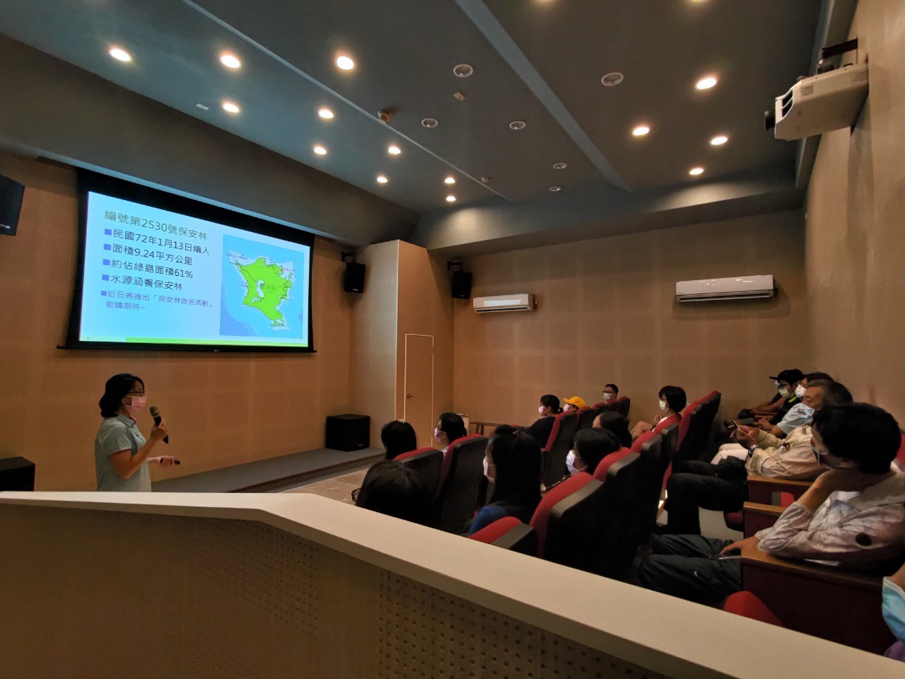 森林防火座談會主要介紹綠島第2530號保安林的森林功能,除涵養水源、水土保持功能外,還提供許多保育類動物,如臺灣狐蝠、椰子蟹等棲息。但目前在全球氣候變遷與極端氣候影像,全球各地發生多起的森林火災,108、109年間綠島發生的兩起森林火災,也因交通、地形及淡水資源缺乏等因素,滅火難度較高,然在空勤總隊、海巡署、綠島消防分隊、綠島鄉公所及東部海岸國家風景區管理處等單位多方協力下才能於最快時間內撲滅大火,減少火災損害。