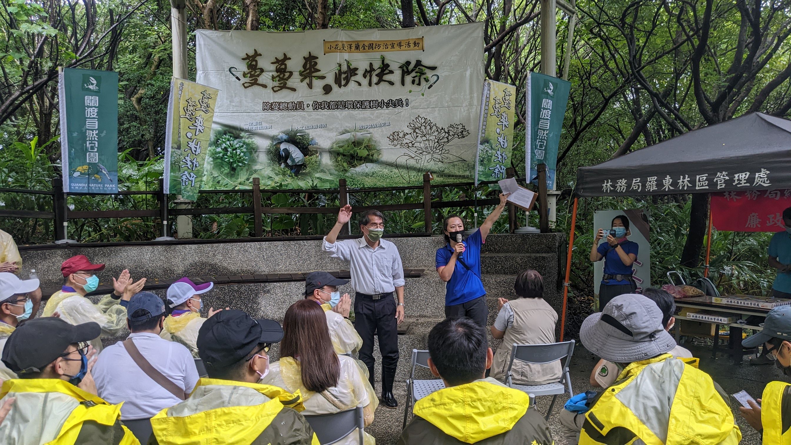響應由羅東林區管理處與關渡自然公園管理處共同舉辦的「蔓蔓來快快除-小花蔓澤蘭全國防治日宣導活動」,今日在關渡自然公園集合了90位熱心夥伴,協力為我們台北的心濕地來除「綠癌」,還給候鳥們清新的家園。 本次活動由羅東林區管理處處長蕭崇仁及關渡自然公園管理處處長何麗萍的帶領下,結合兆豐票券、紅樹林志工隊、關渡自然公園志工隊等熱心的企業夥伴, 最終完成清除260公斤小花蔓澤蘭的豐碩成果。 每年10月開始到隔年2月是小花蔓澤蘭的開花結果期,一旦產生大量種子將會隨風飄散,將使蔓延情形迅速惡化,所以開花前是防治小花蔓澤蘭的黃金時期。 平日間如民眾發現小花蔓澤蘭的蹤跡時,移除最好的方法就是連根拔除後以塑膠袋包好,避免其藉由旺盛的無性繁殖能力重新生根;並可結合社區群眾的力量發起拔除活動,於收購時間內交給各收購點工作人員,共同打擊外來入侵植物勢力。 羅東林區管理處於台北、礁溪、冬山、南澳工作站全年常設收購點,作業時間為每月1號及15號上午9點至12點(遇假日順延至下一工作日),小花蔓澤蘭植體將以每公斤新台幣5元價格收購,歡迎民眾一起維護生活周遭的生態環境,讓台灣生態更美好!