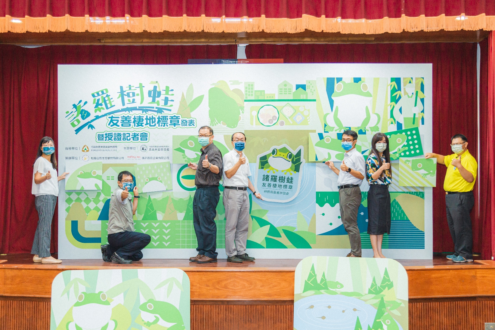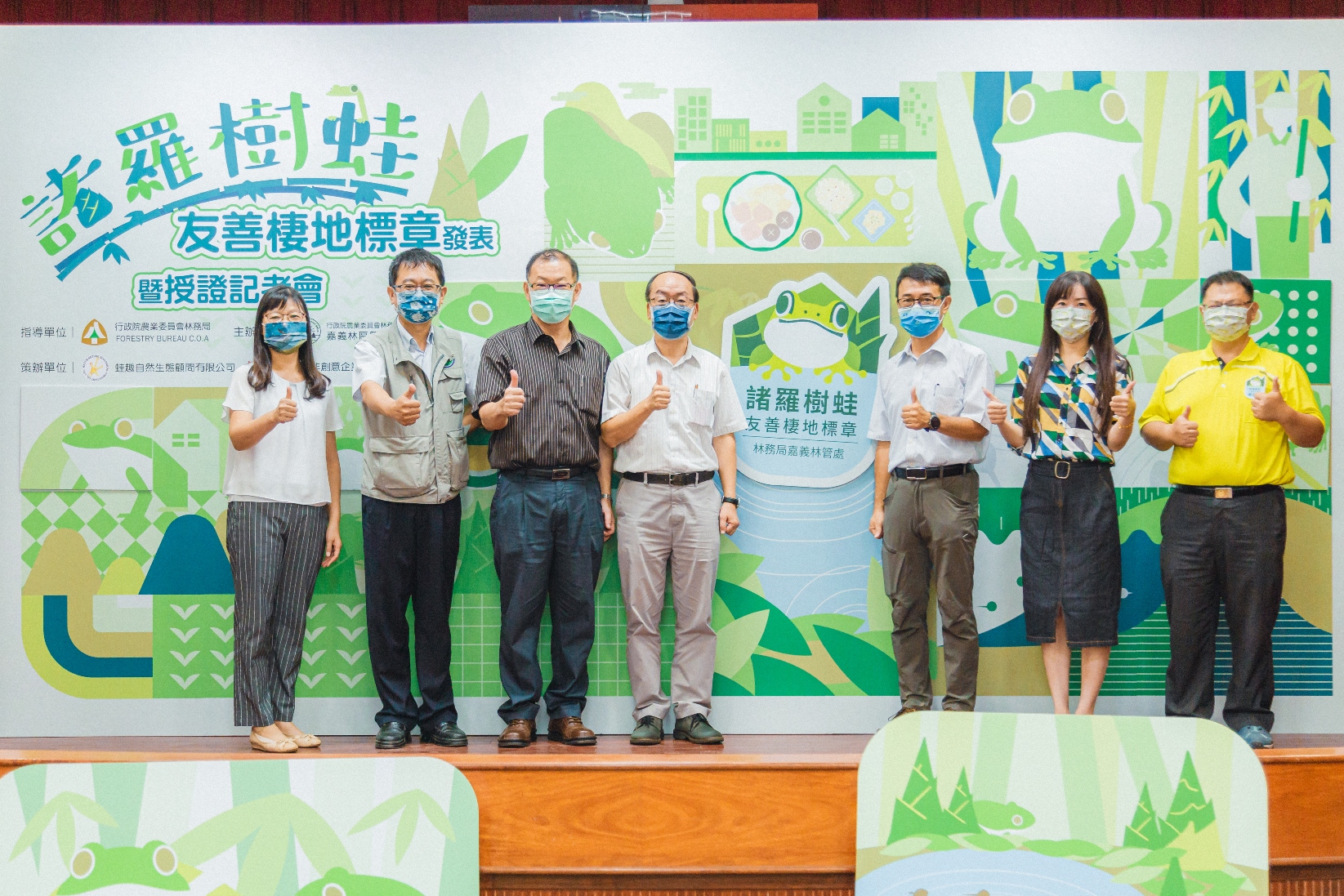 喝一碗清甜的竹筍湯,也能順道保護樹蛙?林務局嘉義林區管理處攜手嘉義地區農友推出「諸羅樹蛙友善棲地管理標章」,於今(6)日標章發表暨授證記者會正式公開,由林務局保育組組長羅尤娟頒發標章使用證書給第一線貢獻心力守護田區裡諸羅樹蛙的12位農友夥伴。羅尤娟表示,希望消費者認明標章,支持生態友善竹筍,讓在地的農民能持續以諸羅樹蛙保育的角度管理竹林,種植安全好吃又有理念的竹筍,使諸羅樹蛙繼續在竹林間鳴唱下去。共同關注諸羅樹蛙保育的各單位及NGO夥伴也來到現場相挺,包含臺南區農業改良場、水利署第五河川局、特有生物研究保育中心、南投林區管理處、嘉義縣農會、大林鎮農會、荒野保護協會等,齊聚見證標章推動的心路歷程。