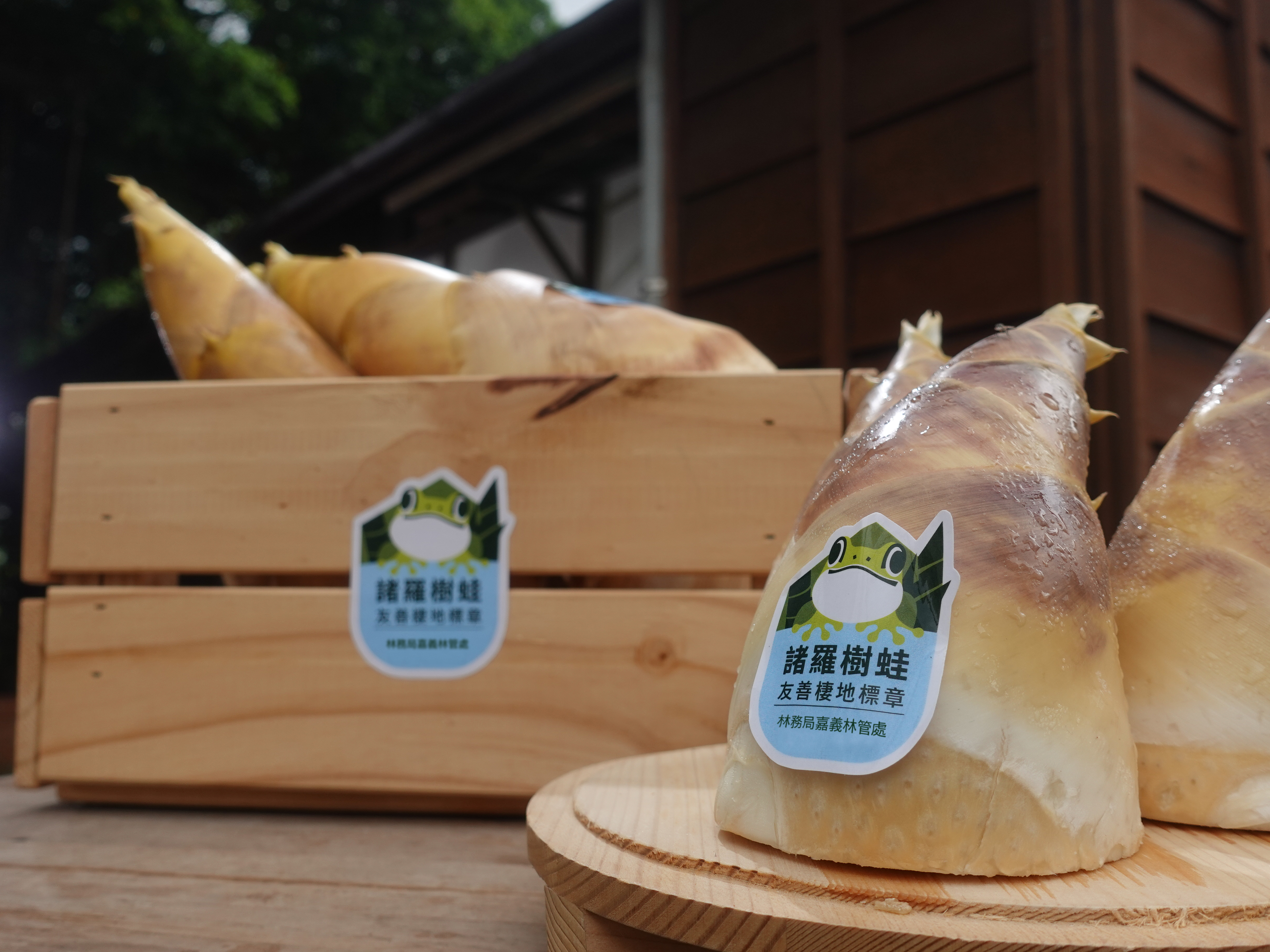 而一般民眾雖然無法親身照顧諸羅樹蛙,卻可以透過消費,把「諸羅樹蛙標章」認證的竹筍帶回家享用,以「購買」這最簡單直接的行動,分攤農友為保育多付出的成本、支持農友的熱情與理念。當愈來愈多人選擇購買諸羅樹蛙標章的美味鮮筍,就會有更多農友願意把竹林打造成諸羅樹蛙的家,讓這群特有的綠色小精靈可以在嘉義這片土地上安身立命,繼續在竹林裡高唱。