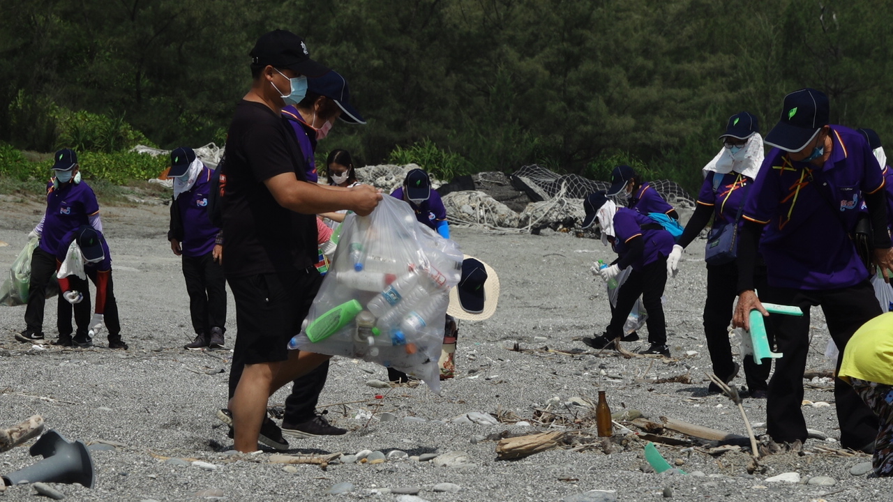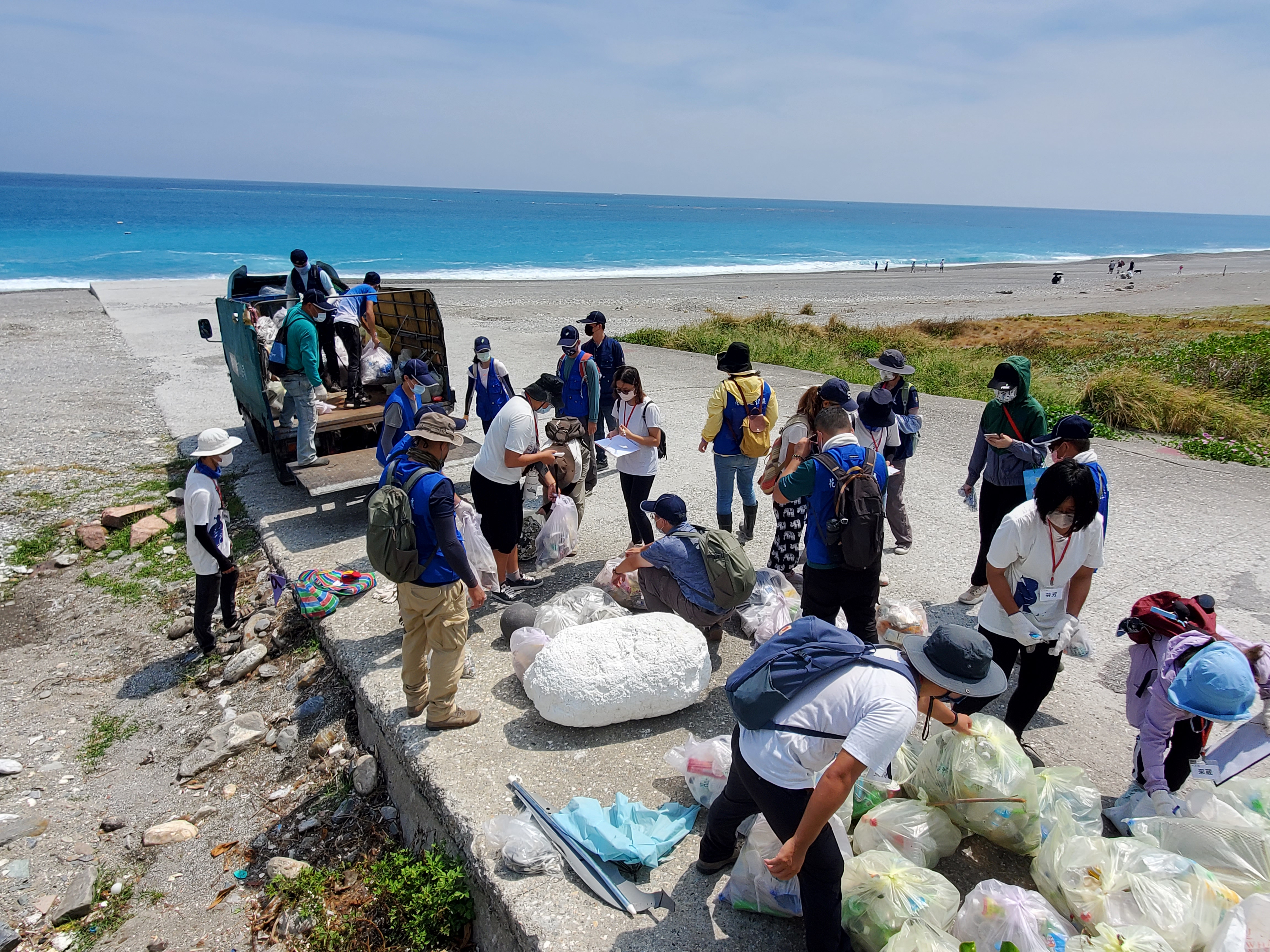 為落實並響應向海致敬精神,花蓮林區管理處今(17)日與國家森林志工、臺東林區管理處、海洋保育署、海巡署東部分署、內政部警政署保安警察第七總隊第九大隊、新城鄉康樂社區發展協會及朝金定置漁場等跨公私部門合作,在編號第2618號防風保安林(七星潭區域)辦理「向海致敬-實際行動守護海洋(東區)」活動,共150人共同淨灘,守護潔淨的海岸環境與海洋資源,向海廢say no! 林管處表示,每年9月第3個周六為國際淨灘日,國家森林志工在全台灣北、中、南、東區同時進行淨灘活動、花蓮縣內各機關也在花蓮海岸沿線辦理多場淨灘活動。林管處自109年迄今已執行向海致敬計畫3年,共計清理出海岸保安林內遭濫棄的廢棄物多達443公噸,數量十分驚人。 這次活動清理海岸線長約1公里、其中保安林寬約300公尺,一上午共清出垃圾重達250公斤,林管處以國際淨灘行動紀錄表(ICC紀錄表)將海洋廢棄物分類紀錄與秤重,其中一般垃圾 115.55 公斤、可資源回收 134.69 公斤,統計也發現垃圾種類最多為菸蒂721個、其次為保特瓶 519個、塑膠瓶蓋 485個,家庭廢棄物為最大宗,顯見民眾公德心仍有待加強。林管處期待透過淨灘傳達環保觀念和習慣,也象徵守護海洋的決心,呼籲大眾應力行垃圾減量,切勿隨地濫棄垃圾,珍惜土地,尊重大自然,才能永續共享乾淨優質的海岸環境。