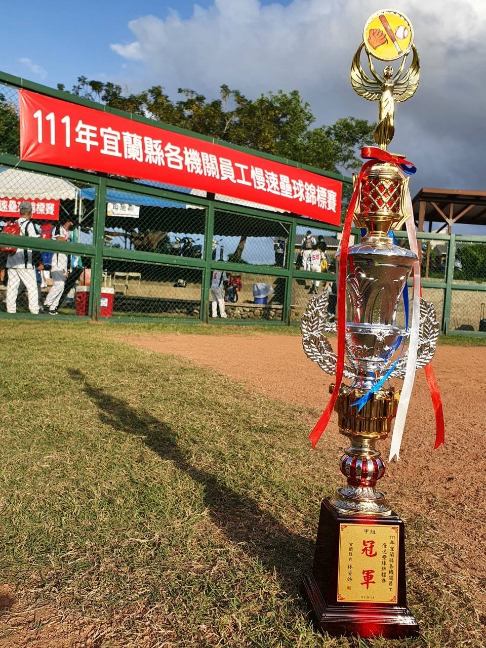 林務局羅東林區管理處所屬員工社團-「羅林慢壘社」參加111年宜蘭縣各機關員工慢速壘球錦標賽,歷經鏖戰齊心團結勇奪甲組冠軍,可喜可賀。 本次比賽由宜蘭縣政府主辦,於本(111)年9月19日至21日在羅東鎮立慢速壘球場舉行,本屆賽事分為甲、乙組,羅東林區管理處「羅林慢壘社」參加甲組,歷經三天高張力的賽事,參加比賽的同仁迎戰全縣各機關甲組強隊,終於9月21日下午進入冠亞軍爭奪賽,在靈活的團隊默契及奮戰不懈的精神下,終場以3勝1負拿下甲組「冠軍」,比賽結束後即舉行頒獎典禮,由羅東鎮長吳秋齡親自頒發冠軍獎座,羅林慢壘社由教練高勇偉代表領獎。 羅東林區管理處鼓勵同仁籌組社團,利用公餘時間參與社團活動,從事正當休閒活動,聯絡情誼。羅林慢壘社已成軍二十年,歷年比賽均佳績不斷,此次比賽過程中雖有四位同仁陸續受傷,但並未輕言放棄且持續和大家共同奮戰到最後一刻,這要感謝各級長官的肯定與支持,才能為比賽奠下了成功的基礎,實乃最佳團隊表現。