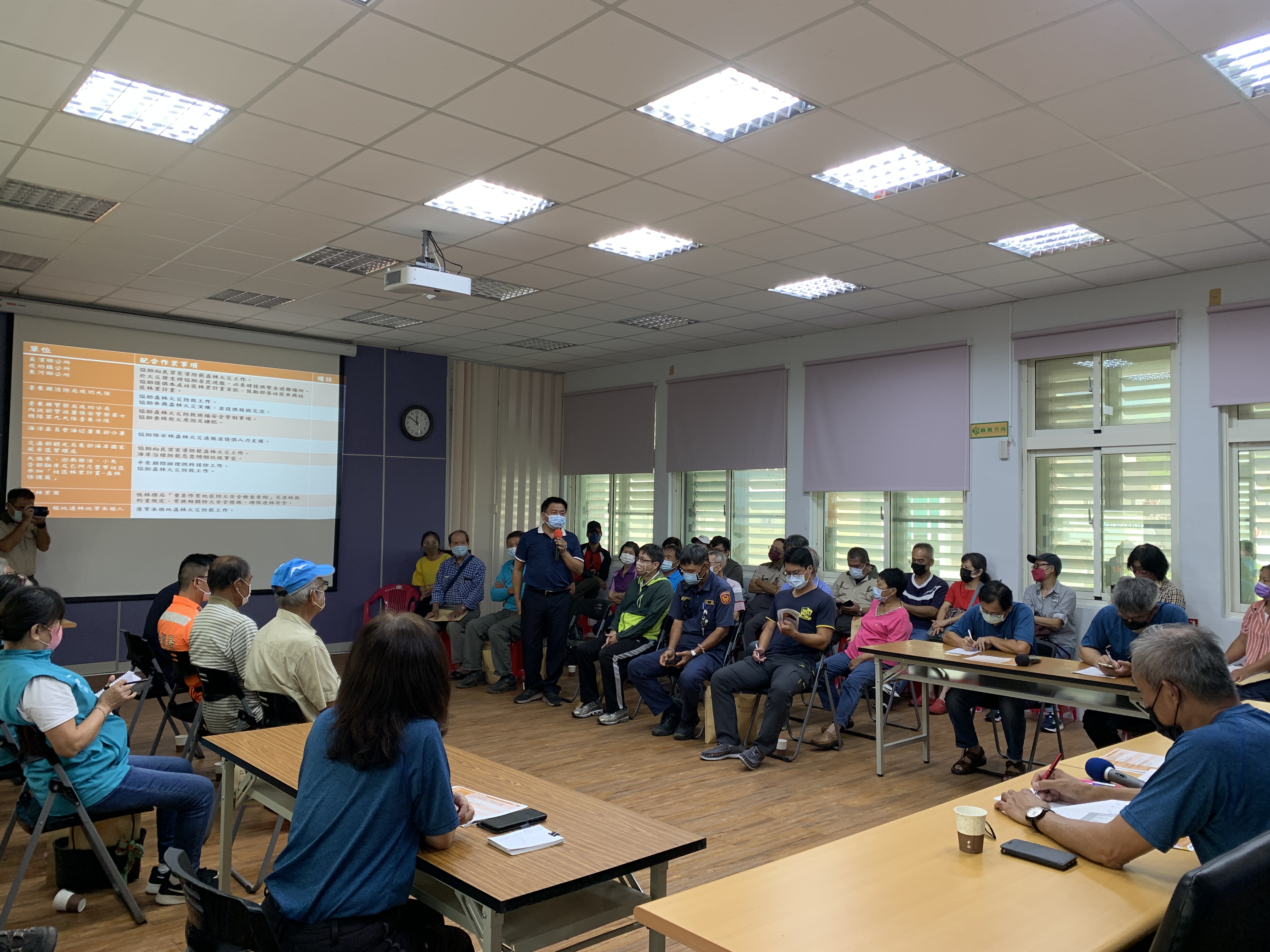 臺東林管處成功工作站於(本)111年9月28日於辦公室召開本年度「森林防火座談會」,參加單位有臺東縣消防局成功消防大隊、臺東縣警察局成功分局、保安警察第七總隊第九大隊台東分隊、成功鎮公所及海洋委員會海巡署東部分署等機關單位參加外,並邀請成功鎮、東河鄉及長濱鄉轄內礦區業主、造林業商、承租人及興昌、三民、都歷及大俱來等(部落)社區共計約60人踴躍參加,為維護森林資源共同盡一份心力。
