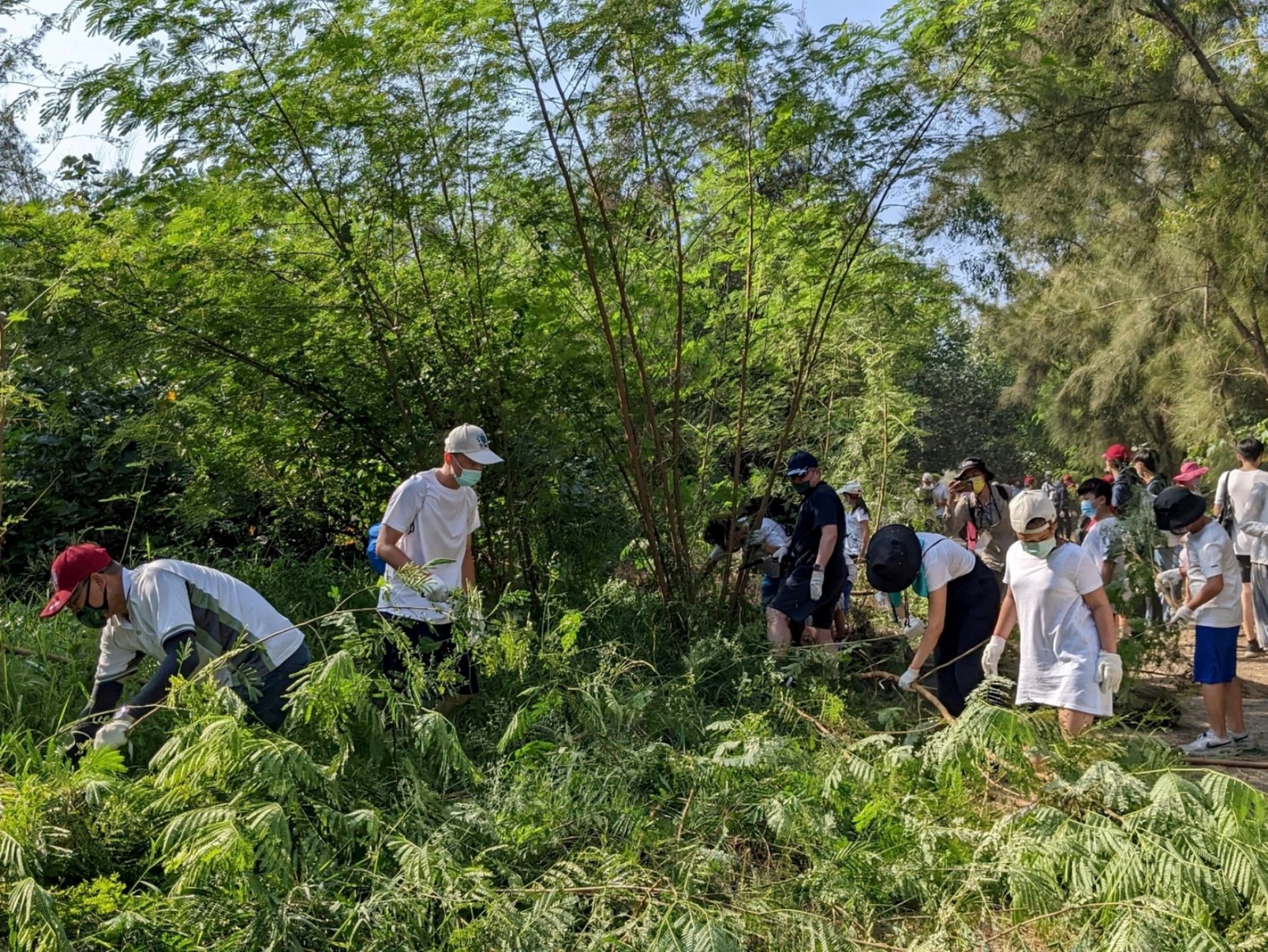 嘉義林管處表示,綠意盎然的漁光保安林除了銀合歡入侵影響原生林木生長外,遭隨意丟棄的垃圾更直接破壞美觀。該處去(110)年即與群創光電、睿生光電合作淨灘護林,今年群豐駿科技加入共襄盛舉,3間企業員工合力移除銀合歡及撿拾廢棄物,恢復保安林健康、整潔,同時實踐企業守護環境的社會責任。