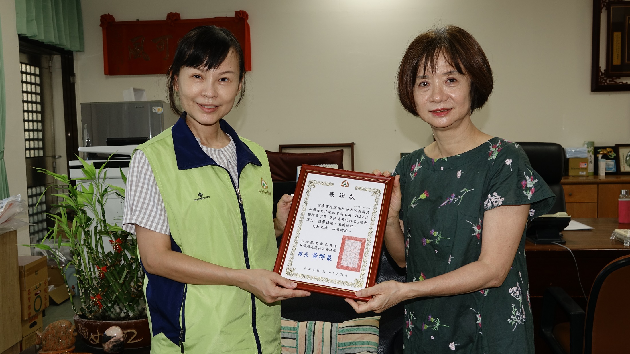 花蓮林區管理處「2022保安林書市集 森林捎來的訊息」活動9月25日已圓滿結束,林管處今(4)日由秘書余蘭君代表,將書市集中「森林裡的小書店」300本展示圖書轉贈在地明義、中原、銅門、銅蘭、文蘭等5所小學,延伸保安林書市集的公益價值及延續書本無限的生命。 林管處指出,保安林書市集呈現東台灣最大、最具特色的書市集,以「五感」接收森林捎來的訊息為意象,融入無痕山林概念展開與森林的對話,呈現「生物多樣性主流化」、「保安林在地經營」、「森林惠益共享」等主題,活動核心以閱讀森林的身世為主題,展示國內外出版300本生態解說、自然圖鑑、森林系繪本及適合親子閱讀等各類圖書,成為小朋友最愛駐足、閱讀的區域。 林管處表示,保安林書市集活動後將所有圖書贈予在地國小,其中也包括該處出版的「媽媽的苧麻線球」與「足跡鏈結尋寶少年」二本書,希望小朋友從閱讀中瞭解原住民部落的傳統智慧及永續價值,從部落阿嬤種植苧麻、採收、刮絲、揉線到織布的生活日常並找到傳統技藝、親自體驗閱讀的樂趣、感受自然與森林捎來的訊息,進而喜歡閱讀、愛上閱讀,從中學習書本知識及豐富生活體驗,為愛護森林與環境扎根,是致贈圖書給在地國小的最重要目的。
