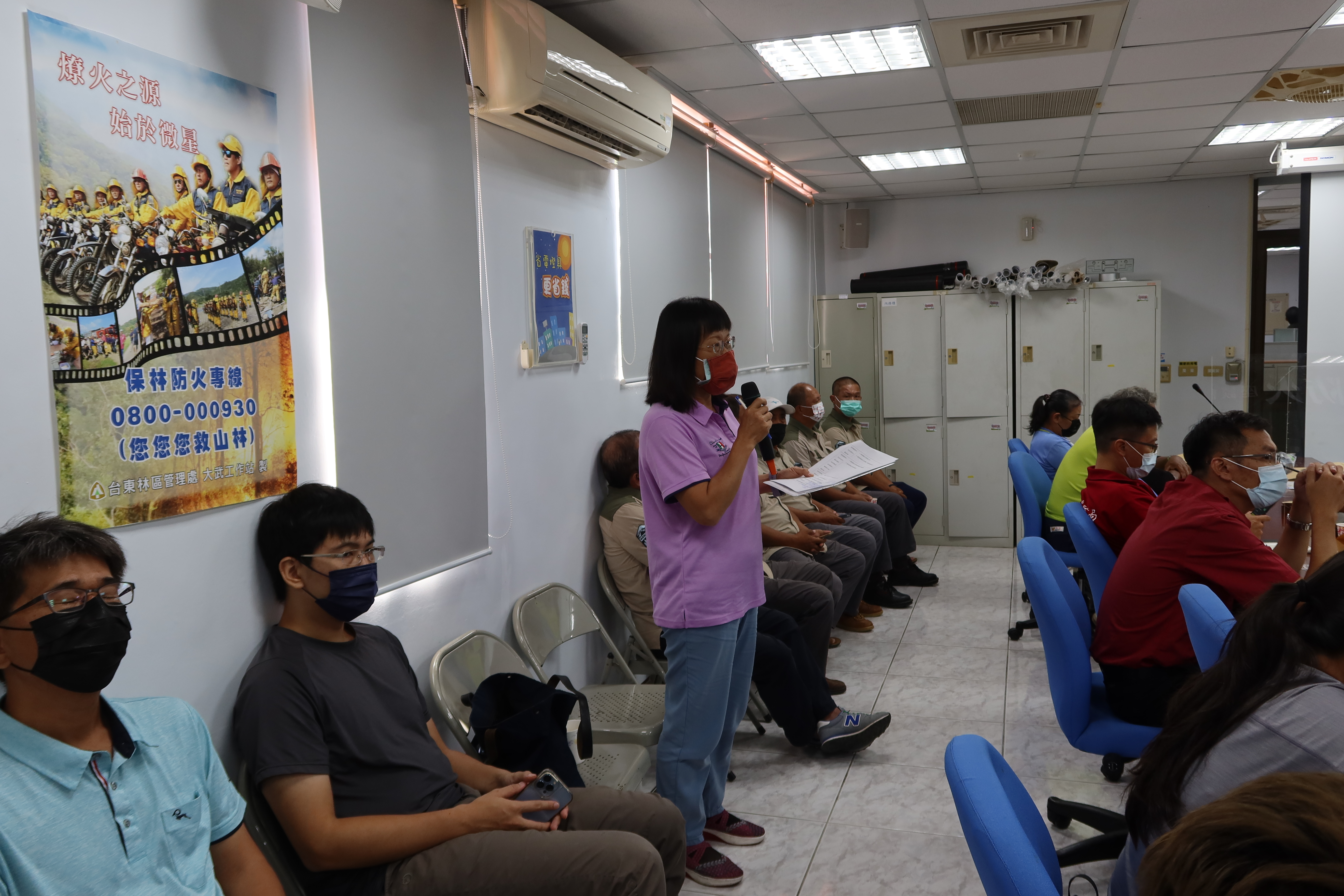 臺東林管處大武工作站於(本)111年10月6日於召開本年度「森林防火座談會」,邀集臺東縣消防局大武分隊、達仁分隊、內政部保安警察第七總隊第九大隊臺東分隊、金峰鄉公所、大武鄉公所、達仁鄉公所、交通部公路總局第三區養護工程處大武工務段、楓港工務段、交通部公路總局西部濱海公路南區臨時工程處、中華紙漿股份有限公司臺東廠、臺東縣地區漁會、大武鄉生活美學協會及轄內造林業商等,計約50人參加。
