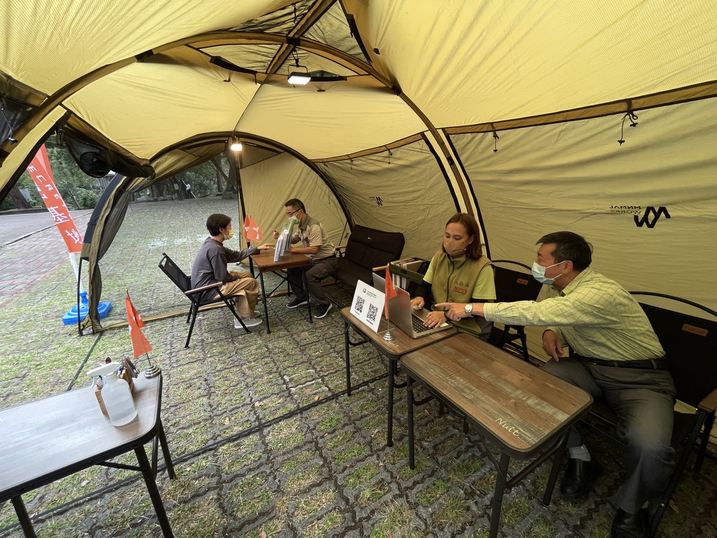 林務局東勢林區管理處為提供民眾多元化的森林生態遊憩體驗,將於111年11月10日起辦理八仙山國家森林遊樂區遊客中心展示更新工作,施作期間為維護遊客安全,遊客中心進行休館,預計於明年農曆年前重新開放。 八仙山國家森林遊樂區鄰近谷關風景區,為中部地區最容易親近的生態旅遊地,為致力因應氣候變遷保護地球生態,朝向淨零碳排、振興竹產業及提升國產材自給率目標,將運用國產木竹材進行遊客中心展示區更新,融合遊樂區內資源特色及人文歷史,規劃友善、永續、生態等展示主題,並改善服務動線,及提供更舒適的空間。 東勢林區管理處表示,為維持遊客中心服務項目之正常運作,特別於遊客中心外搭設臨時服務區,為讓臨時服務區在空間景觀及視覺元素的串連下,貼近自然、融入環境,設計上跳脫以往臨時服務區使用簡易3米頂棚帳、四週罩透明膠布、擺折疊桌椅方式,而是運用「風格露營」手法,搭設大型隧道帳,擺設野營家具,營造滿滿戶外風格,讓臨時服務區與周圍森林自然景觀有著更直接的關係,連工作人員進入臨時服務區後,都忍不住驚嘆:「感覺都來了!」。遊客臨時服務區服務時間比照原遊客中心開館時間,即每日上午八點至下午五點,歡迎民眾多加使用。