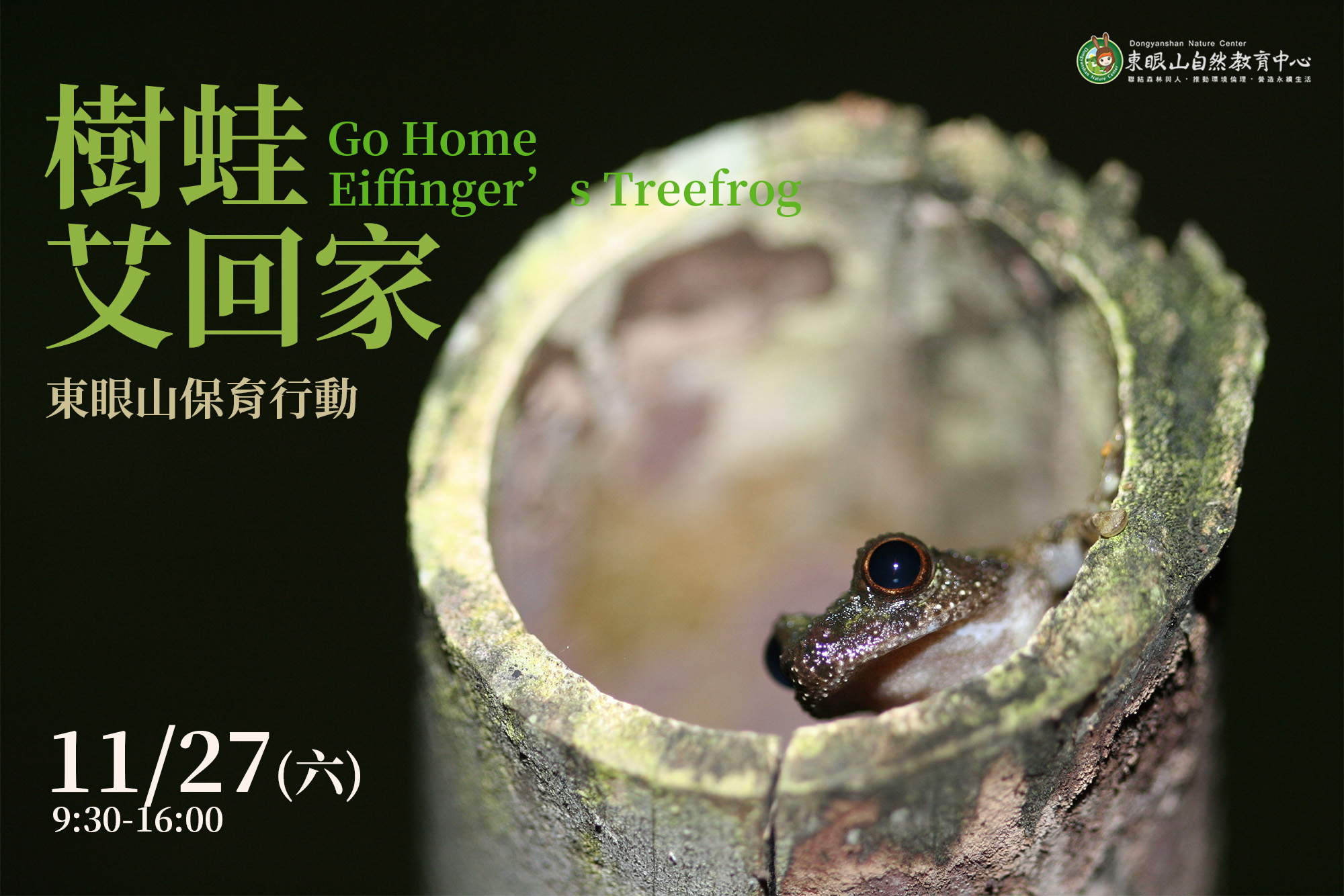 你想不想幫艾氏樹蛙作一個家呢?有聽過蛙媽媽會產卵餵牠的蝌蚪寶寶嗎?在秋雨綿綿的時節,新竹林區管理處東眼山自然教育中心11月27日(日)將帶你在東眼山國家森林遊樂區,製作「艾家竹筒」,為可愛的艾氏樹蛙作一個獨特的家。報名時間自 11 月 17 日上午 9 點開放,有四個時段可供參與,報名費用每份200元,扣除材料成本,餘款全數將捐贈台灣兩棲類動物保育協會,讓「艾心」繼續發光,有興趣民眾可至台灣山林悠遊網(報名連結https://reurl.cc/DX925E)報名。 東眼山國家森林遊樂區有成功的人工樹海,造林初期從支撐苗木的竹桿上,可以發現艾氏樹蛙的蹤跡,原來艾氏樹蛙的母蛙會在積水的竹筒或樹洞產卵,隨後樹蛙爸爸和媽媽會各自分工照顧卵粒,直到化育為小蝌蚪。第一棒由樹蛙爸爸在竹筒口進行護卵行為,維持卵粒的潮濕並避免發霉,等孵化出蝌蚪寶寶後,換樹蛙媽媽接棒,蝌蚪會啄母蛙的尾部,母蛙受刺激會產出未受精的卵給蝌蚪吃,蝌蚪食卵的時候會先將卵的膠質囊咬破後,再吸食卵粒。 但隨著園區內原有竹桿自然崩裂,越來越看不到艾氏樹蛙繁衍。為增加及提供艾氏樹蛙舒服友善的棲地及居住空間,東眼山自然教育中心環教師們將帶領民眾,製作樹蛙們的育巢小窩擺放至適當的環境棲地,民眾能藉由本次的保育行動,了解到樹蛙們的生態棲位與環境保育的重要性。東眼山自然教育中心在活動規劃時,均融入生態學的概念與原則,透過漸進引導的方式讓學員獲得第一手體驗,也讓學員在森林裡的學習更有意義,進而採取行動保護我們的自然生物與生態環境。詳細資訊,請上「東眼山自然教育中心-環境教育/戶外學習」FB 粉絲專頁:https://www.facebook.com/DYSNEC,或有任何疑問,也可撥打 03-3821533#303 洽詢。