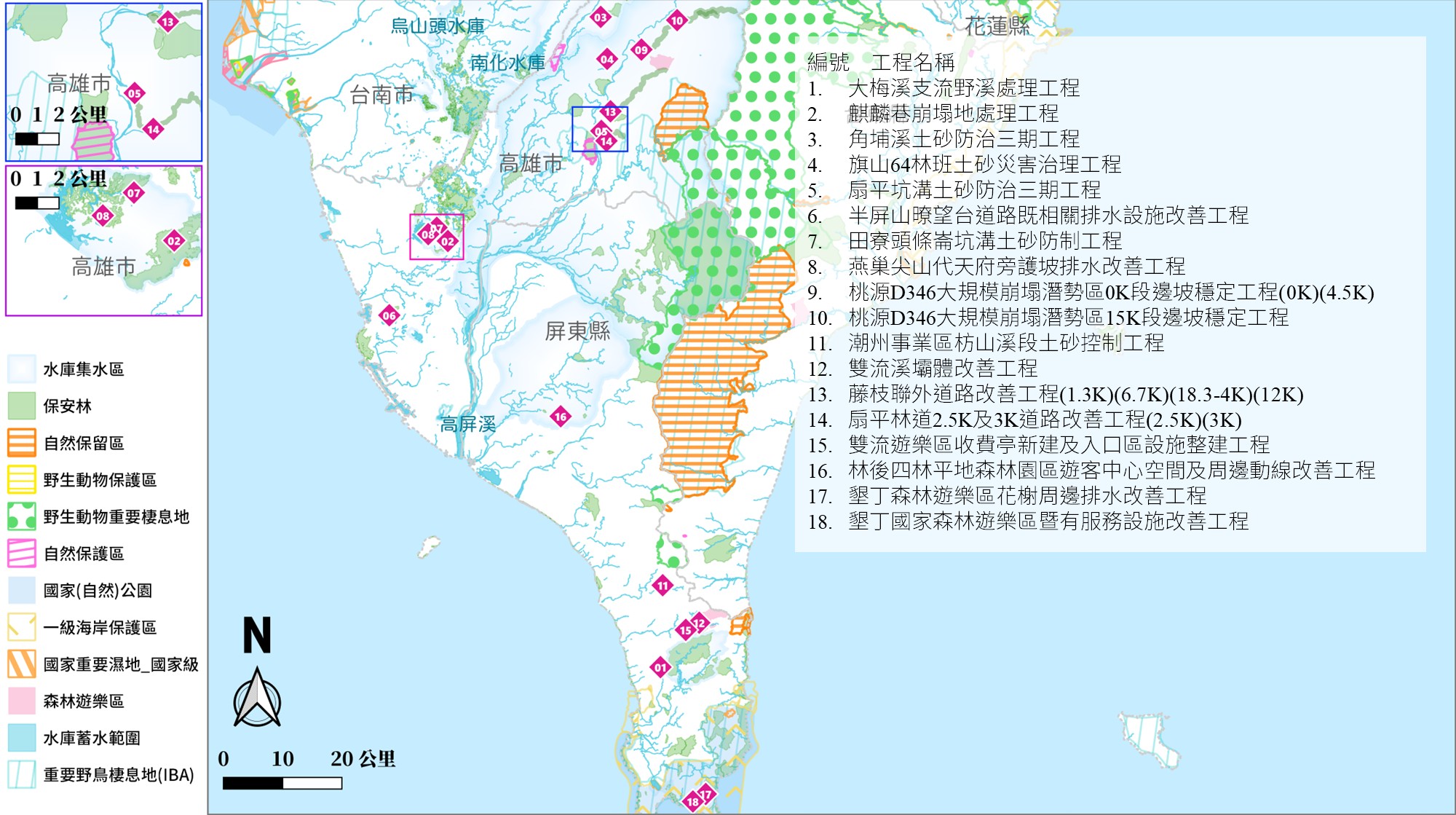 為推動兼顧生態保育的國有林工程理念,屏東林管處9日召開「112年度轄內預定辦理工程公開說明會」,說明推動工程生態檢核架構與分級標準,並針對個案工程的必要性、初步構想及生態議題,導入更多生態友善工法,期能維護保全對象生命財產安全,說明會共有高雄市及屏東縣之NGO成員、及相關機關代表等專家學者,共計32位出席參與。 因應近來氣候異常之短期強降雨造成國有林班地崩塌,對集水區上游造成的土砂災害及設施損壞,屏東林管處明年度預計於轄區內辦理18件整治工程,其中有3件位於森林遊樂區內之設施改善工程。然而,部分工區位於國家公園、綠網關注區域或現場評估後列為高度生態敏感度的良好棲地,為降低後續工程設施及施工期間對生態環境之影響,於工程提報、規劃設計、施工與維護管理等不同階段,委託專業團隊執行包含生態資料蒐集、圖層套疊、評估工程對周遭環境之潛在影響、研擬生態友善措施及適地工法、完工後生態追蹤或監測等各階段工作,落實工程生態友善機制及資訊公開與公民參與等多重目標。 經詳細說明生態友善工程機制辦理流程,及與會人員雙方意見交流,針對工程逐案初步討論結果,包含大梅溪支流工程之社區協會參與及生態旅遊發展、扇平林道2.5k邊坡香澤蘭等外來入侵種移除及當地原生植物替換可行性、半屏山瞭望台步改善之路面工法選擇及適地造林樹種等多面向議題取得一定共識。對於屏東林管處辦理地方說明會資訊公開作法,與會人員皆表正面肯定。 屏東林管處表示,後續除以工程全週期資訊公開外,將依工程區域及屬性再邀集地方人士及環團參與工程設計初勘,謀求共識,並在去年已建立的協作line群組中作更即時的意見交流,導入因地制宜的工程設計,縮減工程與生態環境影響,及可能面臨負面意見或生態關注案等衝突,減少政策面與執行面落差,達成生態與工程雙贏效益。
