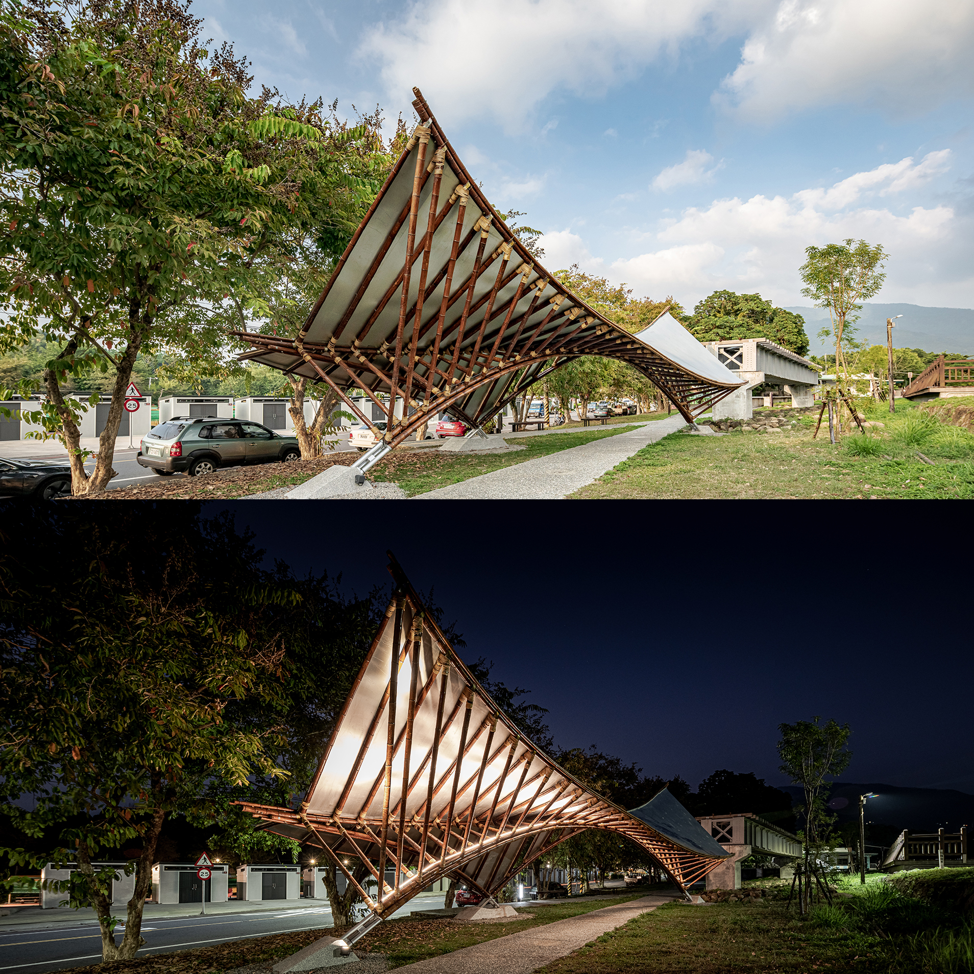為翻轉大眾對於竹材利用的刻板印象,呈現近代竹材應用於建築的新風貌,去年林務局與臺灣竹會攜手合作辦理「2021構竹林鐵新銳展」獲得廣大迴響。今年林務局與臺灣竹會延續去年理念,再次合作辦理「2022構竹林鐵新銳展」,選拔7組建築團隊於林鐵沿線配合地景變化設置7座竹構建築,於今(14)日辦理記者會正式發布,並於記者會中邀集作品設計團隊進行作品模型導覽以及設計理念介紹。 林務局局長林華慶表示,竹子因生長速度快、固碳效率佳,竹材資源已成為現今全球趨勢下亟具發展潛力的綠色資材。109年在行政院政務委員張景森指導下,由林務局統籌執行的「新興竹產業發展綱要計畫」10月初已由行政院拍板核定,「新興竹產業發展計畫(111-114年)」草案亦於行政院審核中,將透過跨部會通力合作,重新串聯竹材從生產、加工、研發應用到銷售的整體產業鏈。在臺灣竹產業力圖創新再出發的時期,透過教育傳承,可使新一代建築、設計從業者認識竹材料及當代技術,進而打造專屬於臺灣的竹構設施與建築,並透過竹構引領民眾,打破竹材傳統應用框架,重新認識竹材韌性與多元利用可行性。 今年構築林鐵新銳展持續邀請結構技師陳冠帆擔任策展人,除了延伸去年探索竹子採用新結構手法的可能,2022年更將焦點放在重新看待竹構中的「接頭」,以及讓竹構與林鐵場域的特性更加結合,以期營造全新的空間體驗。今年總共有7件作品呈現,展覽場地從嘉義車庫園區與竹崎車站,拓展到阿里山森林鐵路沿線的車站。從嘉義車庫園區到海拔127公尺的竹崎車站,一路爬升至1534公尺的十字路車站,途經梨園寮、水社寮車站,搭配著海拔與地景變化,希望能藉由新的竹構造物進而帶動林業鐵路周邊之活化可能,藉此拉開“新”竹構的序幕與竹構城市的藍圖。例如陳華志及陳昀靖設計師的作品「螢河月台」,便是設立在海拔 904 公尺、以螢火蟲聞名的梨園寮車站,其利用連續起伏的拱構築出高低起伏的型態,讓停留的人如同等待螢火蟲出沒時,衍伸感受著微風吹拂與光影溫柔照拂;而鄭博仁及鄭乘騏設計師的作品「無門之門。入山門」,則設立海拔1186公尺,位在篤鼻山、四天王山群峰下的水社寮車站,作品利用兩片交疊的竹結構,如同車站的區位,形成入山門的意象。 本次展出的7件竹構築作品分別陳列於嘉義車庫園區、竹崎車站、梨園寮車站、水社寮車站以及十字路車站,歡迎有興趣的民眾搭乘阿里山林業鐵路列車前來參觀,一同體驗竹材在建築結構上多樣呈現的可能性,細細品味在不同海拔高度情境中竹構作品與環境融合的姿態與氛圍。