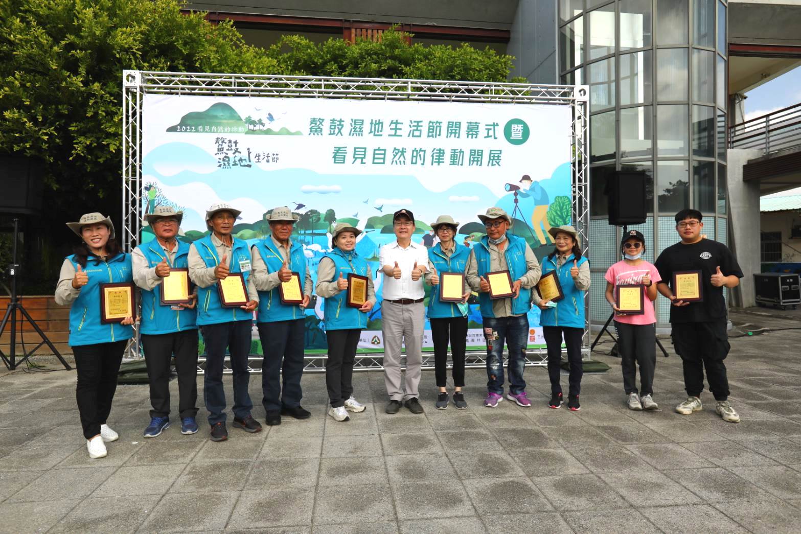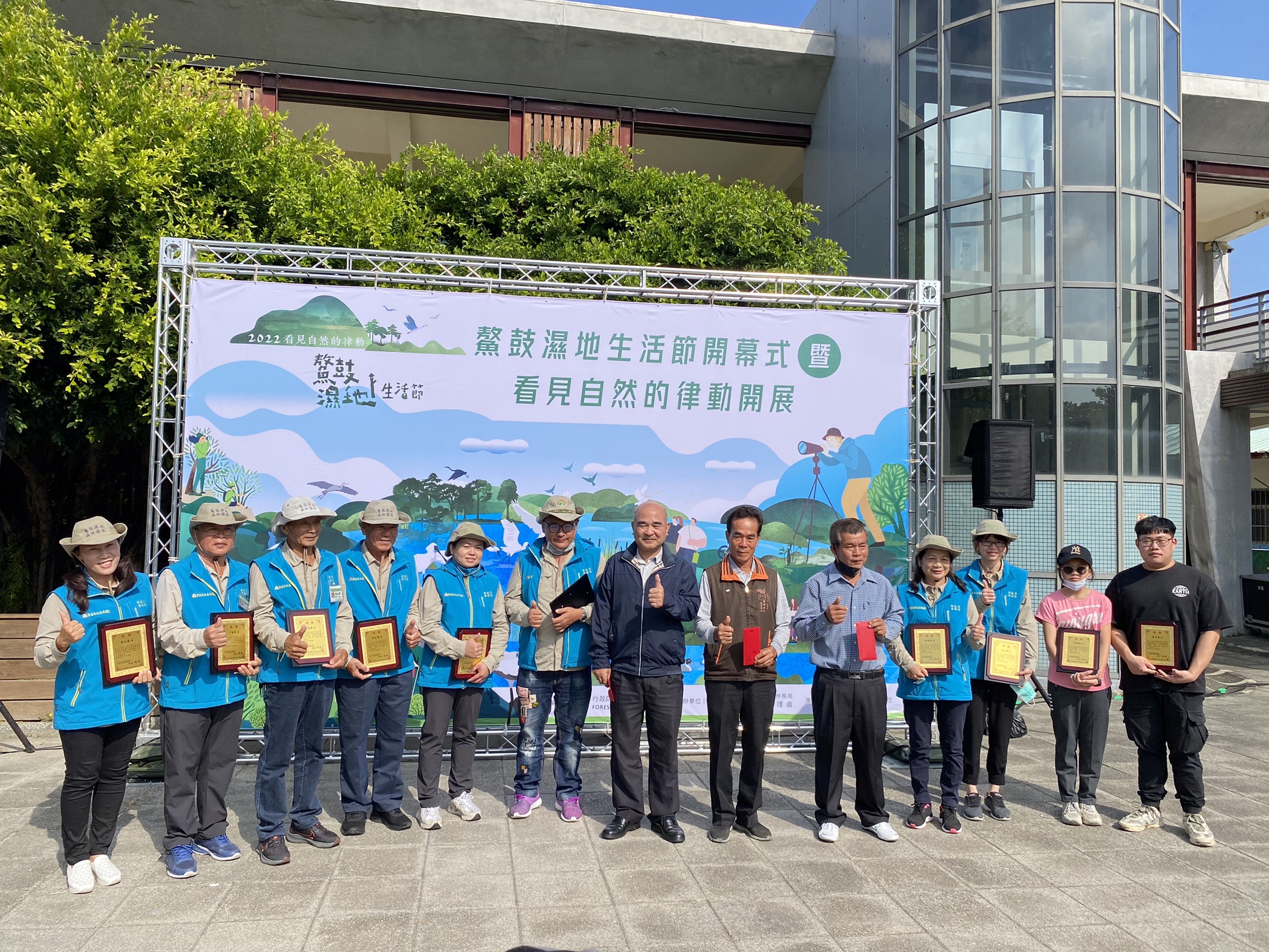 嘉義林管處培訓之鰲鼓濕地解說服務團隊,每年均會密集的進行濕地巡守及環境監測,共同維護鰲鼓濕地資源、景觀及環境,為感謝在地12位解說員10年來的付出,林管處特別頒發感謝狀。解說服務團隊成立之初也同步設立「東石鄉環境保育及社會公益基金」,將所得的解說費用撥出一定金額作為港口、四股及鰲鼓社區發展協會的社區公益基金,造就在地解說員回饋在地社區的美事。