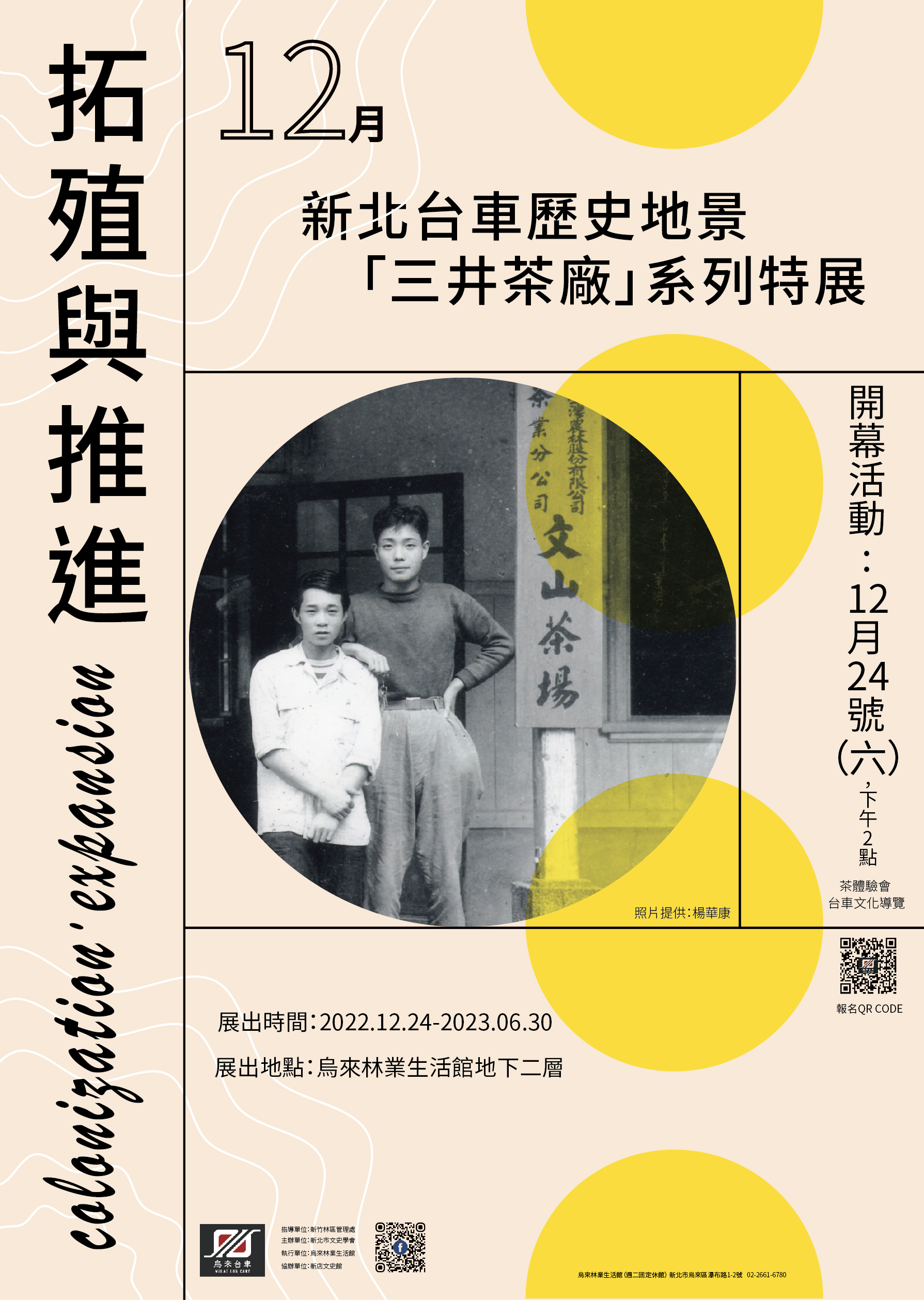 新北新店、烏來地區也曾是茶葉的生產地,早期用何種方式運送茶葉。新竹林區管理處烏來林業生活館將於12月24日(星期六)下午舉行「拓殖與推進-新北台車歷史地景-三井茶廠系列」特展開幕活動,邀請民眾認識聞名於國際間的「日東紅茶」的製造者:三井合名會社,在新店、烏來地區製茶的過往,以及運用台車運輸茶葉的發展脈絡,發掘「三井紅茶」的人文歷史滋味,即日起歡迎民眾上網報名參加(報名網址:https://forms.gle/KgZVeonuYD9mTxry7)。 自1923年開始「三井合名會社台灣出張所」,先後在南勢溪與北勢溪流域設立了三所製茶工廠:龜山工廠、磺窟工廠、乾溝工廠,皆為粗製茶工廠。為防止放在茶籠中的茶青生葉在搬運途中腐敗或是遭到日曬,於是設立了空氣流通良好,備有覆蓋設施的台車或索道等設備,將採摘下來的茶青生葉第一時間運送至茶工廠加工,改變了茶青的運輸方式。當時從新店、烏來地區的茶園所栽種的茶青,便是以台車作為運輸工具。 活動中將邀請三位地方文史工作者,帶領大家開啟「三井茶廠」的文史之門,由陳星妤文化工作者將分享「三井茶廠在新店烏來地區的台車路線」,以及林炯任講者以故事的方式敘說「三井茶廠的過去與現在」。活動現場更準備了「茶體驗會」,並將由周祥傳講者分享台灣茶葉的起源與發展、茶樹品種、製茶的發酵程度等,並引導參與者運用烏來當地的山泉水,沖泡出「烏來限定」的茶湯,讓參與者在烏來瀑布負離子的氛圍中品茶論茶經。 本次特展展期至明(112)年6月底,期待透過綜整三井合名會社過去在新店、烏來地區製茶的產業史與台車的運輸軌跡,呈現過去烏來地區運輸發展史,特展開幕當天將以「茶體驗會」的方式出發,邀請民眾品茶湯、論文史,藉由感官的體驗,進一步了解關於台車的人文歷史。 詳情請洽烏來林業生活館02-2661-6780(週二休館),或上『台車清遊-烏來林業生活館』粉絲專頁:http://ppt.cc/rxW6。 活動聯絡人:關晨引