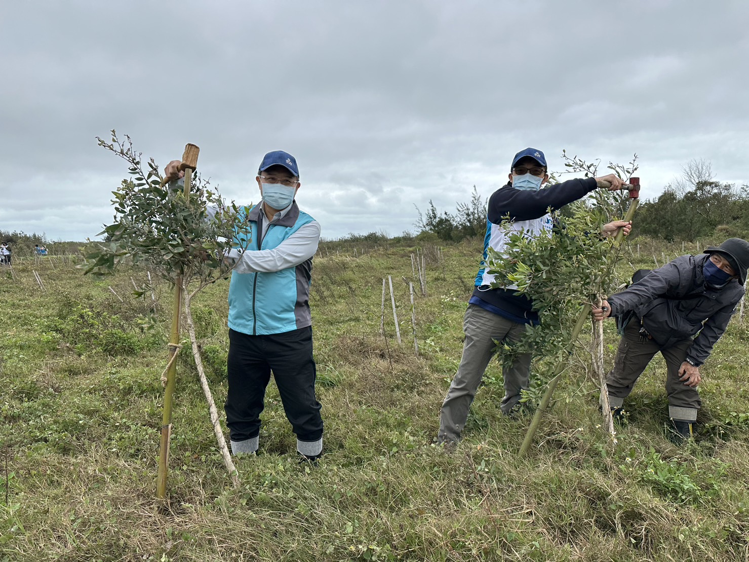 東勢林區管理處自2020年起,與友達永續基金會以合作造林的方式簽訂3年認養契約,辦理台中市清水區高北段0.45公頃造林地撫育工作,以叢狀方式種下黃荊、椬梧等台灣原生樹種800餘株,該造林地為收回之水稻田,小區域有積水情形,補植樹種改栽植耐淹水且具昆蟲蜜源之白千層,共同推動友善生態造林,昨天(12月16日)共動員50人,共同攜手進行護樹活動,以營造健康之林相及多元的棲地,串聯起國土生態綠網的生態廊道。 臺中市清水區高北段位於高北番仔寮保安林,亦為臺中海岸濕地保育軸帶範圍,為濕地生物關注地區,東勢處規劃以生態植被復育方式建構生物棲息環境及提供昆蟲蜜源之多樣性生態環境,但因海岸東北季風吹襲,林木多有傾斜生長,東勢處與友達永續基金會同仁,捲起袖子,合力將傾斜之造林木扶正,重新以竹支架固定,並選擇自然易分解之麻繩材料,不僅環保,也不會讓樹木生長時難以喘息,並達到固定林木不受強風吹倒之危害。 參與護樹行動的友達同仁們,平日忙於研發創新技術, 看到3年前親自種下的小樹苗,如今都已長得跟自己一樣高,並且能以實際行動保護樹木,大夥都很感動。今天更安排台灣野鳥協會志工帶領進行賞鳥活動,看到天空中飛翔的雁鴨及可愛的綠頭鴨、黑嘴鷗、小辮鴴、蒼鷺等鳥類,透過造林護林,營造良好的棲息環境,增加生物多樣性的豐富度,讓平時看慣電腦螢幕的大家都驚喜不已,覺得保護生態環境實在太重要了。 東勢林區管理處表示,感謝友達永續基金會對於員工環境教育的努力,不遺餘力,並積極參與企業認養種樹及護樹,實踐企業社會責任。未來將持續透過公私協力推動棲地復育,及維護沿海濕地之稀少陸蟹族群及陸域棲地,包含海岸林、海岸濕地、沿海農田等,以加強海岸濕地生態系的穩定,逐步完成國土綠網復育願景。